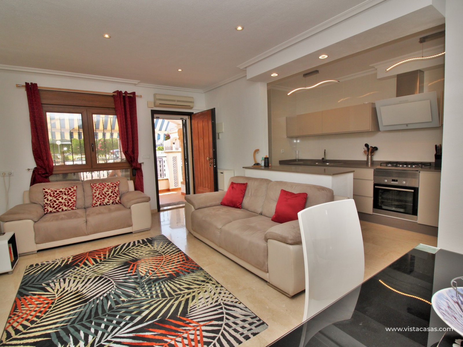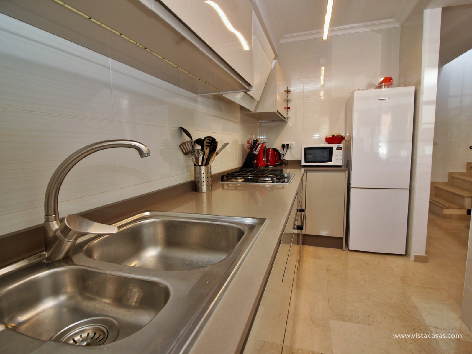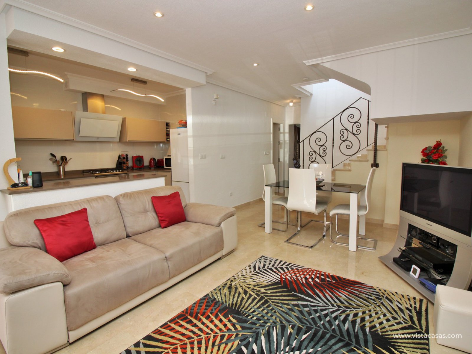 Pristine South-West facing 3 bedroom, 2 bathroom Buhardilla model townhouse in the sought after area of Pau 8, just a short walk to the golf course and famous Villamartin Plaza with its many restaurants and bars, shops and supermarket. This Buhardilla townhouse has been lovingly cared for by the current owners with an updated kitchen and is furnished to a high standard. These highly desirable Buhardilla style townhouses are in high demand, so quick viewings are advised!