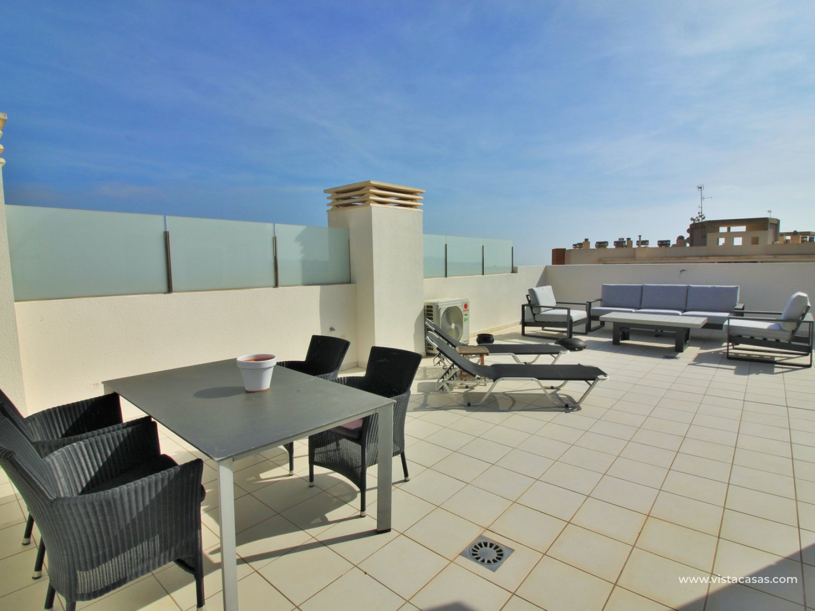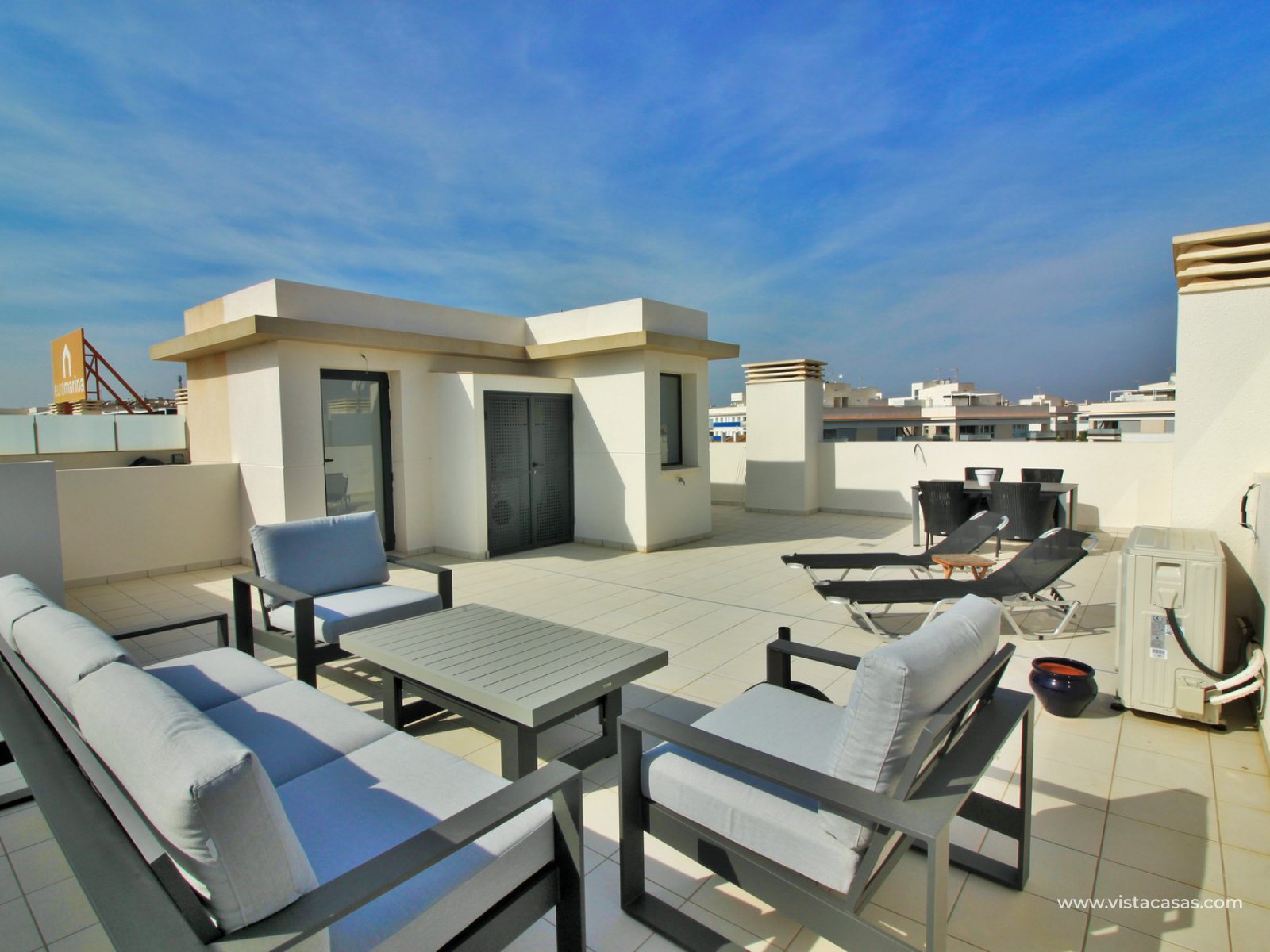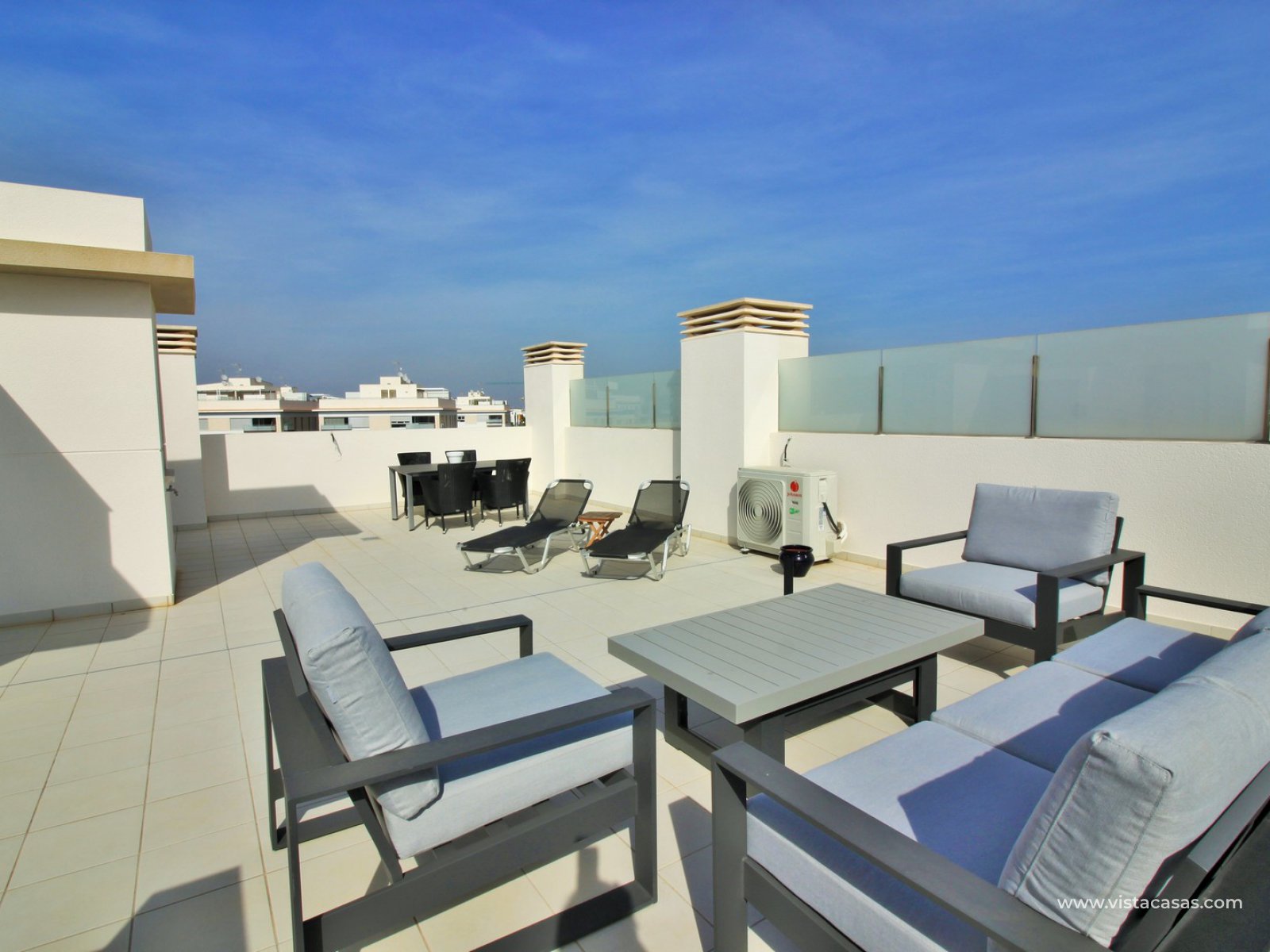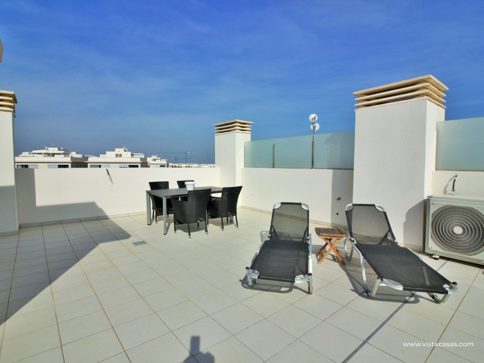 Modern 3 bedroom South facing penthouse apartment for sale in the exclusive complex of Zenia Beach II in Los Dolses, Orihuela Costa. This beautiful apartment offers plenty of space including a large roof solarium with sea views. All located within 450 metres to all services in Los Dolses, including bars, restaurants, supermarkets, bus stop, etc.