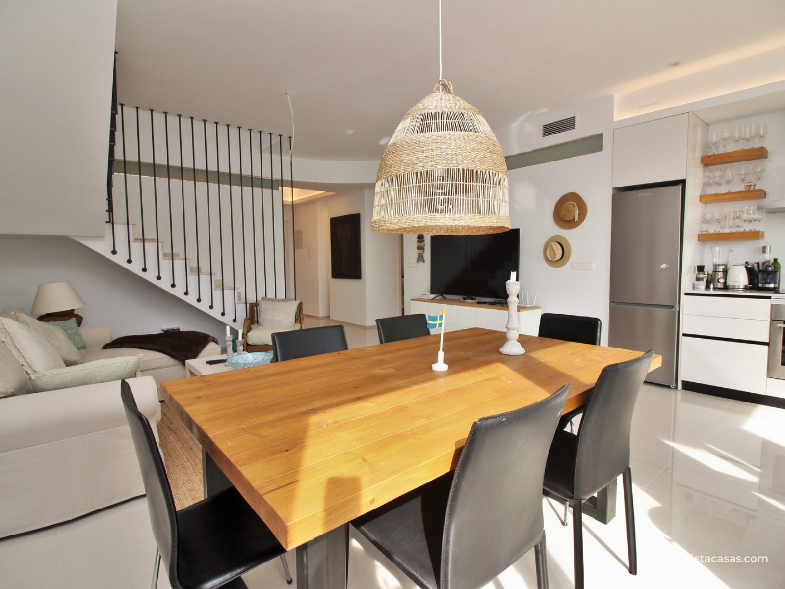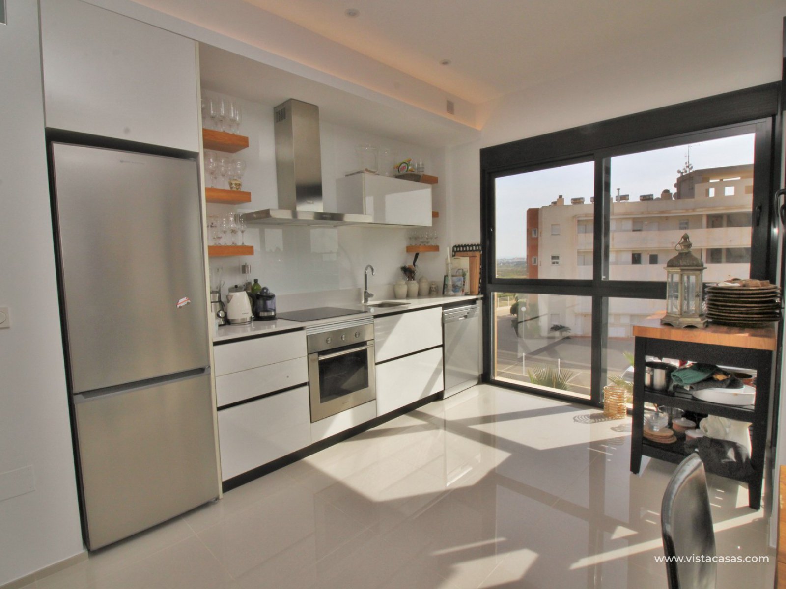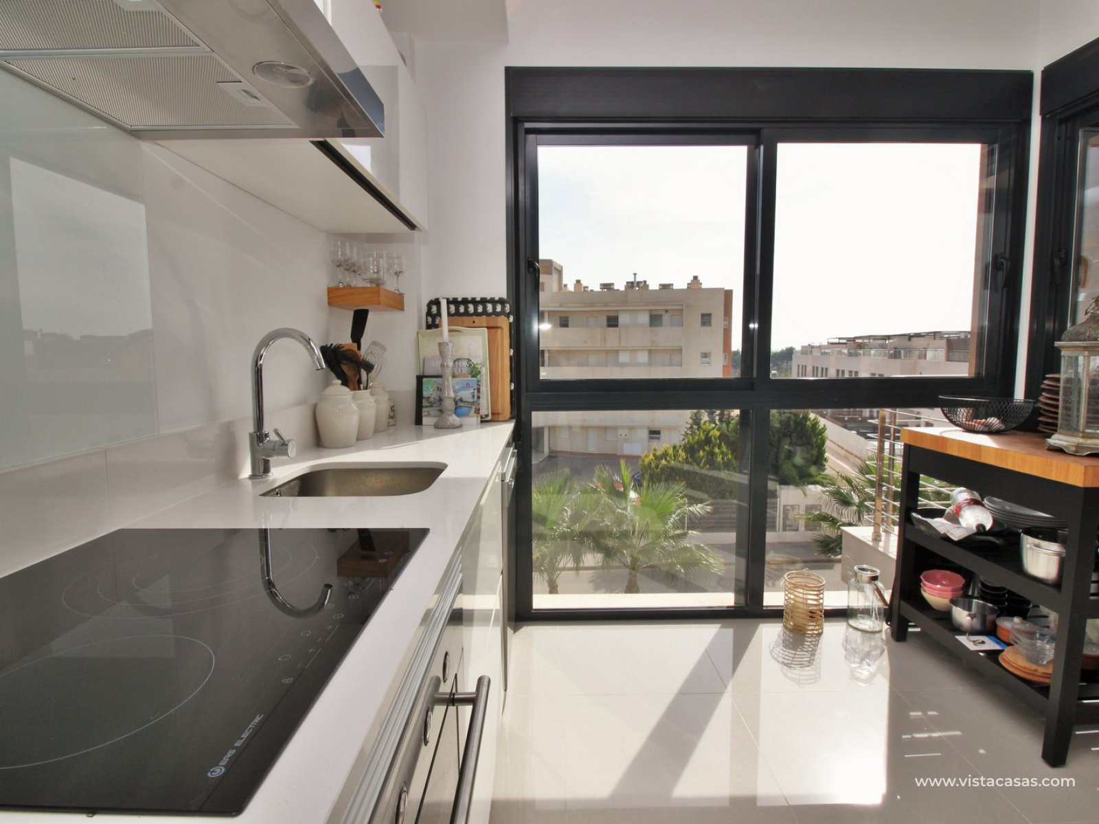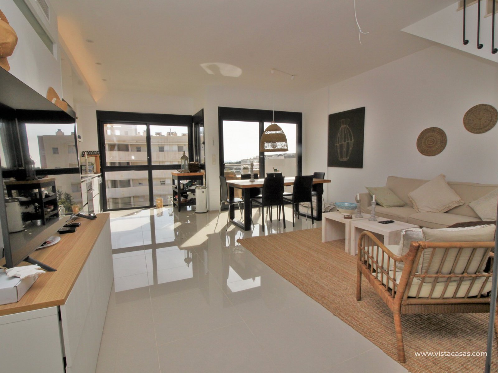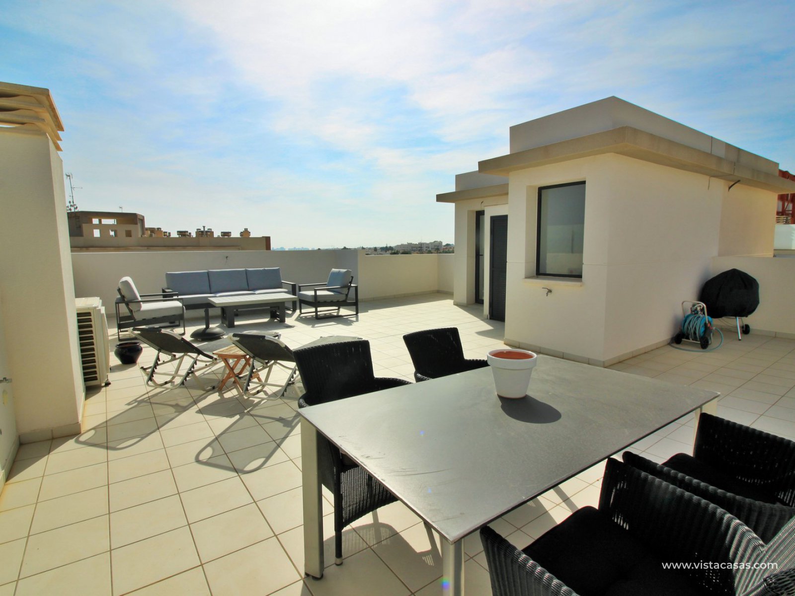 Modern 3 bedroom South facing penthouse apartment for sale in the exclusive complex of Zenia Beach II in Los Dolses, Orihuela Costa. This beautiful apartment offers plenty of space including a large roof solarium with sea views. All located within 450 metres to all services in Los Dolses, including bars, restaurants, supermarkets, bus stop, etc.