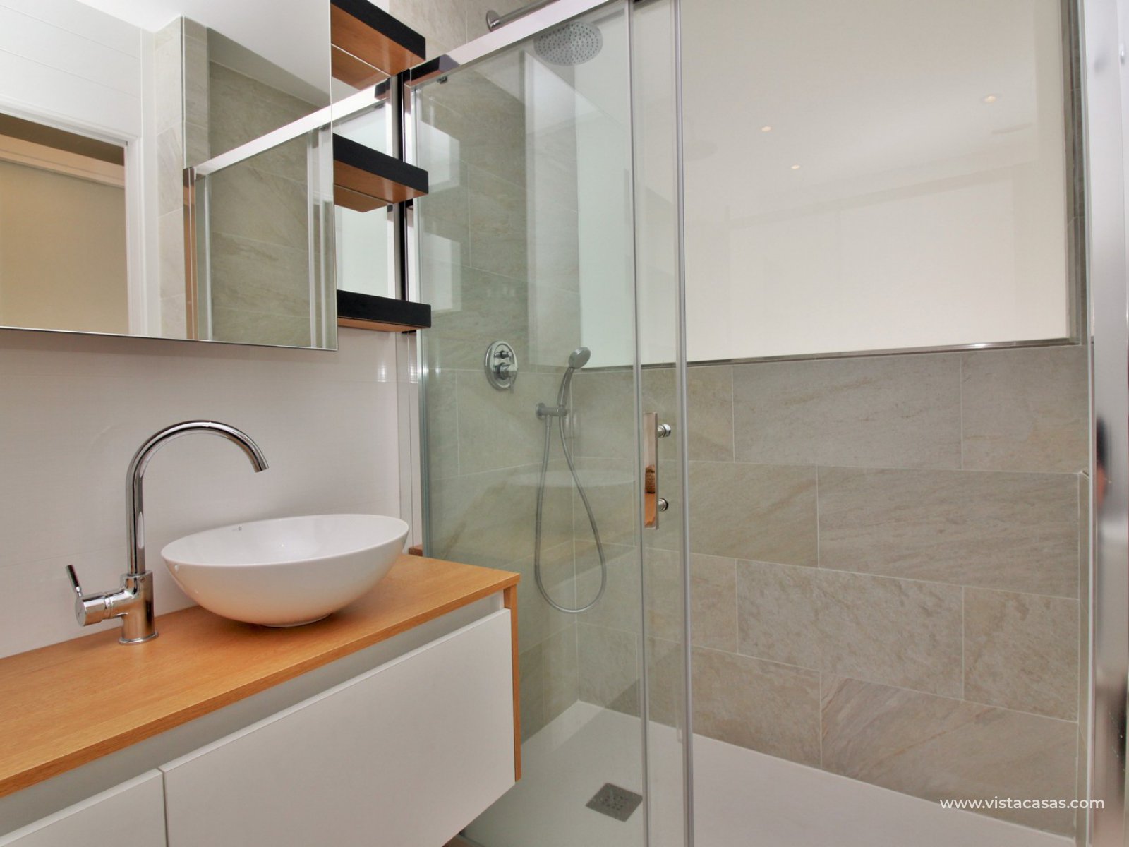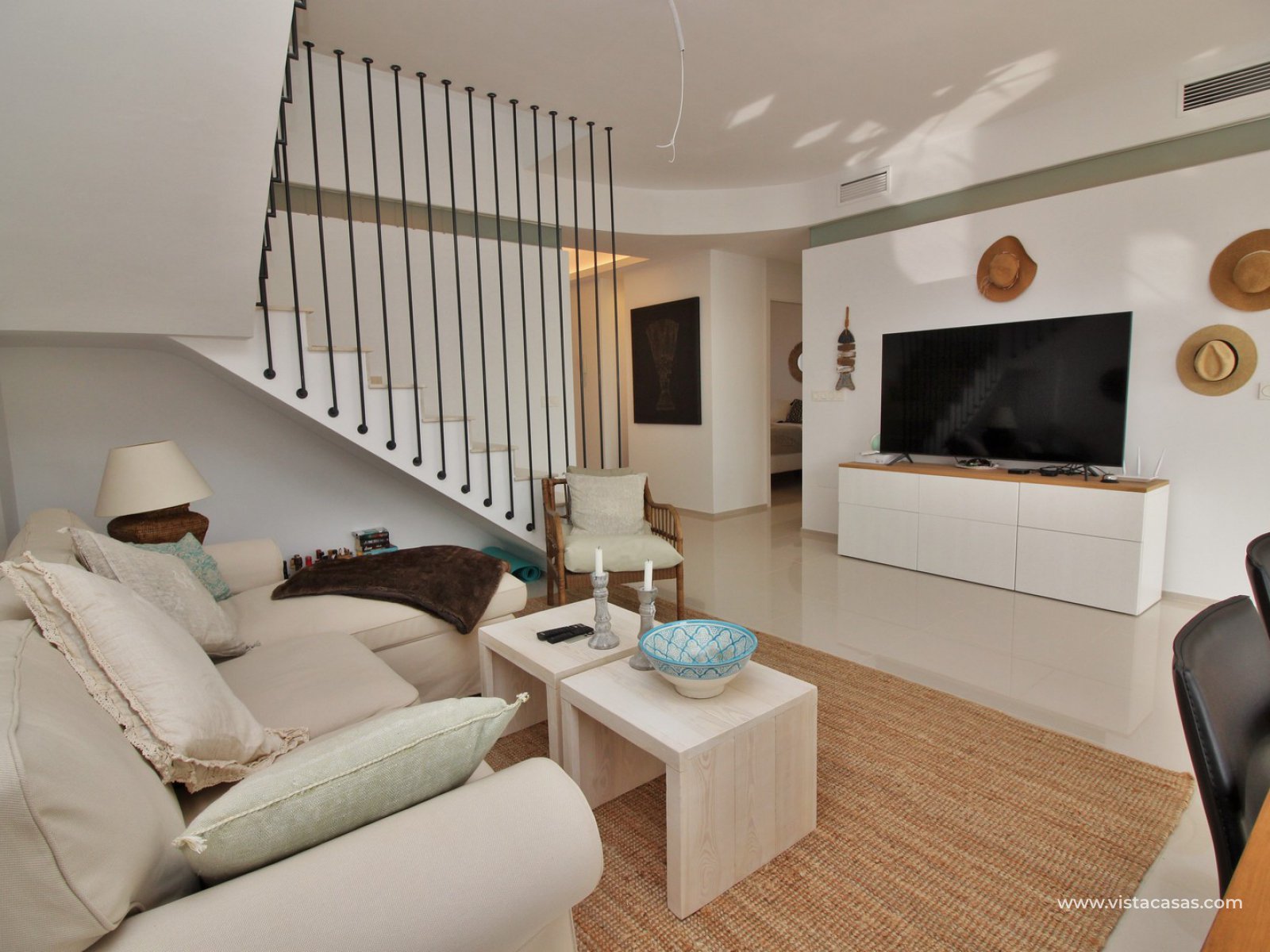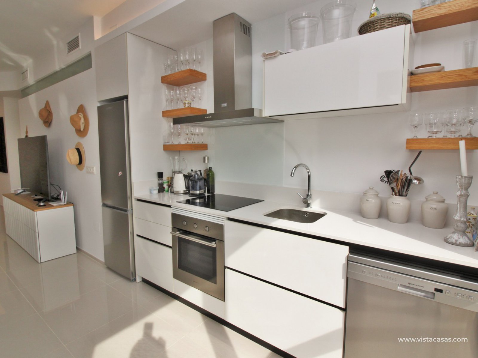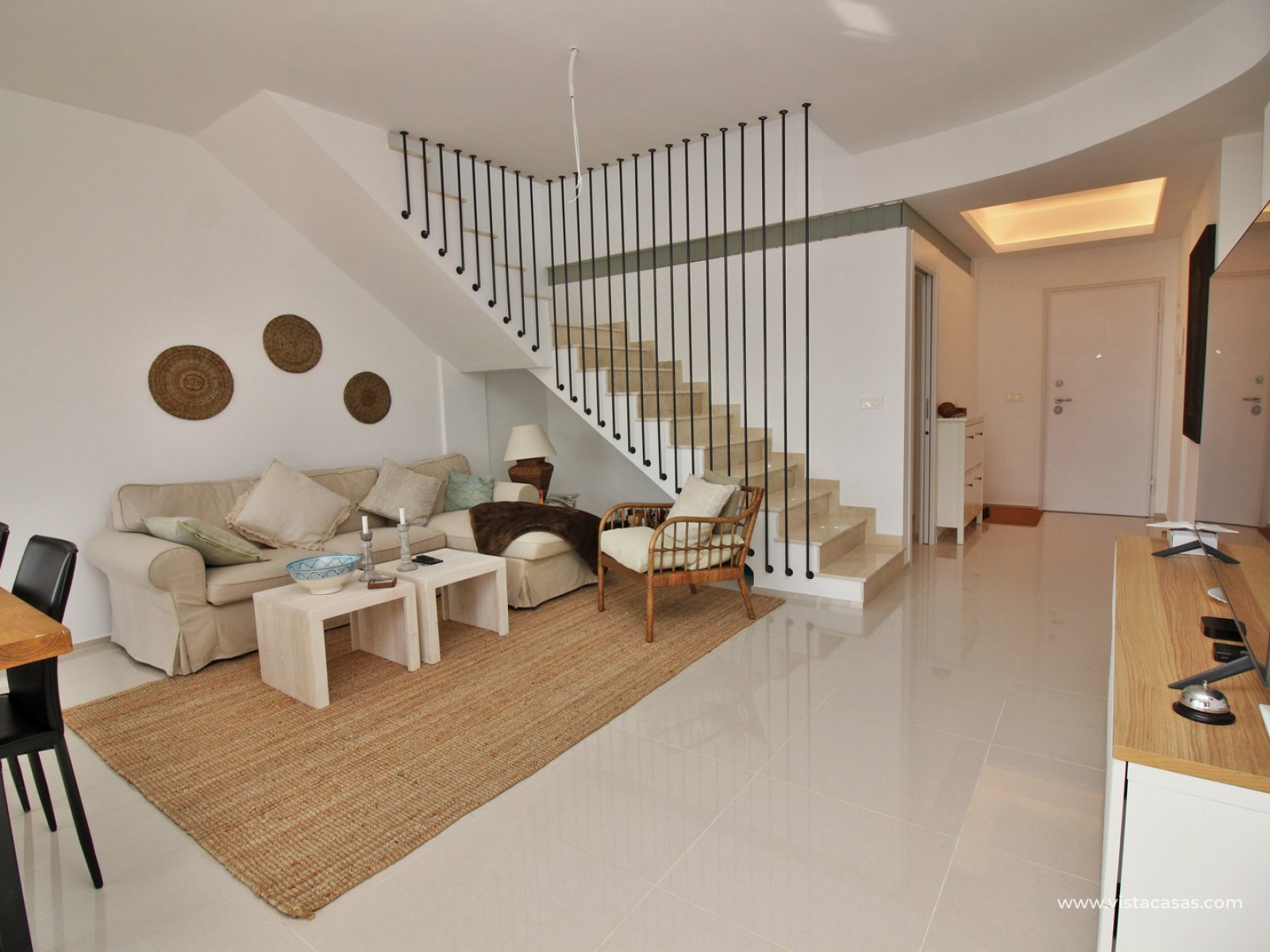 Modern 3 bedroom South facing penthouse apartment for sale in the exclusive complex of Zenia Beach II in Los Dolses, Orihuela Costa. This beautiful apartment offers plenty of space including a large roof solarium with sea views. All located within 450 metres to all services in Los Dolses, including bars, restaurants, supermarkets, bus stop, etc.