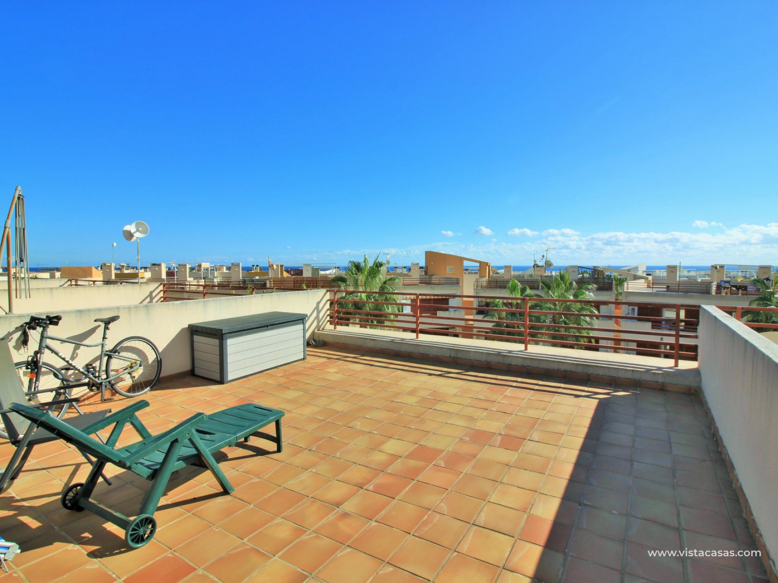 South facing 2 bedroom, 2 bathroom penthouse apartment (lifts available) with private roof solarium directly overlooking the pool in the exclusive complex of El Rincon. The apartment comprises of a bright lounge-dining area with patio doors leading onto the sunny South-East facing balcony with pool and garden views, open plan kitchen, 2 bedrooms with fitted wardrobes and en-suite bathrooms with underfloor heating plus storage/utility room. External stairs leads to a large private roof terrace with sea and pool views, and offers plenty of space to sunbathe and entertain on. Due to its orientation, the apartment receives lots of sunshine, perfect for those sun lovers! Also included is ducted air-conditioning in all rooms, secure off-road covered parking space and the use of 2 communal pools and well maintained garden areas.