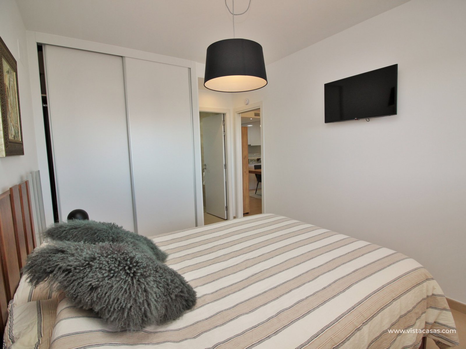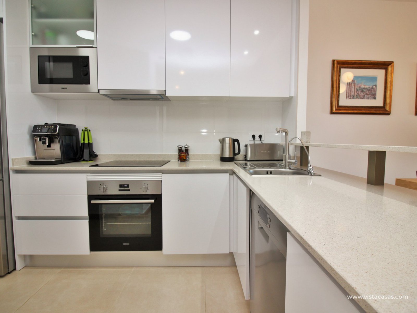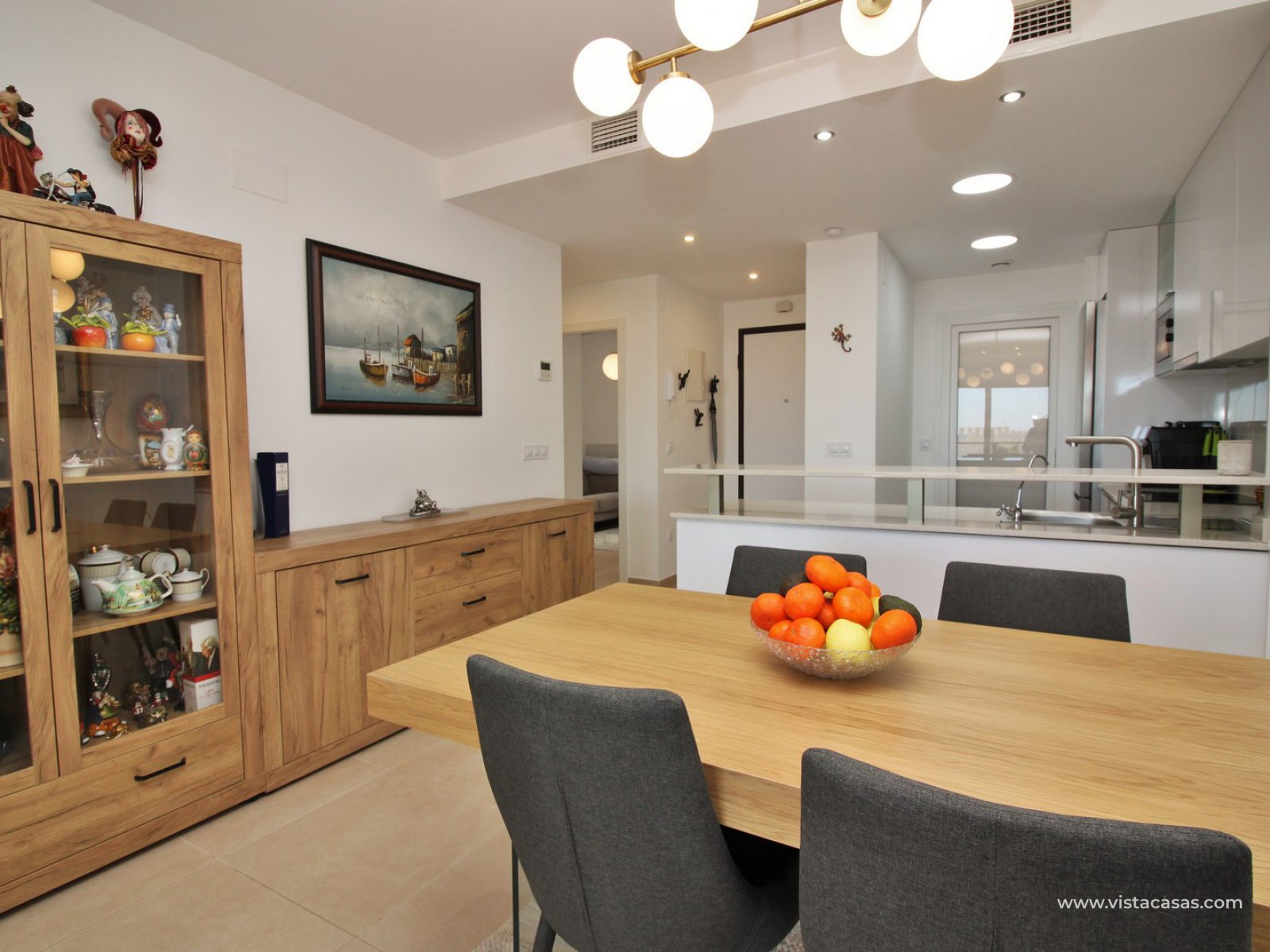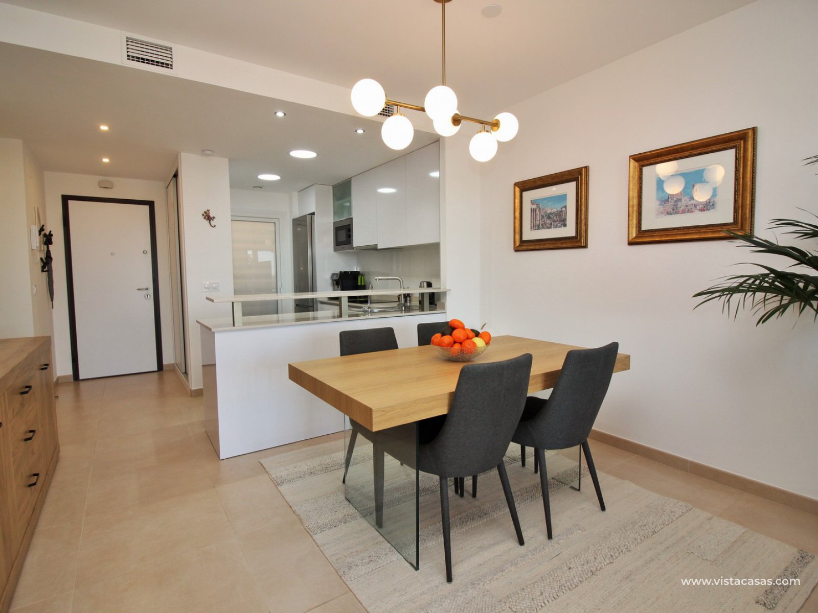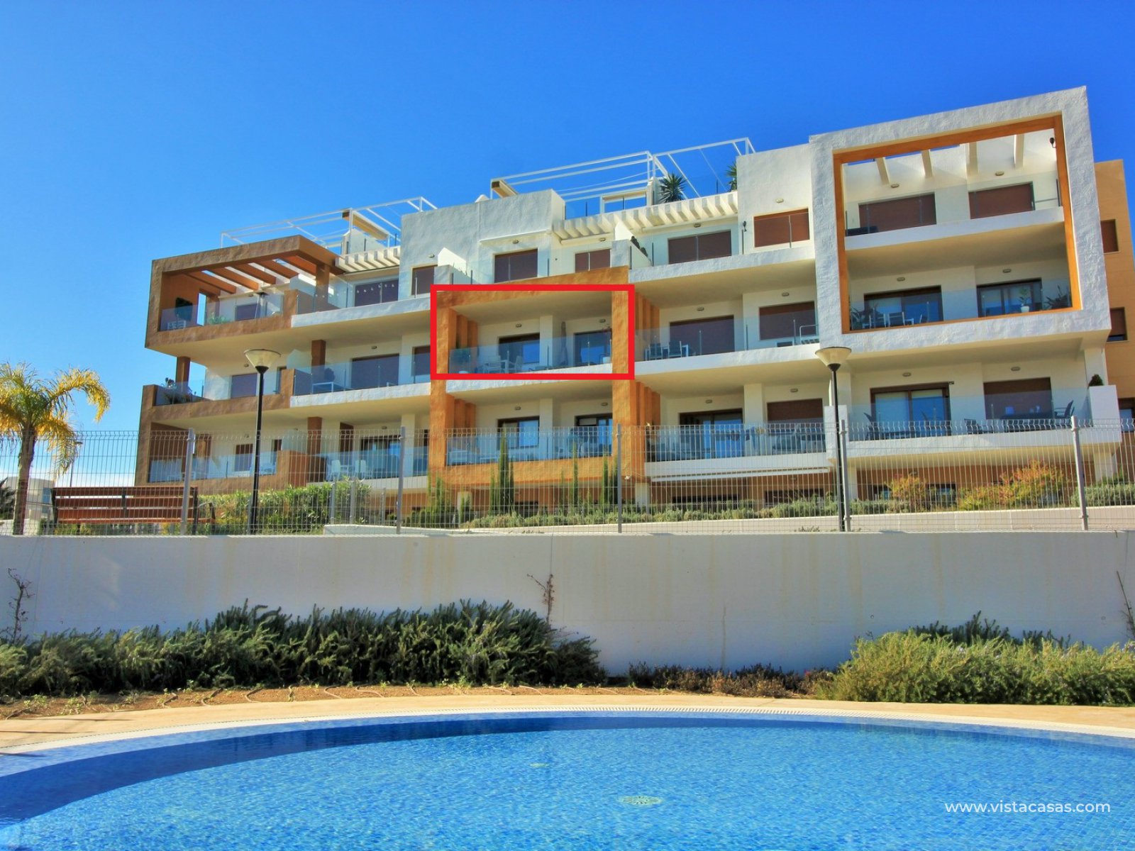 360 TOUR AVAILABLE! An immaculate resale 2 bedroom, 2 bathroom apartment with tourist licence overlooking the pool for sale in Residencial Gala in Los Dolses, Orihuela Costa. The complex was built in late 2019, and offers great facilities including a large swimming pool, children's pool and playground, Jacuzzis, and lift access to all floors, which is all situated within a secure gated community. The apartment is South-East facing offering beautiful views of the pool, sea, and communal gardens from its large covered balcony. The apartment is sold part-furnished, white goods, and ducted air-conditioning throughout, plus underfloor heating in both bathrooms. This is an absolute must see property, which is in as new condition, a perfect turn key solution if you are looking for a newly built apartment, without the wait!