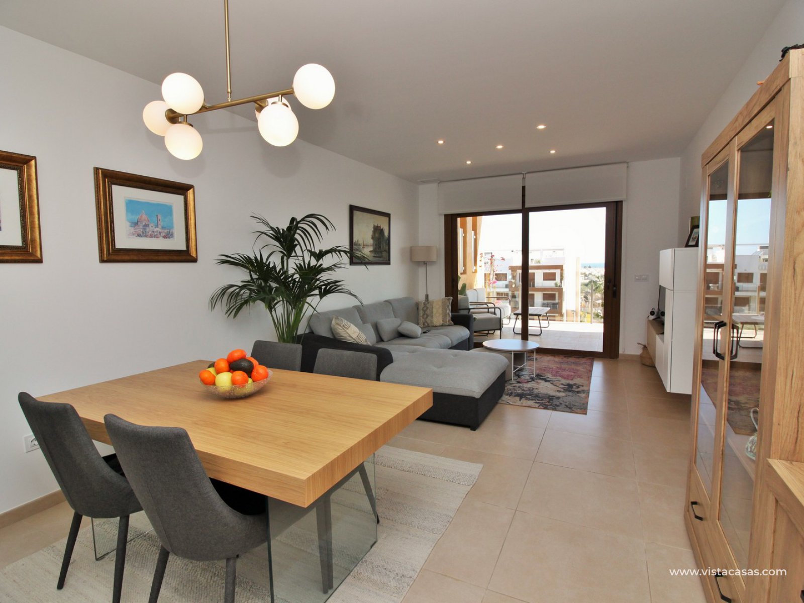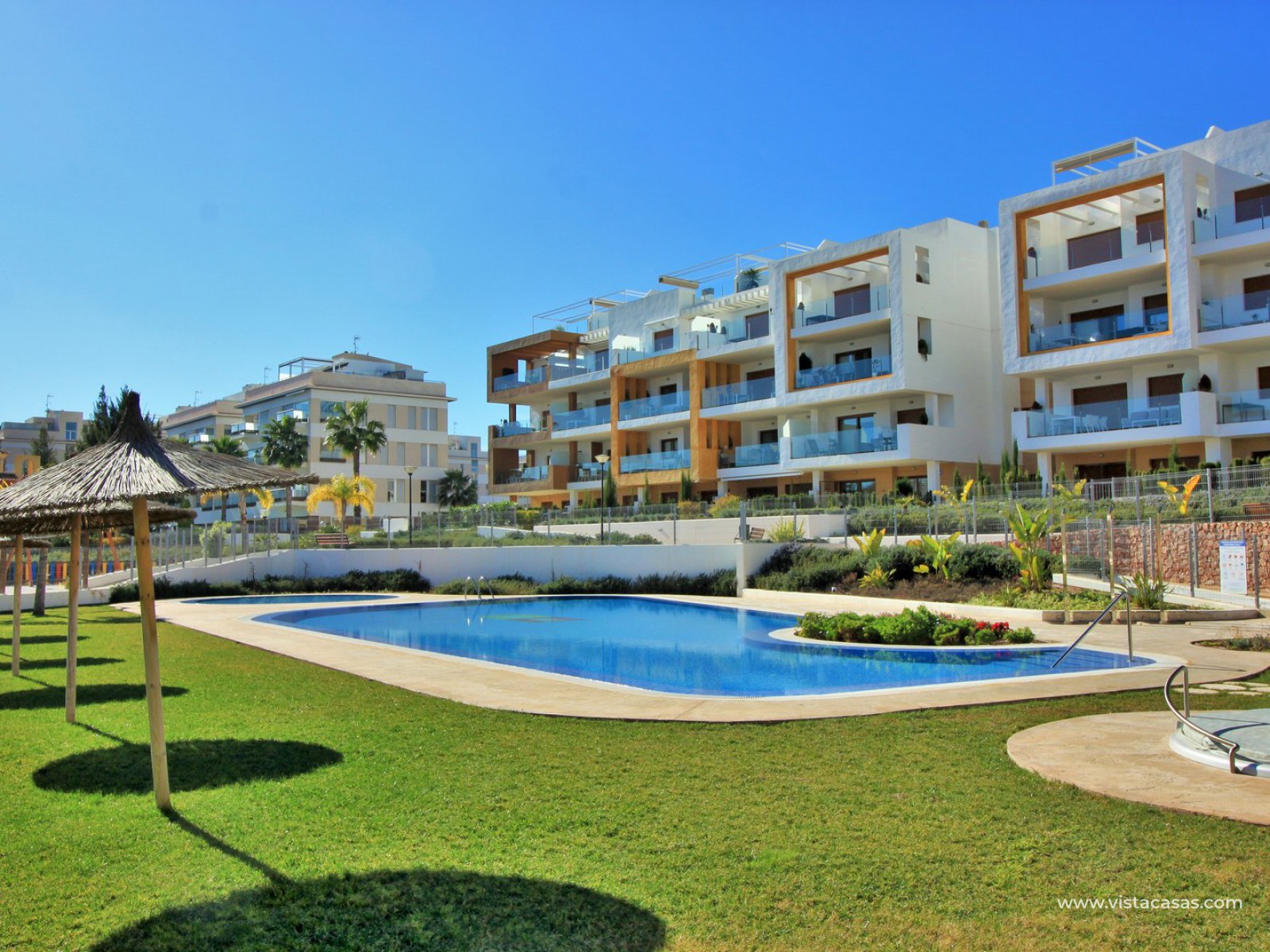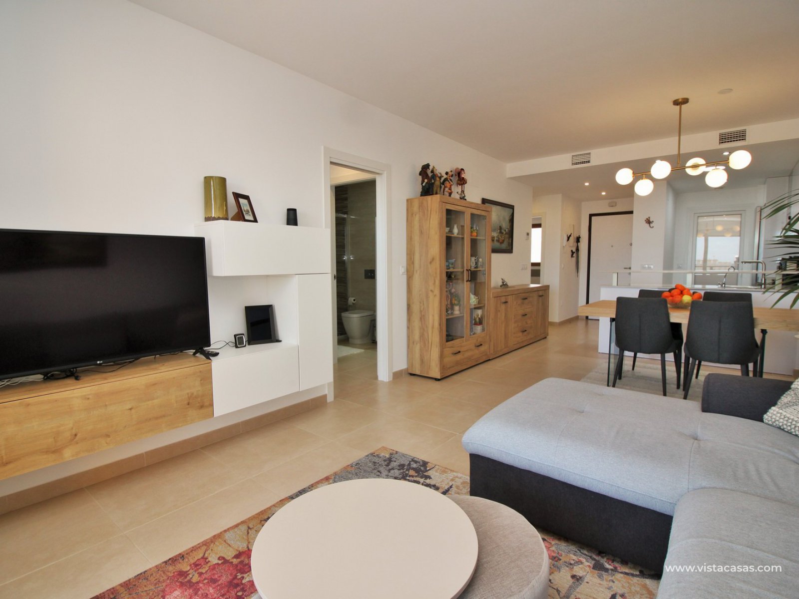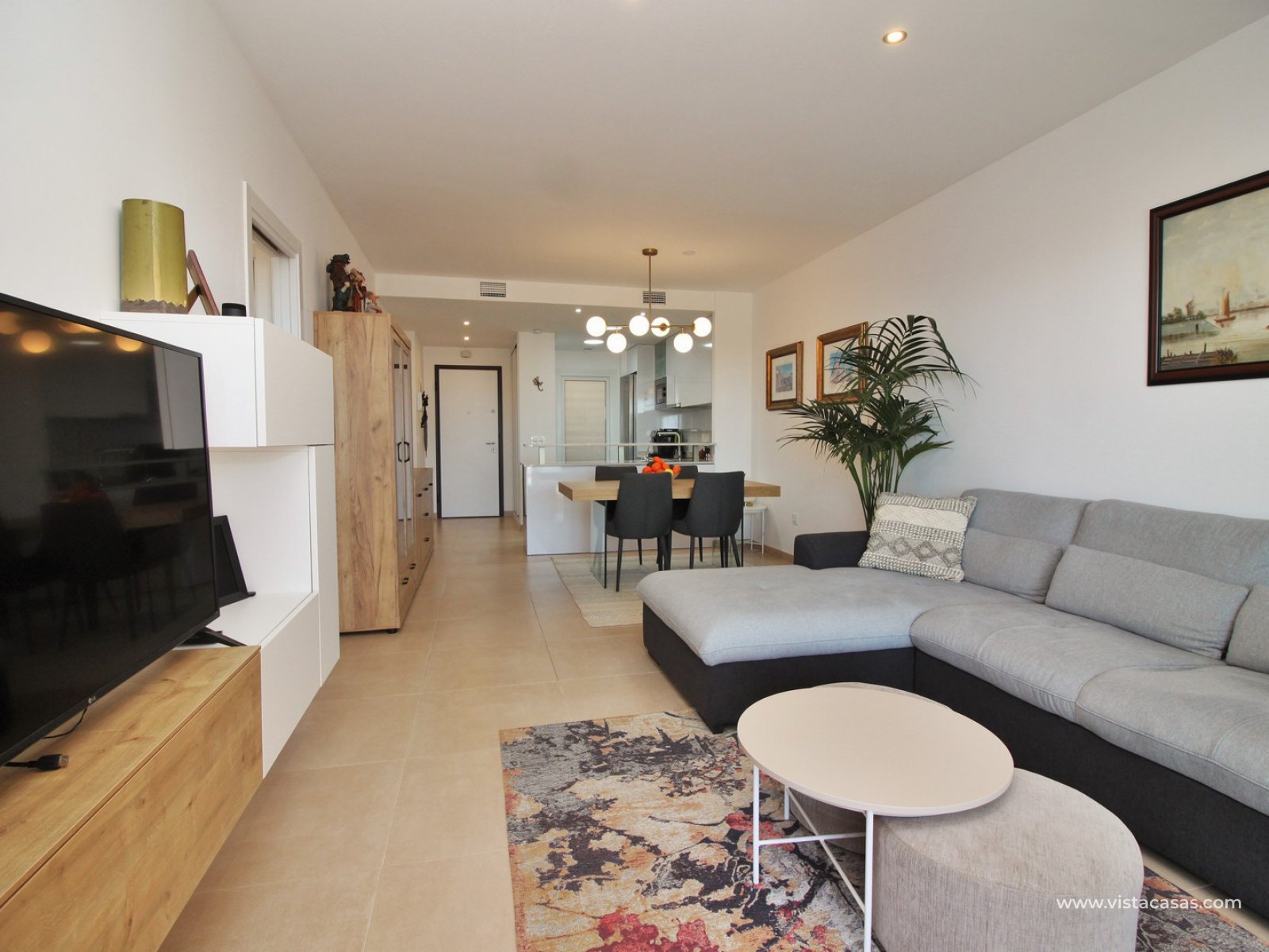 360 TOUR AVAILABLE! An immaculate resale 2 bedroom, 2 bathroom apartment with tourist licence overlooking the pool for sale in Residencial Gala in Los Dolses, Orihuela Costa. The complex was built in late 2019, and offers great facilities including a large swimming pool, children's pool and playground, Jacuzzis, and lift access to all floors, which is all situated within a secure gated community. The apartment is South-East facing offering beautiful views of the pool, sea, and communal gardens from its large covered balcony. The apartment is sold part-furnished, white goods, and ducted air-conditioning throughout, plus underfloor heating in both bathrooms. This is an absolute must see property, which is in as new condition, a perfect turn key solution if you are looking for a newly built apartment, without the wait!