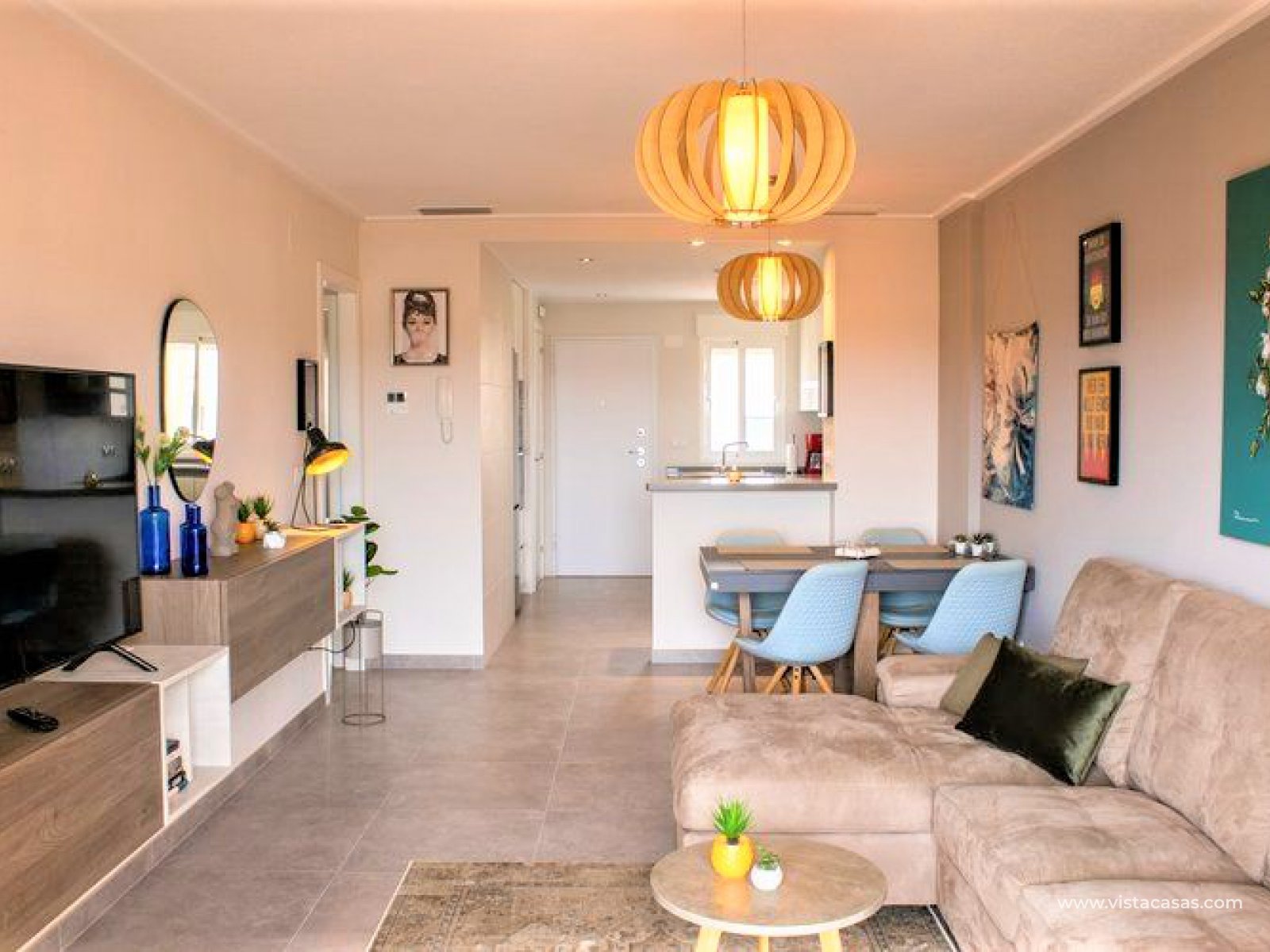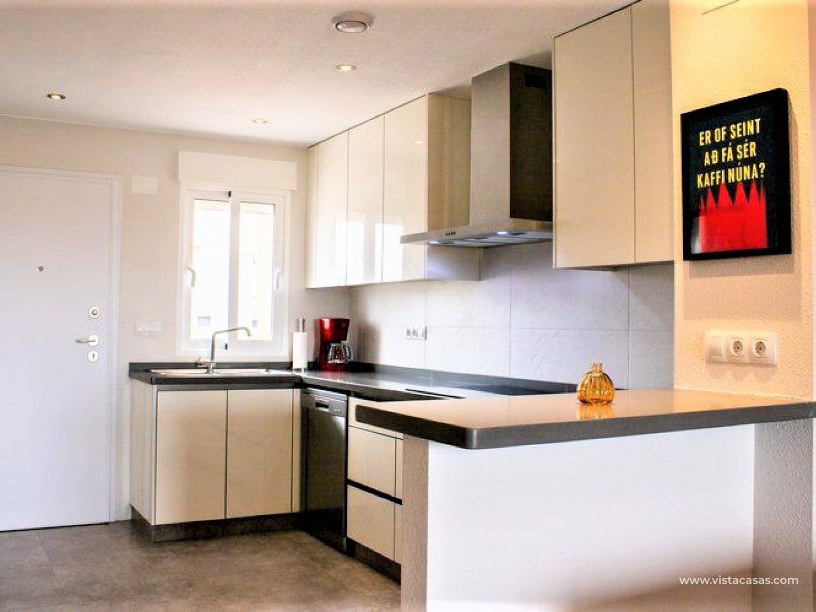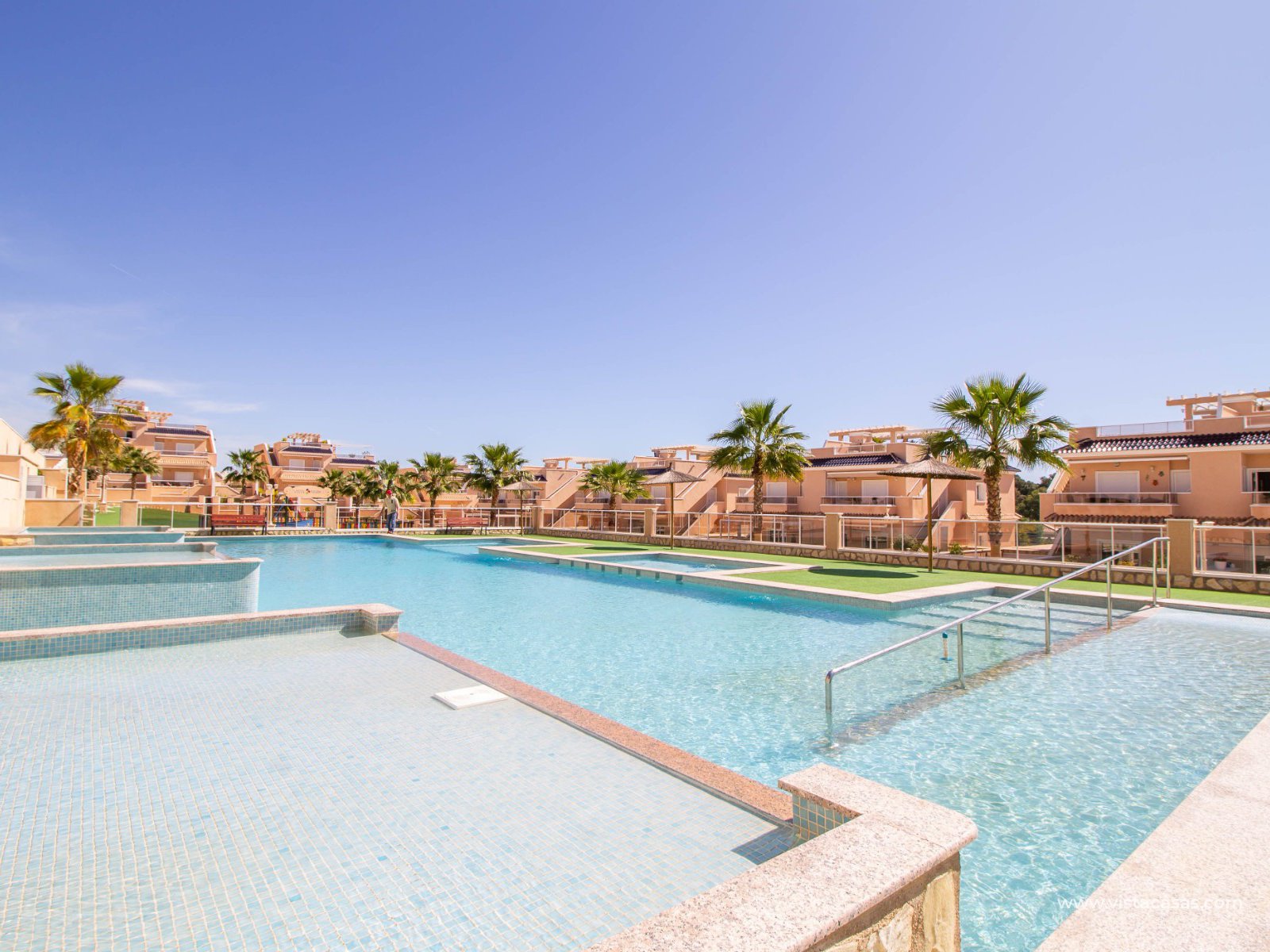 Fully equipped apartments constructed in 2020 and only 1km to the blue flag beaches of Punta Prima. These first floor apartments have a balcony terrace overlooking the community pool and gardens and comprise of having 2 bedrooms both with fitted wardrobes and 2 bathrooms [1 en suite] and both have underfloor heating, an open plan living and dining area and fully fitted kitchen with all appliances included. Throughout the apartments are hot and cold air conditioning and the properties will be sold fully furnished with all decorations, kitchen utensils etc etc. This gated complex has a large central pool area, indoor large jacuzzi, childrens' play area and, exercise machines and gardens. It is located close to all amenities in Punta Prima such as the Punta Marina shopping centre where there are a variety of bars, restaurants, supermarkets, pharmacy etc, and opposite the new parade of bars and restaurants. Each apartment also has included an underground, secure parking space.