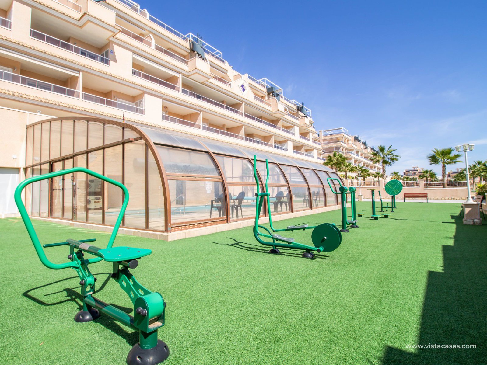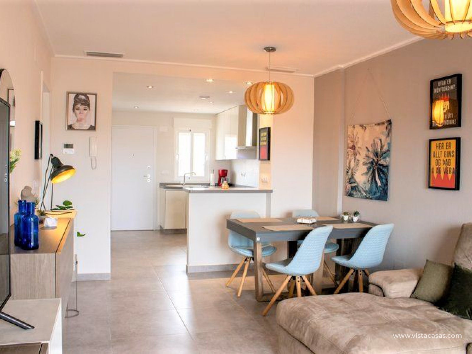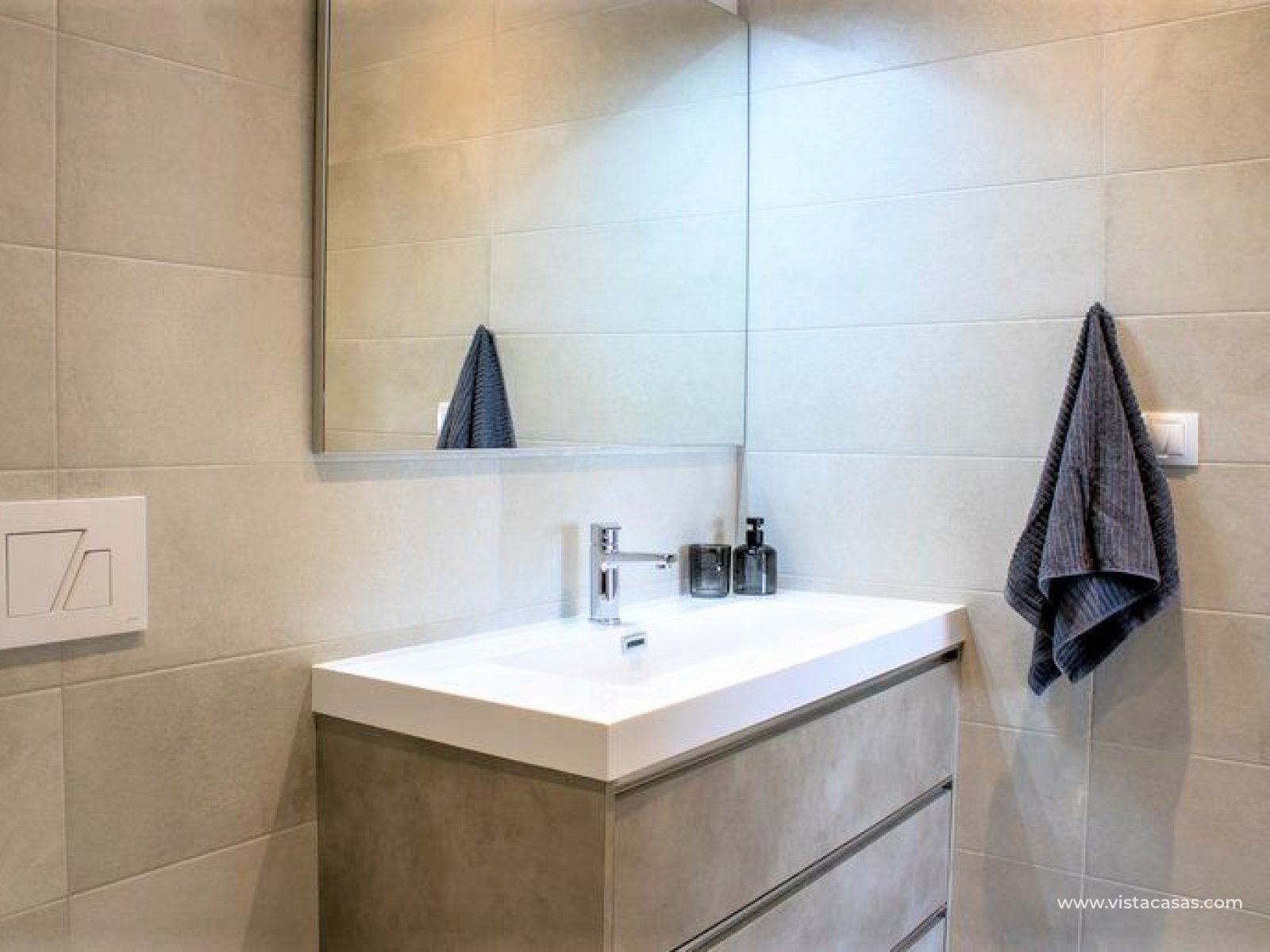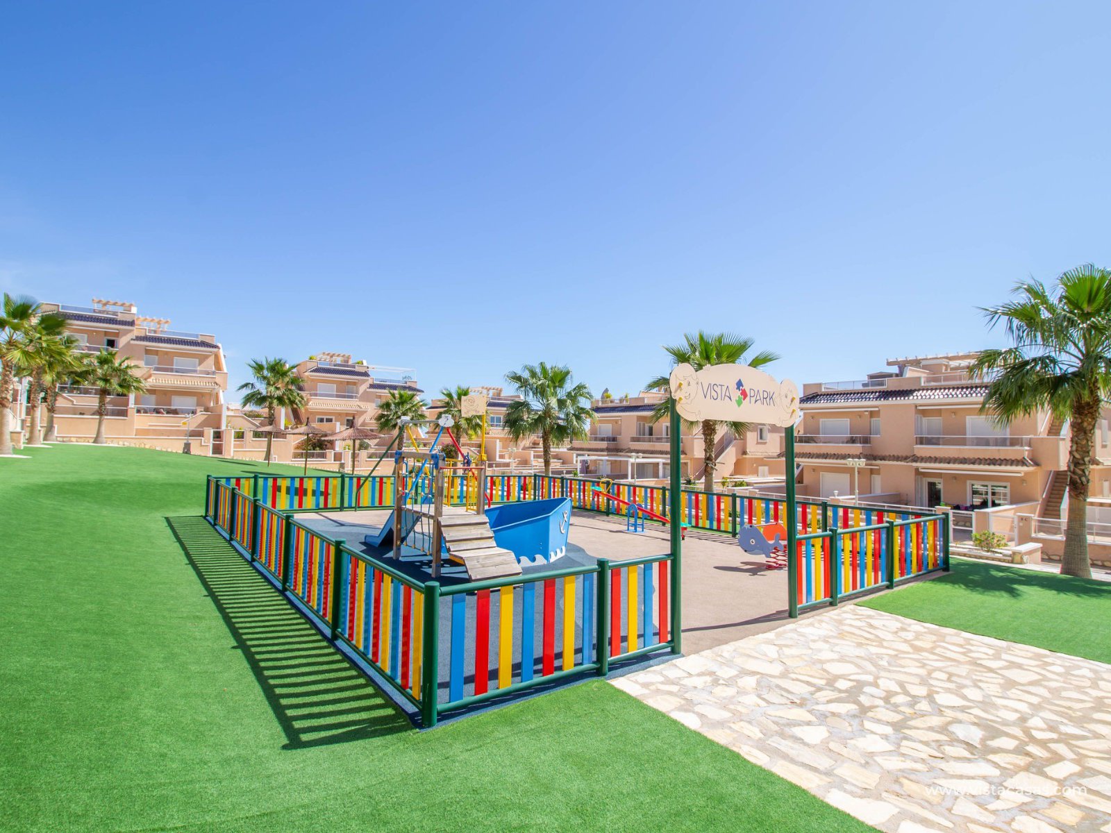 Fully equipped apartments constructed in 2020 and only 1km to the blue flag beaches of Punta Prima. These first floor apartments have a balcony terrace overlooking the community pool and gardens and comprise of having 2 bedrooms both with fitted wardrobes and 2 bathrooms [1 en suite] and both have underfloor heating, an open plan living and dining area and fully fitted kitchen with all appliances included. Throughout the apartments are hot and cold air conditioning and the properties will be sold fully furnished with all decorations, kitchen utensils etc etc. This gated complex has a large central pool area, indoor large jacuzzi, childrens' play area and, exercise machines and gardens. It is located close to all amenities in Punta Prima such as the Punta Marina shopping centre where there are a variety of bars, restaurants, supermarkets, pharmacy etc, and opposite the new parade of bars and restaurants. Each apartment also has included an underground, secure parking space.