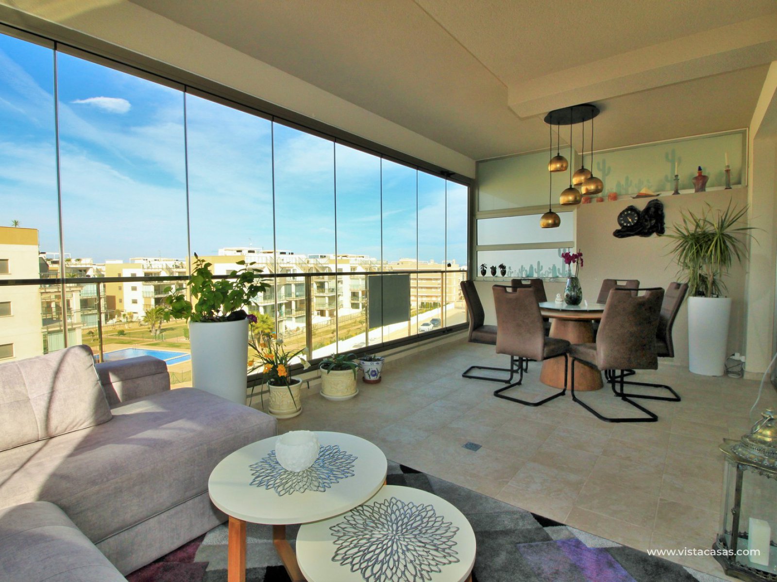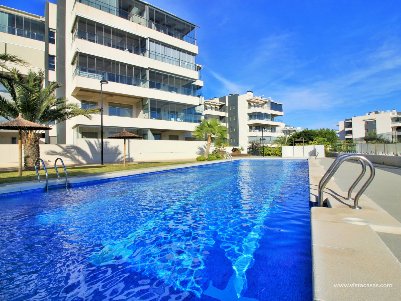 Luxury modern 3 bedroom resale apartment for sale in the exclusive complex of Green Hills in Los Dolses, Orihuela Costa. This recently constructed complex offers fantastic communal facilities including 2 large swimming pools, a heated in-door pool, spa, sauna, and an-indoor gym, plus a children's play area with table tennis. Ideally situated within walking distance to all amenities including a supermarket and the Los Dolses commercial centre, with various bars, shops, and restaurants.