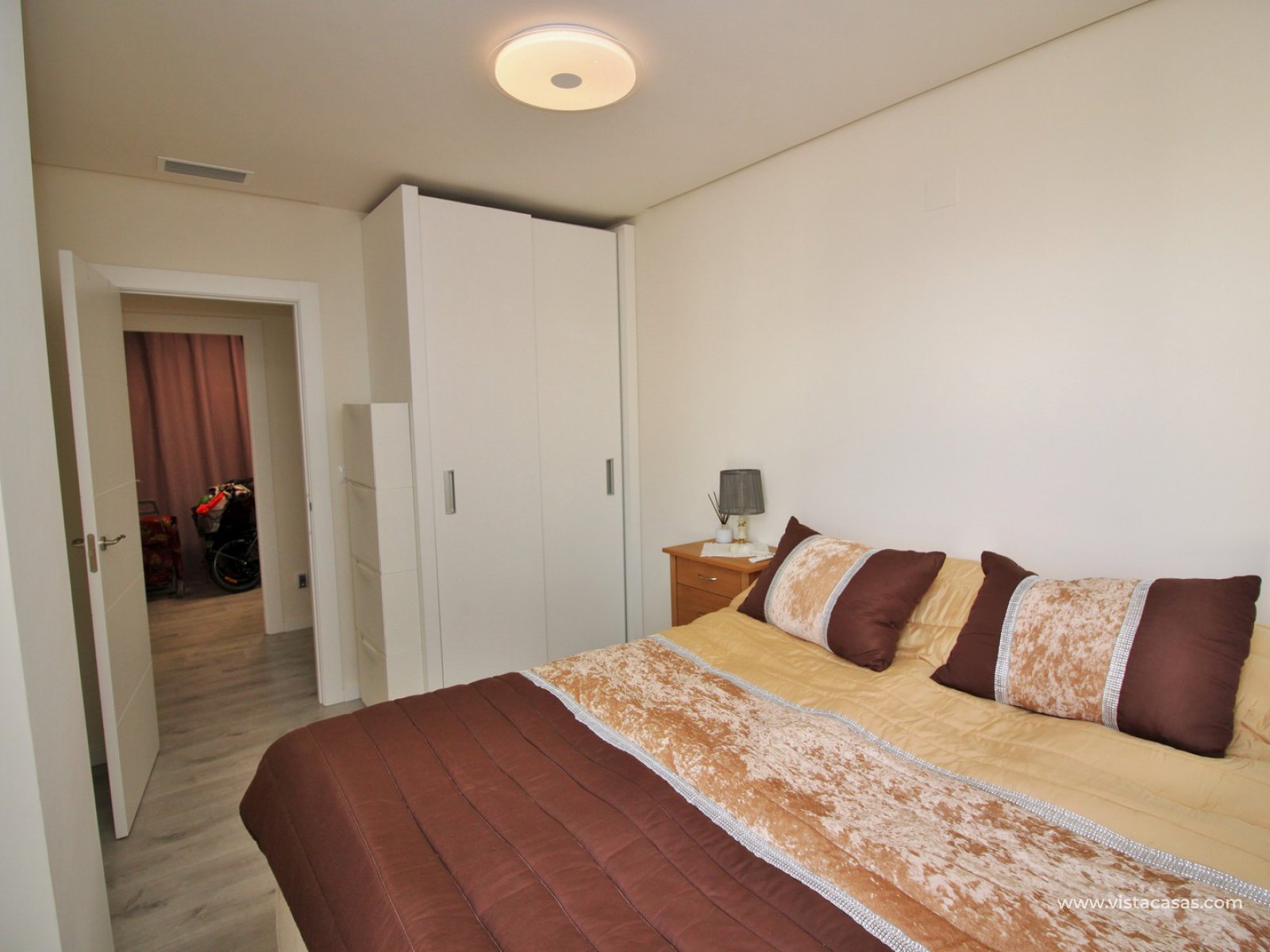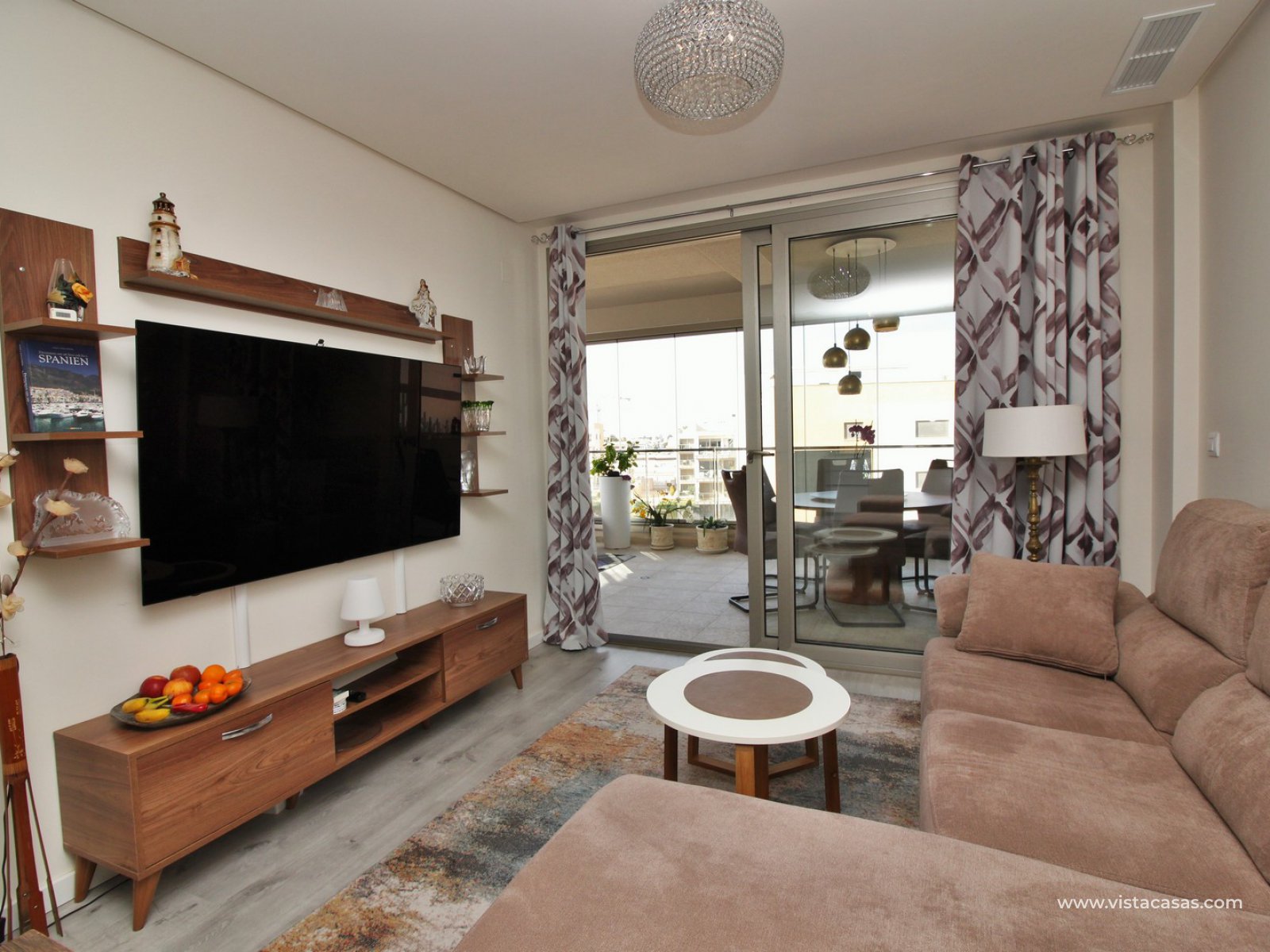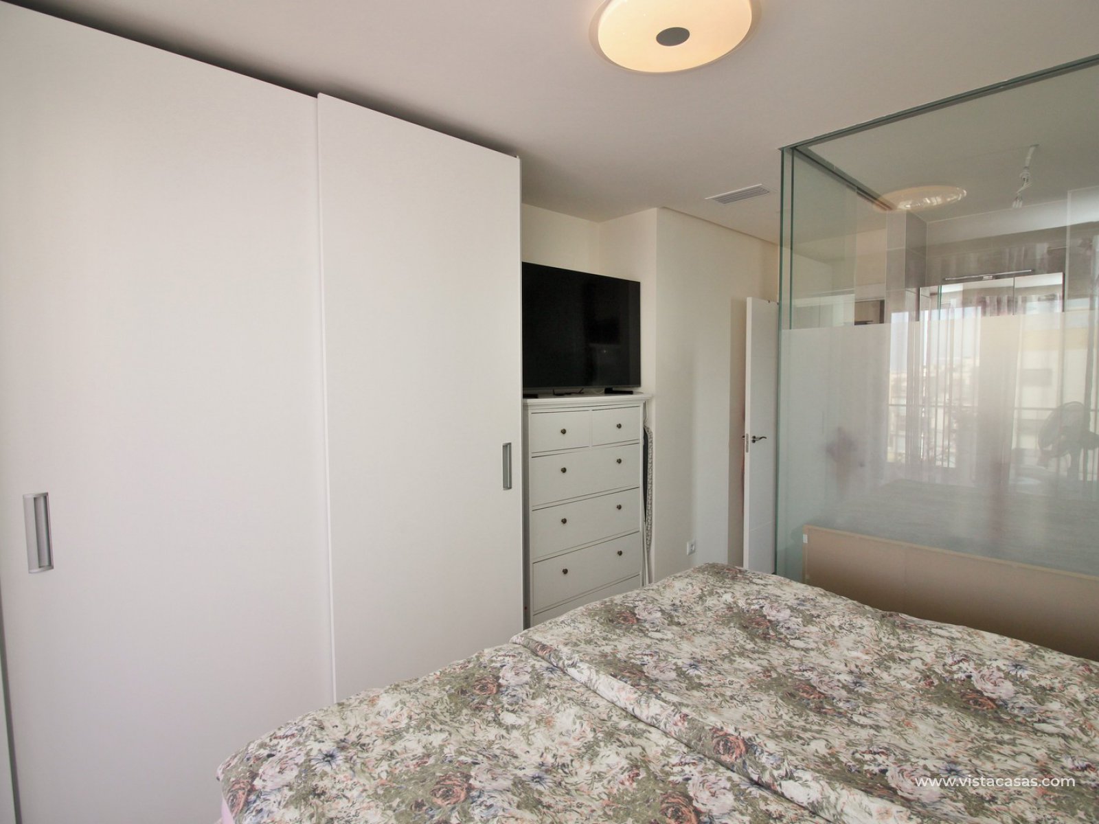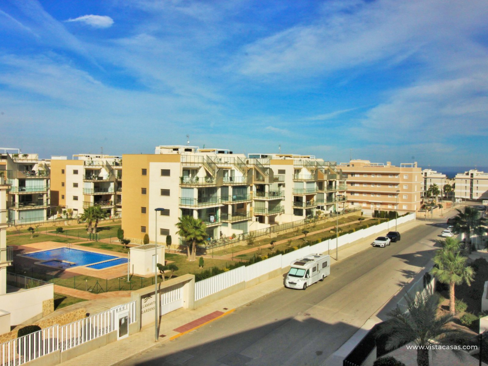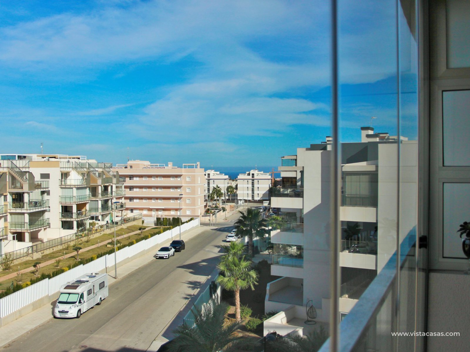 The apartment is situated in block 5 on the third floor with lift access. Built in 2020, the apartment comprises of a large covered balcony with glass curtains, offering views towards the sea. The living area offers a lounge with modern American style kitchen fully fitted with appliances. 3 double bedrooms (one of them currently used as a music room), and 2 bathrooms, with the master bedroom offering its own en-suite bathroom with walk-in shower. The large balcony can be accessed from the lounge and master bedroom.