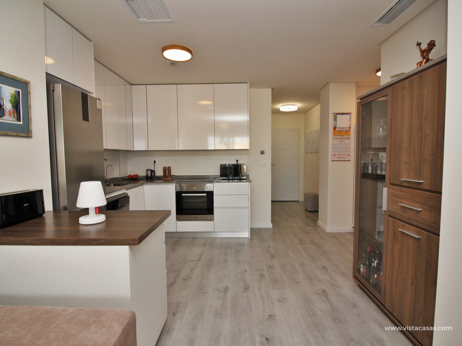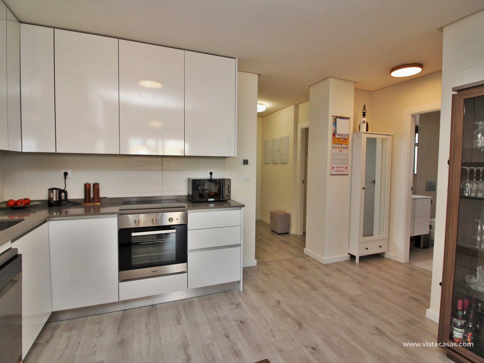 Green Hills offers a beautiful large swimming pool overlooking the green area, heated indoor pool, gardens, spa, sauna and gym. The apartment has ducted air-conditioning throughout plus an underfloor heating in both bathrooms. Sold furnished with a private underground parking space included in the price. The apartment is finished to the highest standards with the best materials, built by a very reputable developer. Located just 300 metres from a Dialprix supermarket and the commercial centre Los Dolses with several bars and restaurants. The Zenia Boulevard shopping centre with more than 155 shops is just 2 km away and La Zenia beach just a 5-minute drive away.