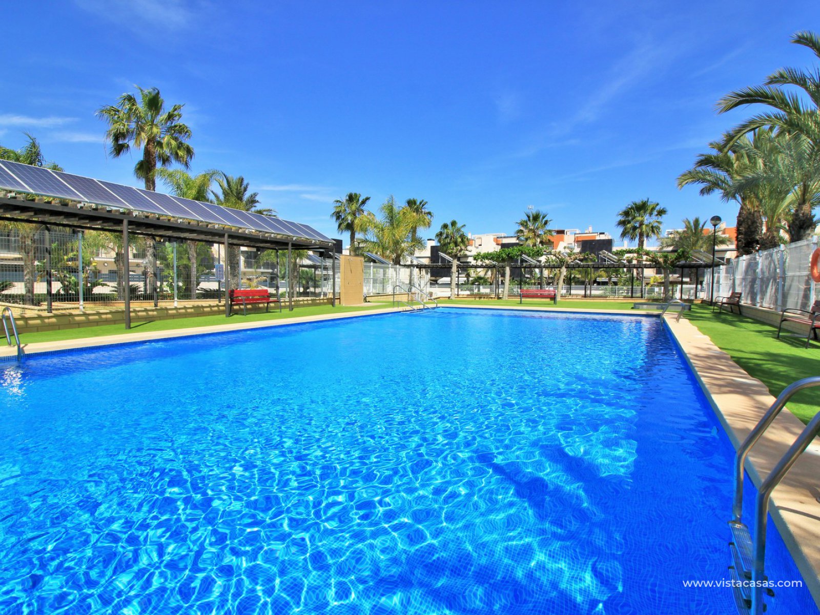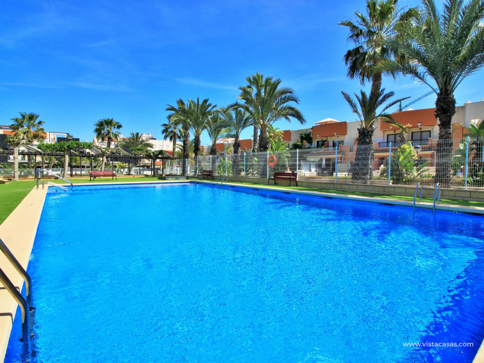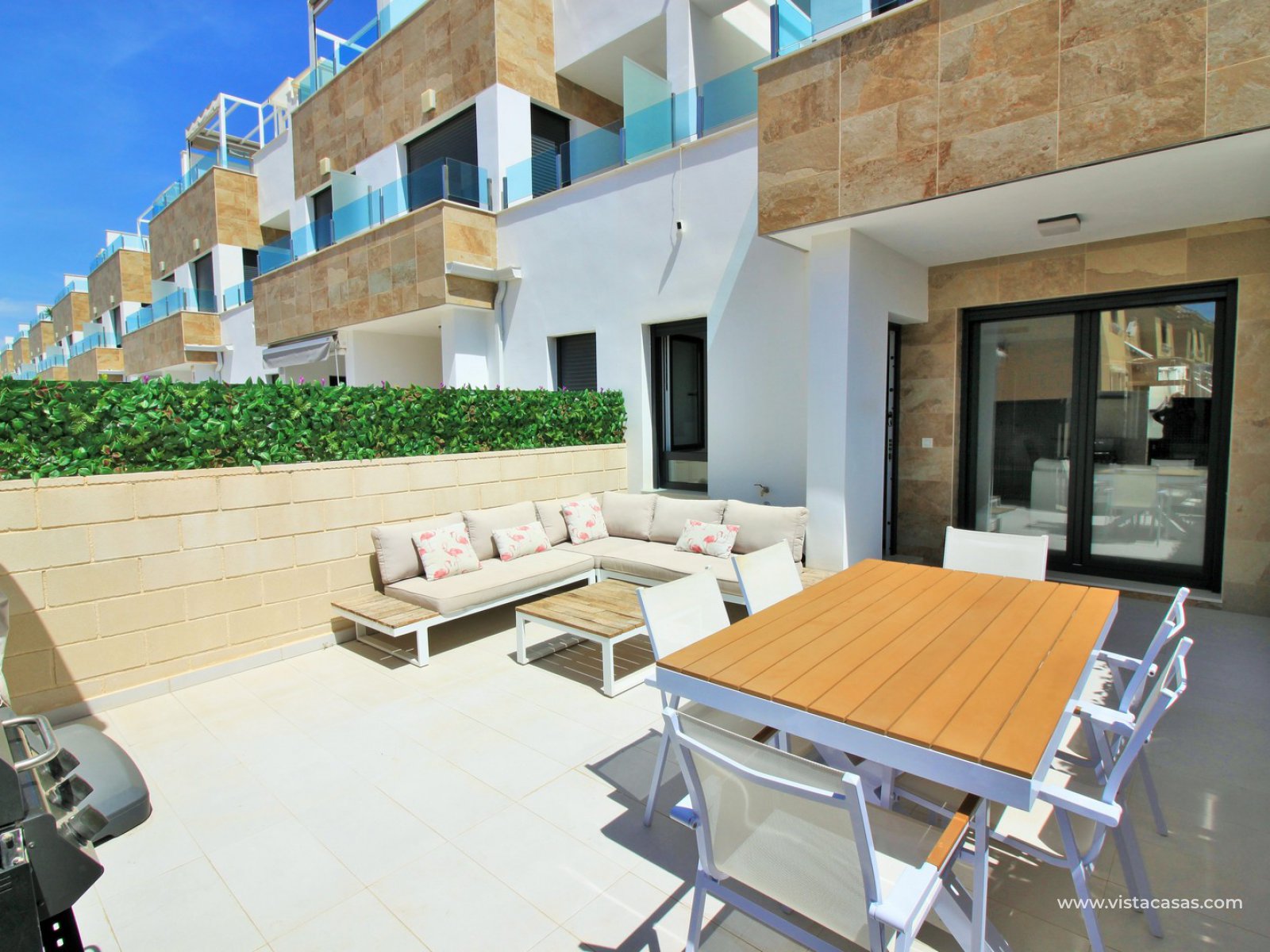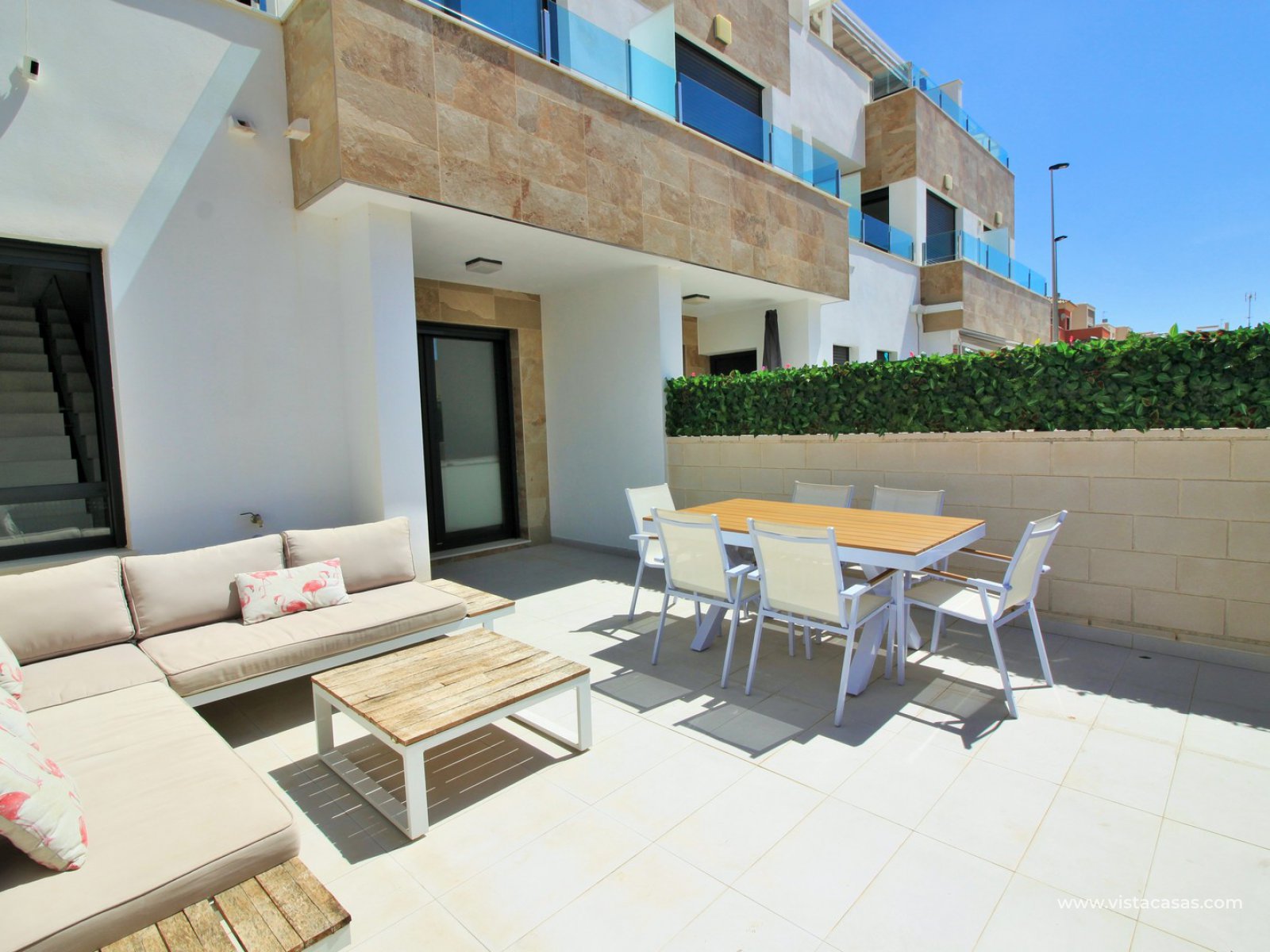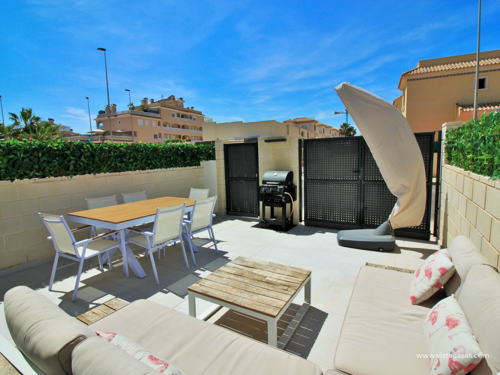 Stunning 3 bedroom, 3 bathroom modern townhouse for sale in the residential complex of El Manantial in Los Dolses, Orihuela Costa. This immaculate property was built in 2017 and offers a sunny front garden, roof solarium and rear terrace. El Manantial offers all homeowners use of great communal facilities including a large swimming pool, a heated pool, children's play area and a petanca court. Situated in a great location within a 10 minutes' walk to a wide variety of amenities in Los Dosles, including a supermarket, shops, bars, restaurants, bus stop...The Zenia Boulevard and the beaches are only a 5 minutes' drive away.
