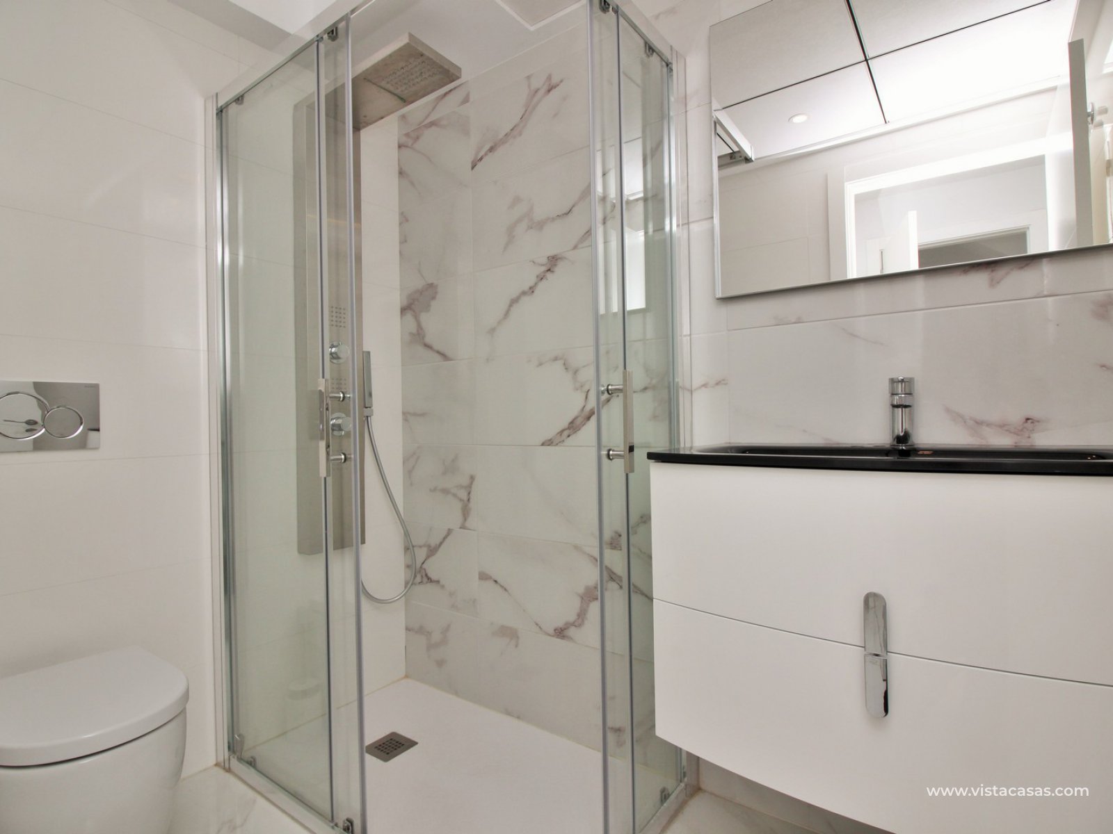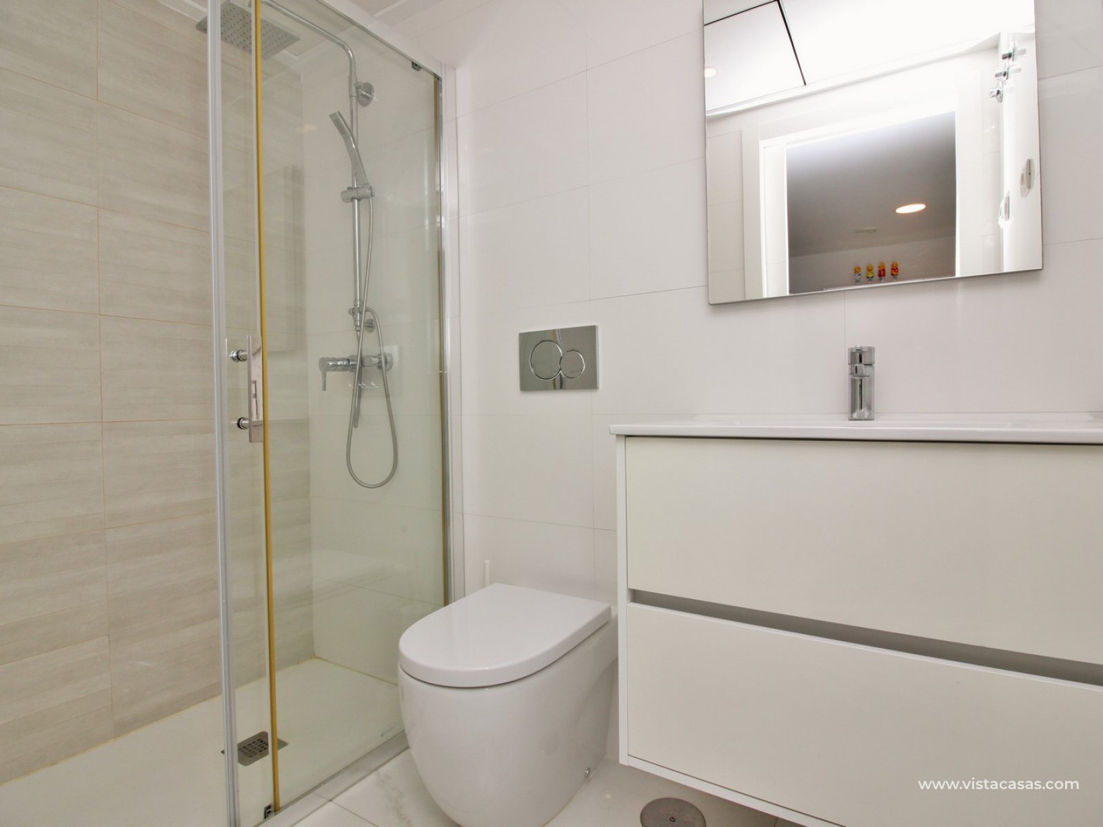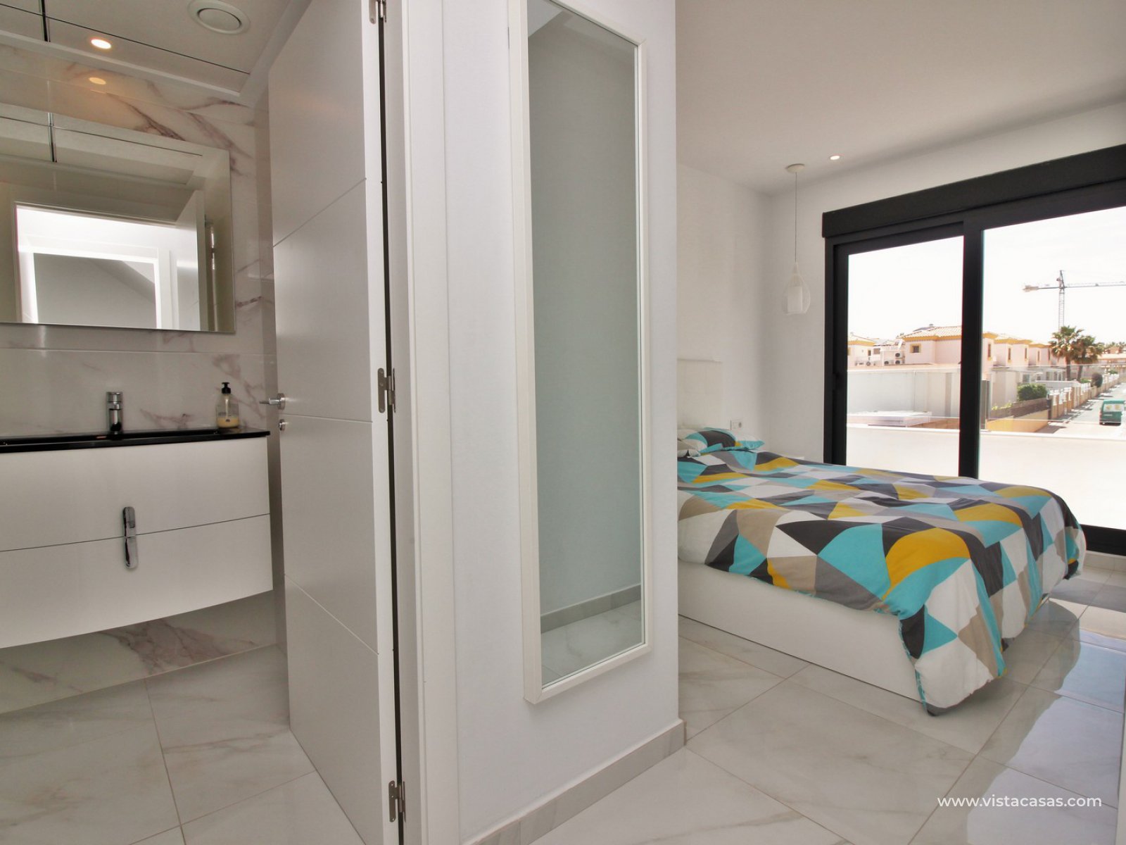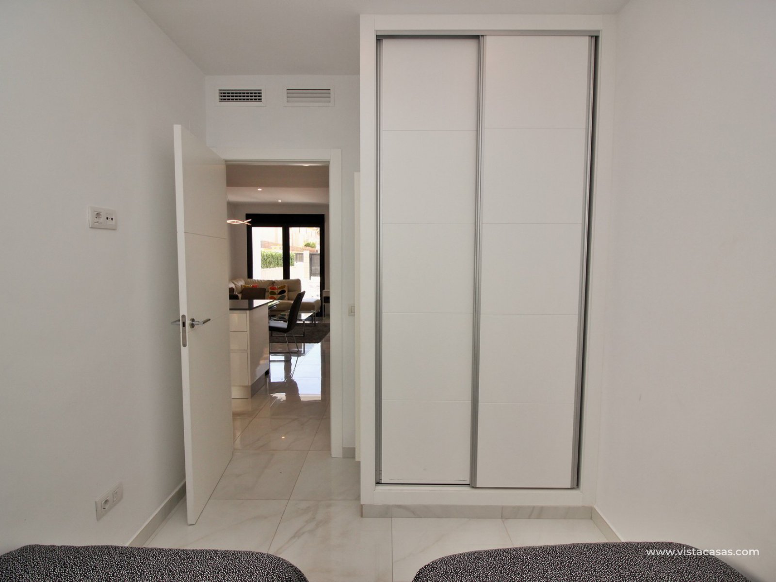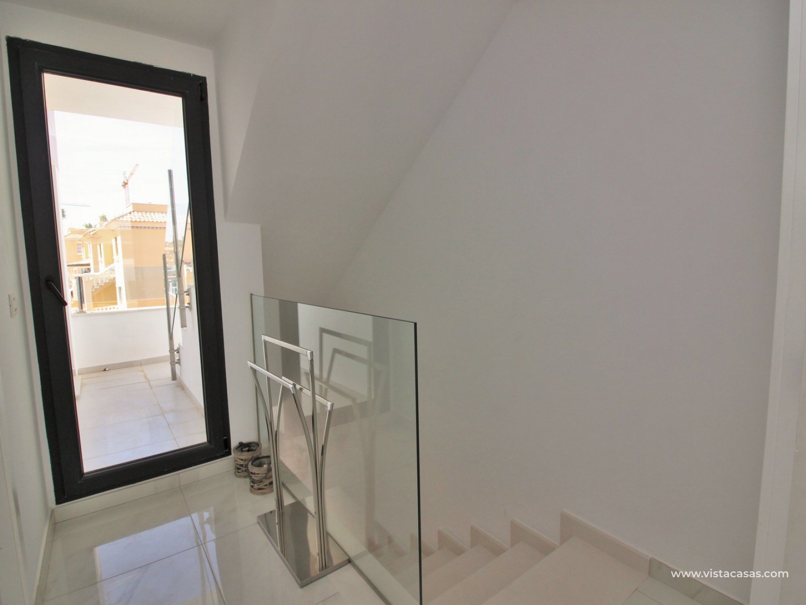 Stunning 3 bedroom, 3 bathroom modern townhouse for sale in the residential complex of El Manantial in Los Dolses, Orihuela Costa. This immaculate property was built in 2017 and offers a sunny front garden, roof solarium and rear terrace. El Manantial offers all homeowners use of great communal facilities including a large swimming pool, a heated pool, children's play area and a petanca court. Situated in a great location within a 10 minutes' walk to a wide variety of amenities in Los Dosles, including a supermarket, shops, bars, restaurants, bus stop...The Zenia Boulevard and the beaches are only a 5 minutes' drive away.