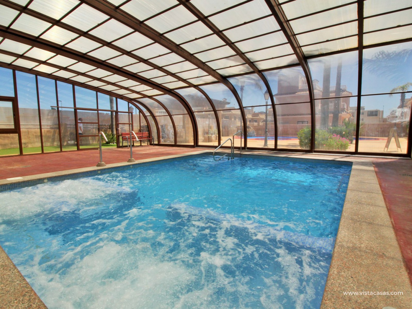 An immaculately presented 2 bedroom apartment for sale in Vista Azul XII, Los Dolses. The residencial complex offers great facilities, including 2 outdoor swimming pools, an in-door heated pool with spa area, sauna and children's playground. The apartment is sold with air-conditioning in all rooms, and offers a large 23m2 balcony with sea views, plus an underground garage.