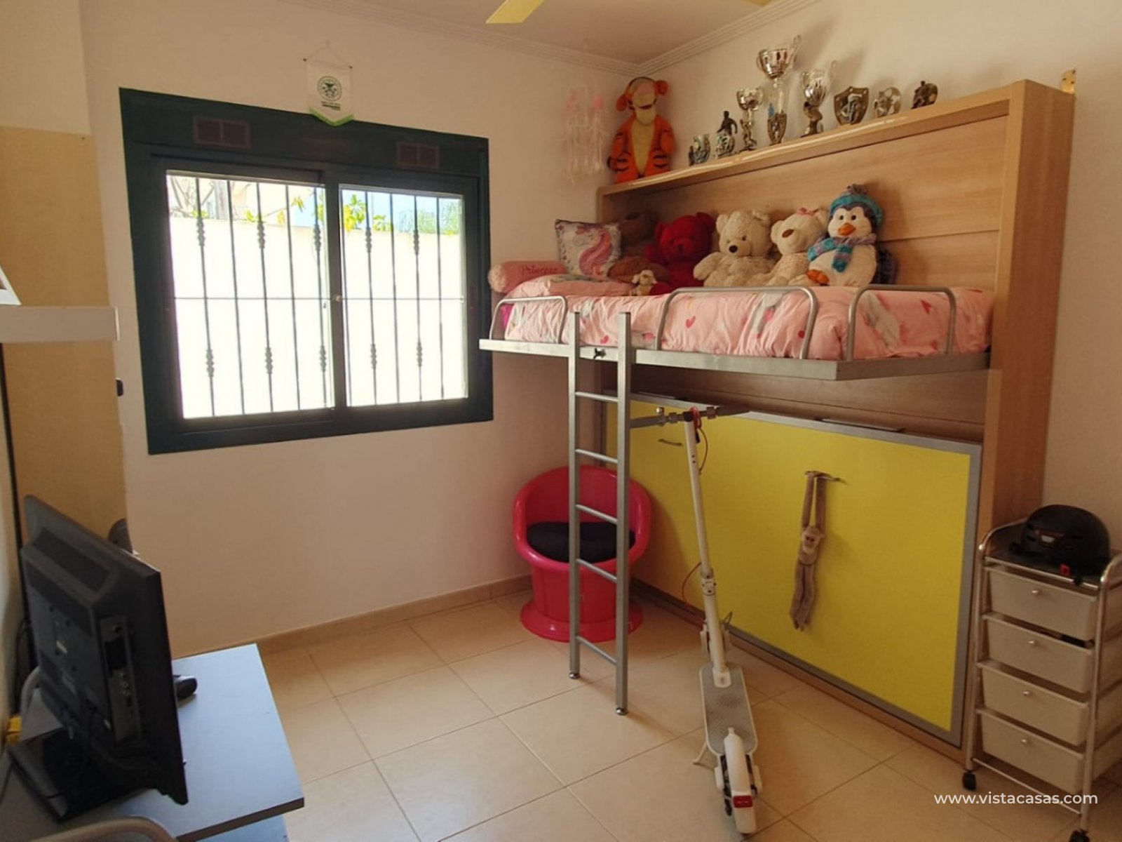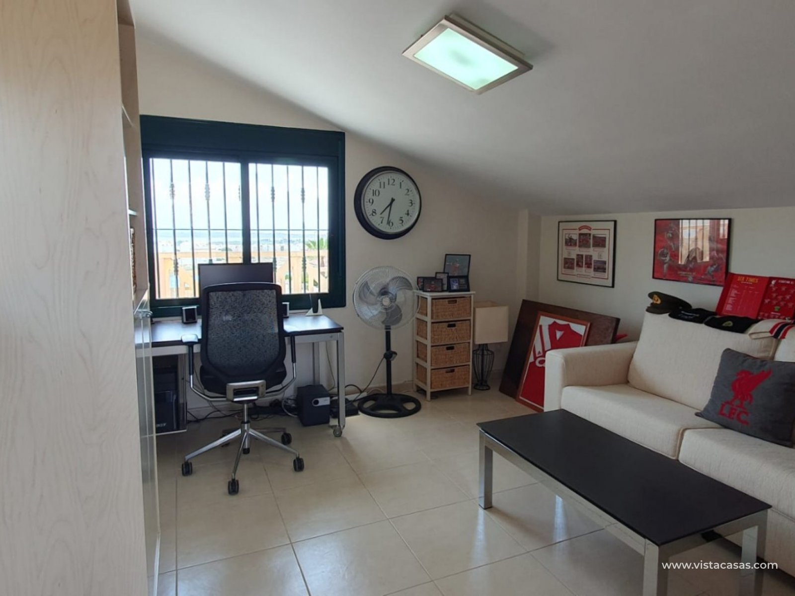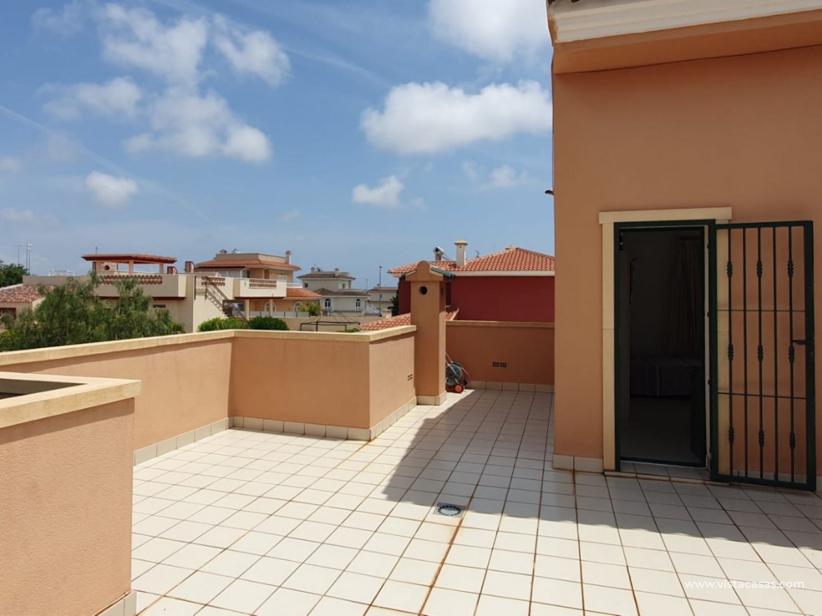 Here we have this is a Modern and spacious 4 (5) bed villa is located in a quiet area of Quesada with Stunning Salt lake views. From the Private sun terrace you see across the Salt Lakes and out toward the Sea and Costa Blanca coast line, this property is located in a quiet area of Quesada, but only a short drive from all the amenities of Quesada and Dona Pepa. On entrance this is a 4 bed villa arranged across 2 floors, accessed from a large front terrace. On the ground floor we have a modern and bright living space, here the large and modern kitchen, dining and living space offers plenty of room to arrange a layout of these areas as suits your needs. Here also we have the Master bedroom with en suite and 2 double size bedrooms with fitted wardrobes, and a family bathroom, also some additional separate storage space, and outside separate from the kitchen a additional utility or laundry room. On the 2nd floor there is a further 4th bedroom, and this has double access to the terraces/solarium of the property facing forwards towards the Salt lakes and at the rear across Quesada. On this floor also there is an additional room, currently used as an office but equally could be a 5th bedroom or any space that you would prefer. This villa is well maintained and very well presented with excellent building quality, integrated hot and cold air-conditioning, electric gates and security grills, alarm and a private, secure and fully wall plot. This property can be sold part furnished. Outside the large covered terraces looks out over the bespoke designed and built swimming pool, and the rest of the property. The villa is well situated on the 525 square meter plot, with spaces and areas around the villa at varying points throughout the day offering the sun and shade which provide quiet spaces to enjoy, to BBQ, or just relax. T
