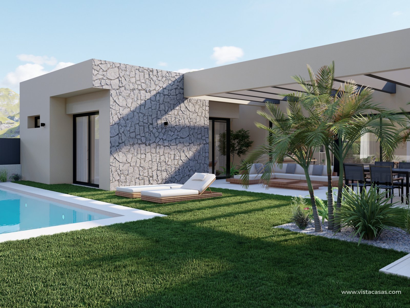 New build villas in the fantastic Altaona Golf & Country Village. The resort is only 15 minutes from Murcia city and 10 minutes from Murcia airport and has 24 hr security as well as a selection of daily necessities, such as a supermarket, a golf proshop, and restaurants. An 18-hole golf course, padel and tennis courts, Spa and gym are also some of the other activities available. The local mountains have great hiking trails and mountain bike trails. San Javier, Los Alcazares and San Pedro del Pinatar are an easy, pleasant drive away where there are the beautiful beaches of the Mar Menor.