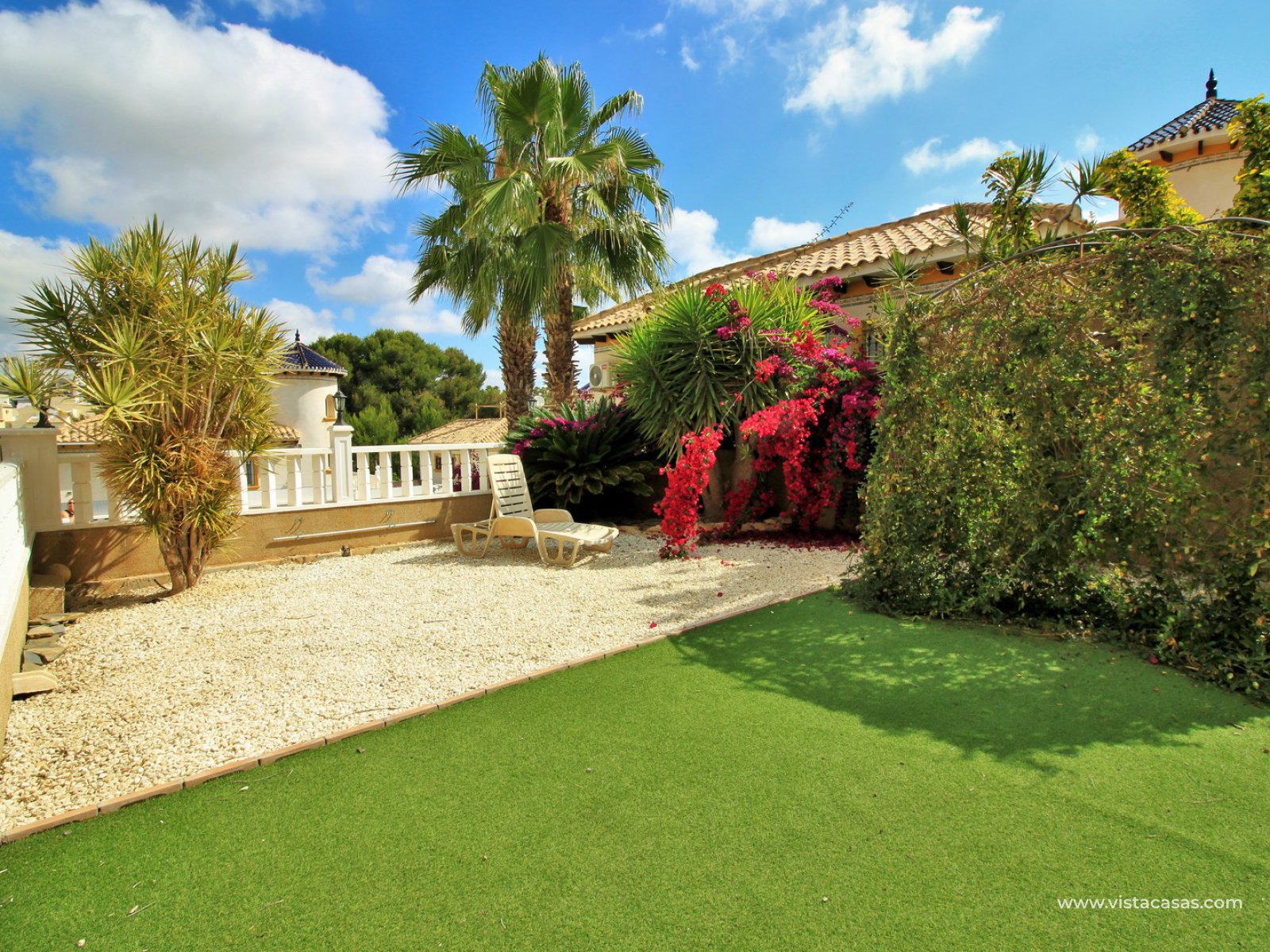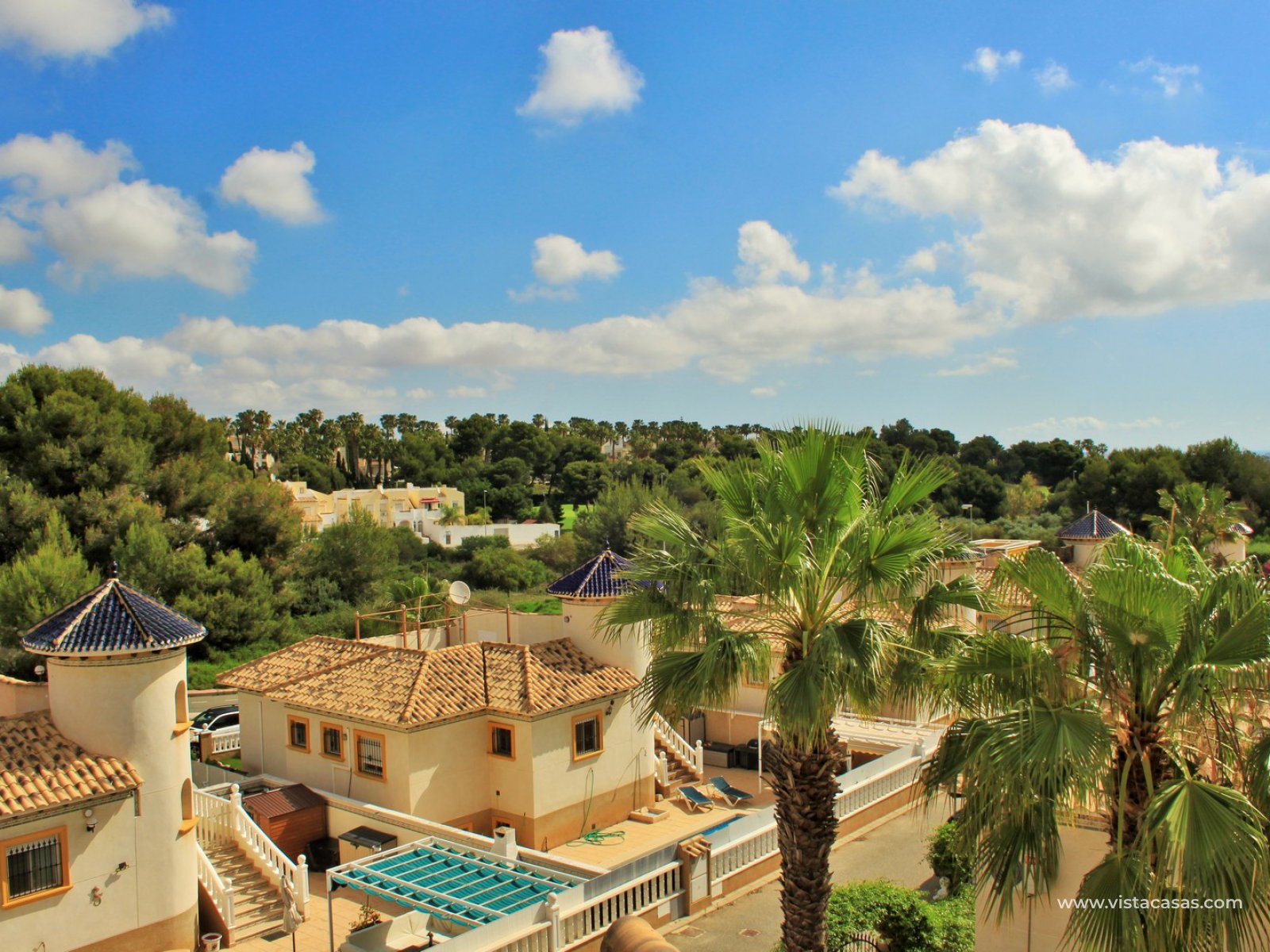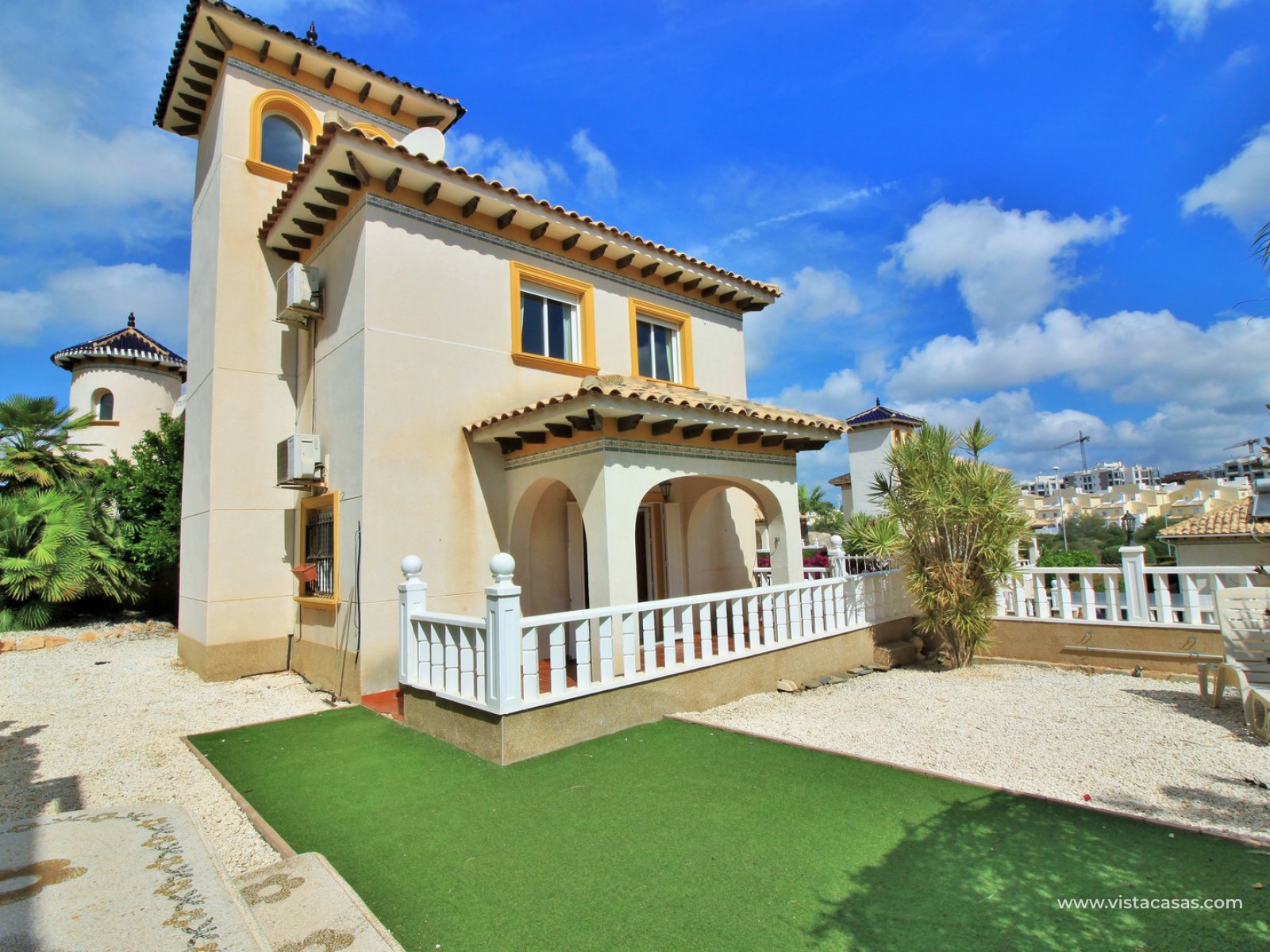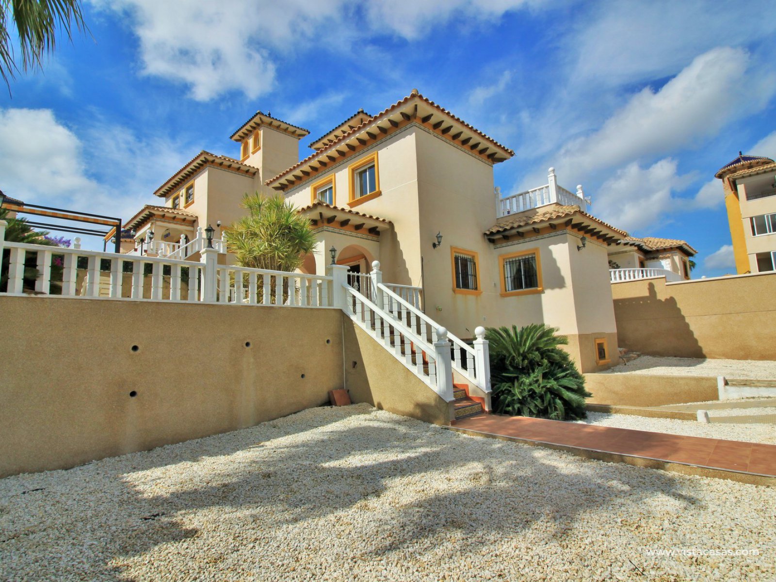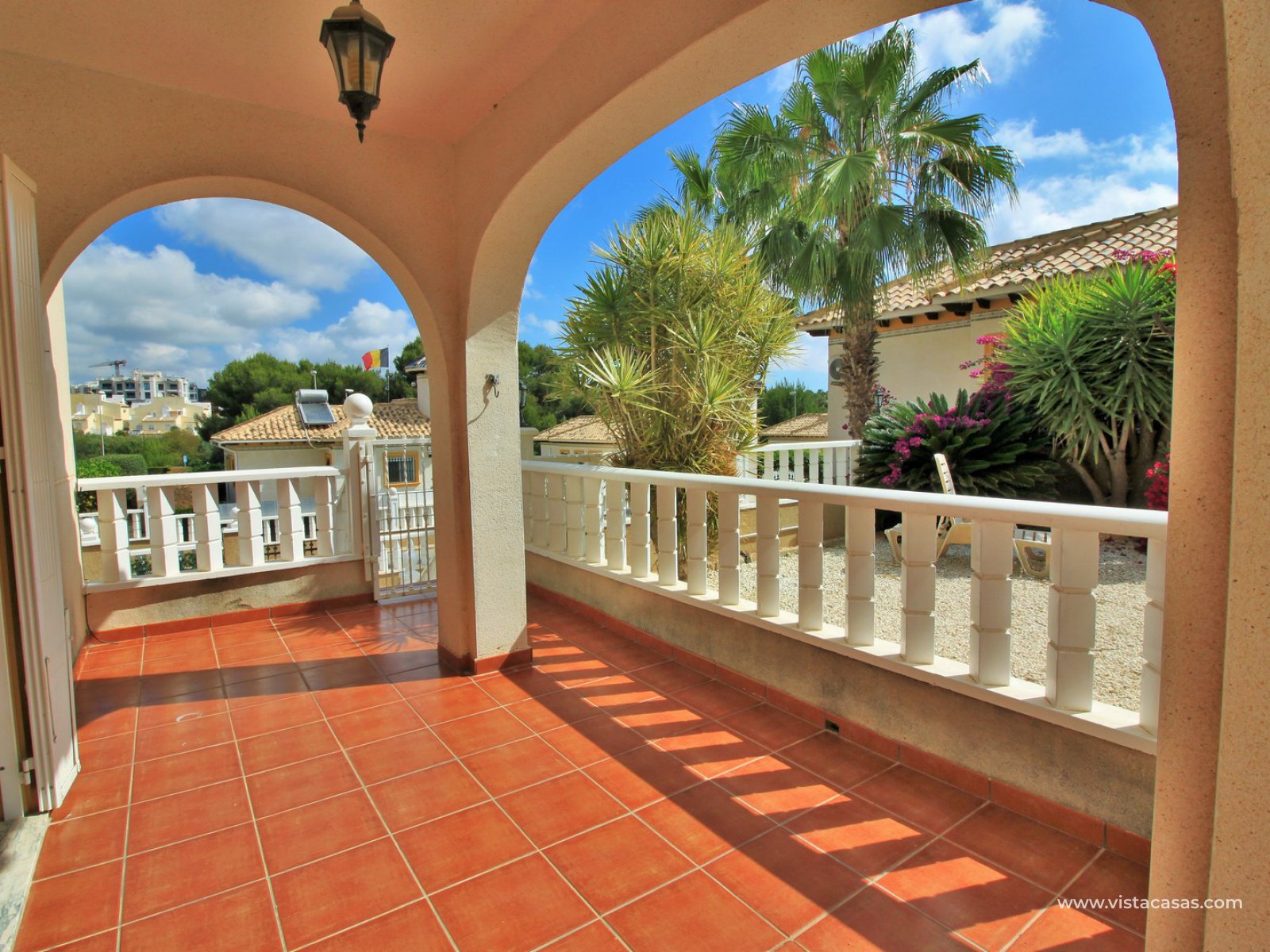 3 bedroom, 2 bathroom detached villa with garage located in a quiet cul-de-sac in the popular urbanisation of Pinada Golf I, just a 5-minute walk to the famous Villamartin Plaza and golf course. This substantial property has lots of outdoor space including space for a private pool if desired, covered terrace, large garden with driveway, garage, underbuild, roof solarium and balcony.