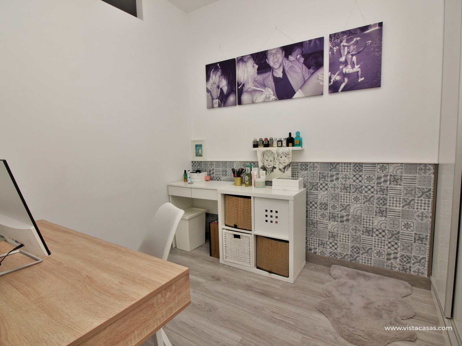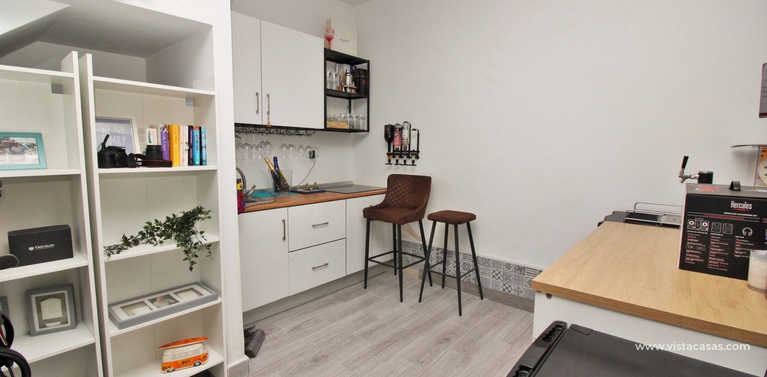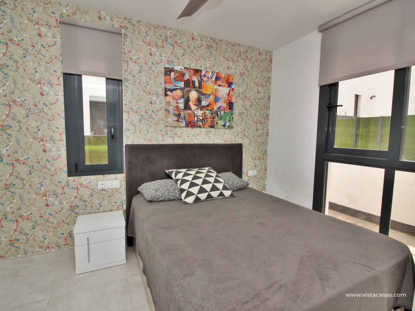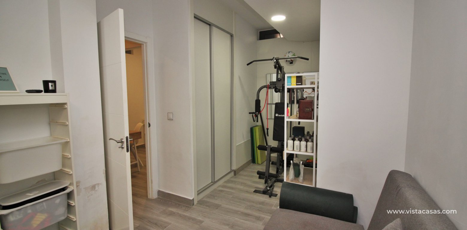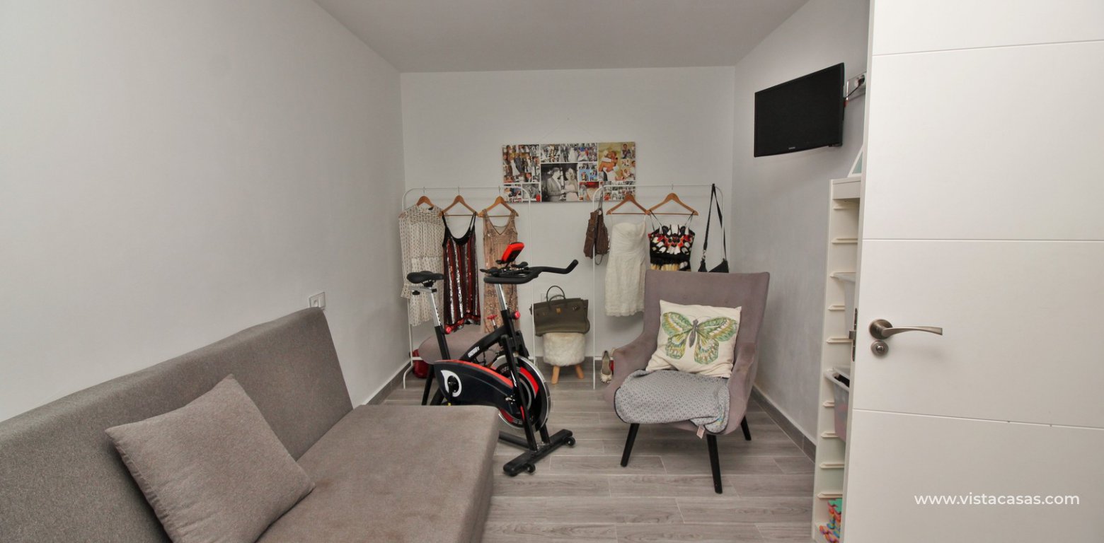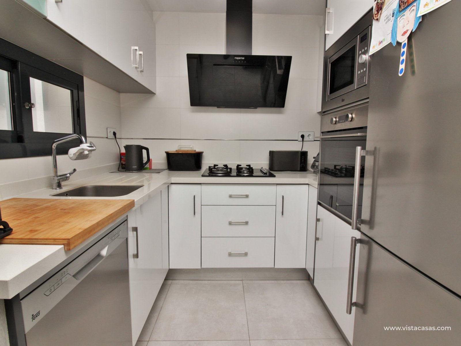 The living accommodation is divided over 3 levels with the ground floor comprising of a lounge area with large picture windows, breakfast bar area, a modern fully fitted kitchen with built-in appliances to the rear, 1 double bedroom with fitted wardrobes, and a bathroom with walk-in shower. On the upper level are a further 2 double bedrooms with fitted wardrobes and a family bathroom. The master bedroom offers a beautiful en-suite bathroom with walk-in shower, plus access to a West facing balcony, which is also accessible from the landing area. From the balcony, external stairs leads up to the large roof solarium with retractable awnings. From the solarium you can see the salt lakes of Torrevieja. The underbuild comprises of a a good sized lounge area, a large double bedroom with fitted wardrobes (currently used as a gym area) and a further single bedroom with fitted wardrobes (currently in use as an office space), and a bathroom with walk-in shower. Sold furnished with ducted air-conditioning throughout the property. Outside offers a lovely private swimming pool with front terrace area, to the back of the property is a storage/utility cupboard.