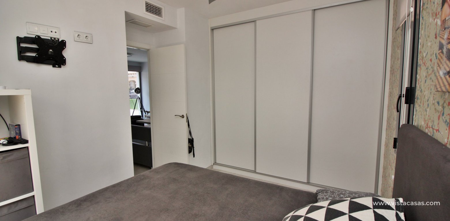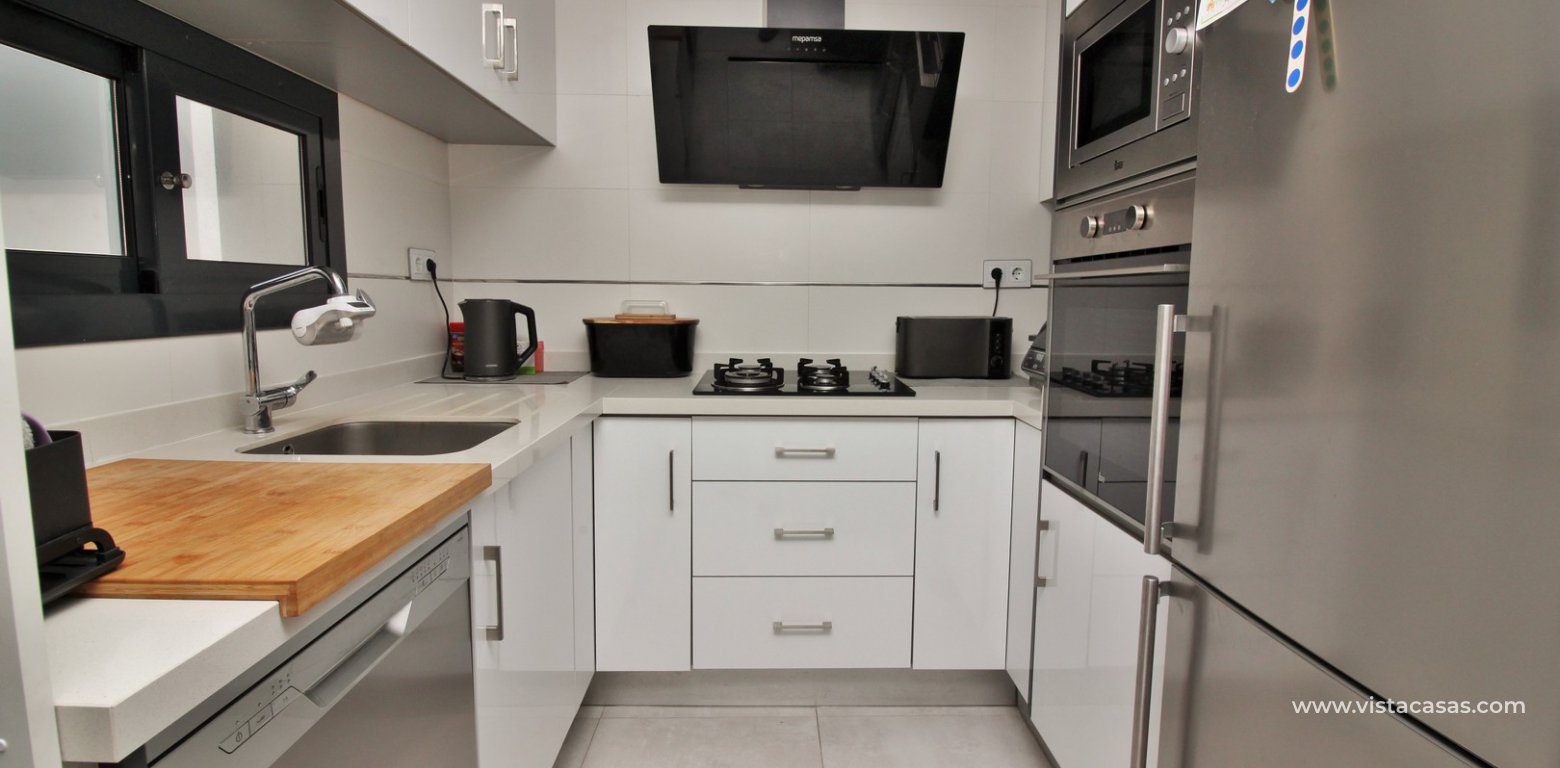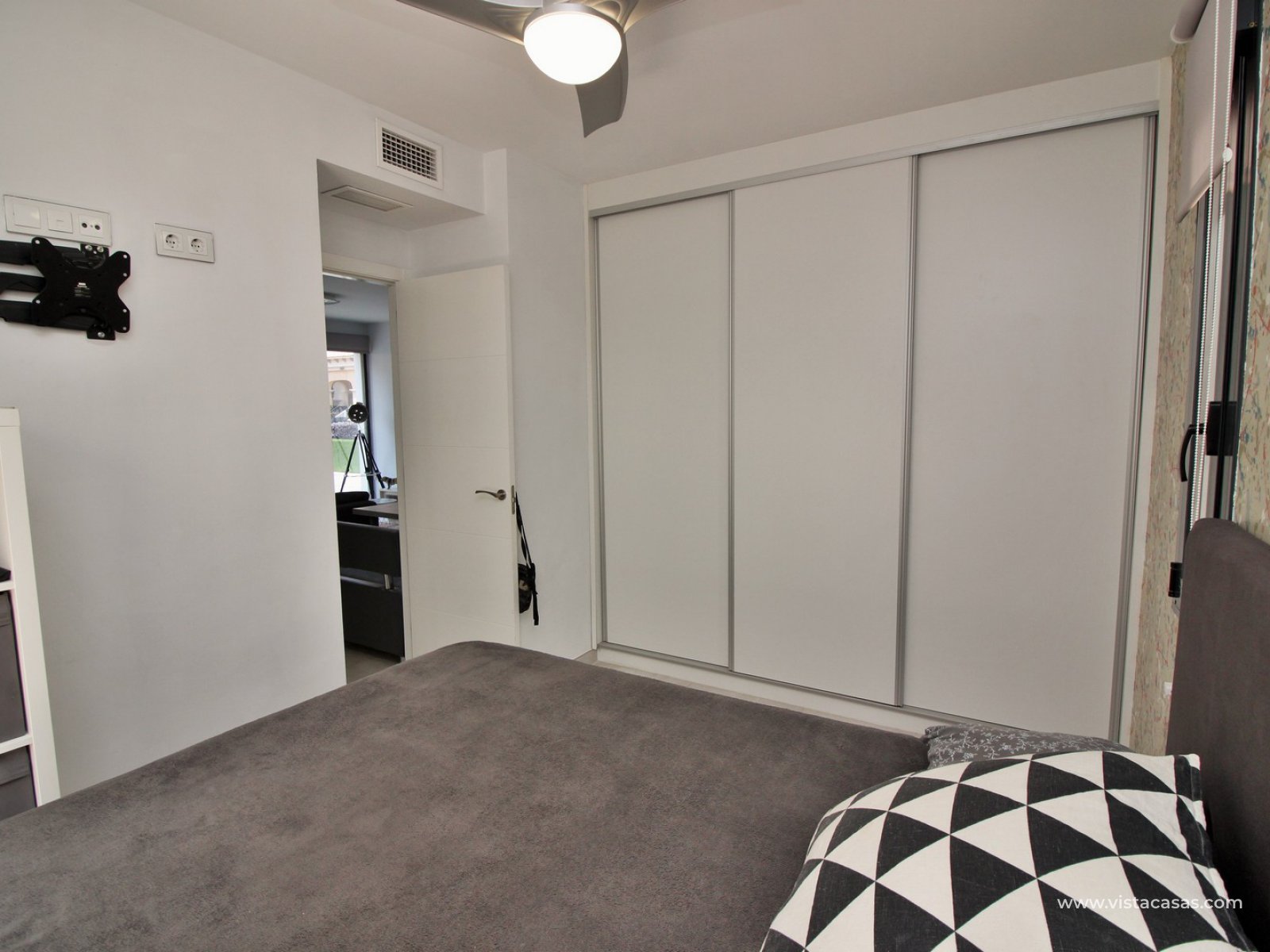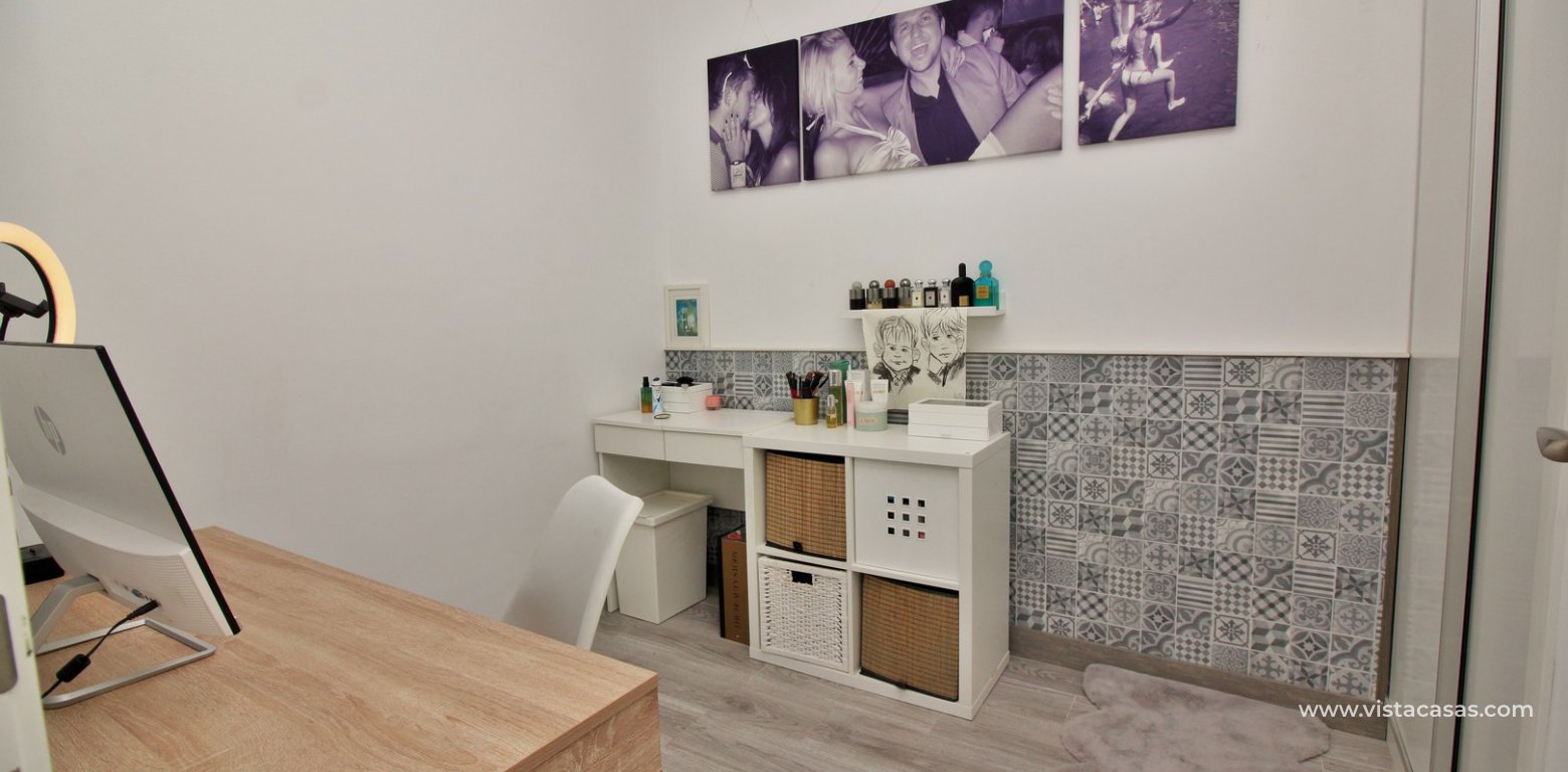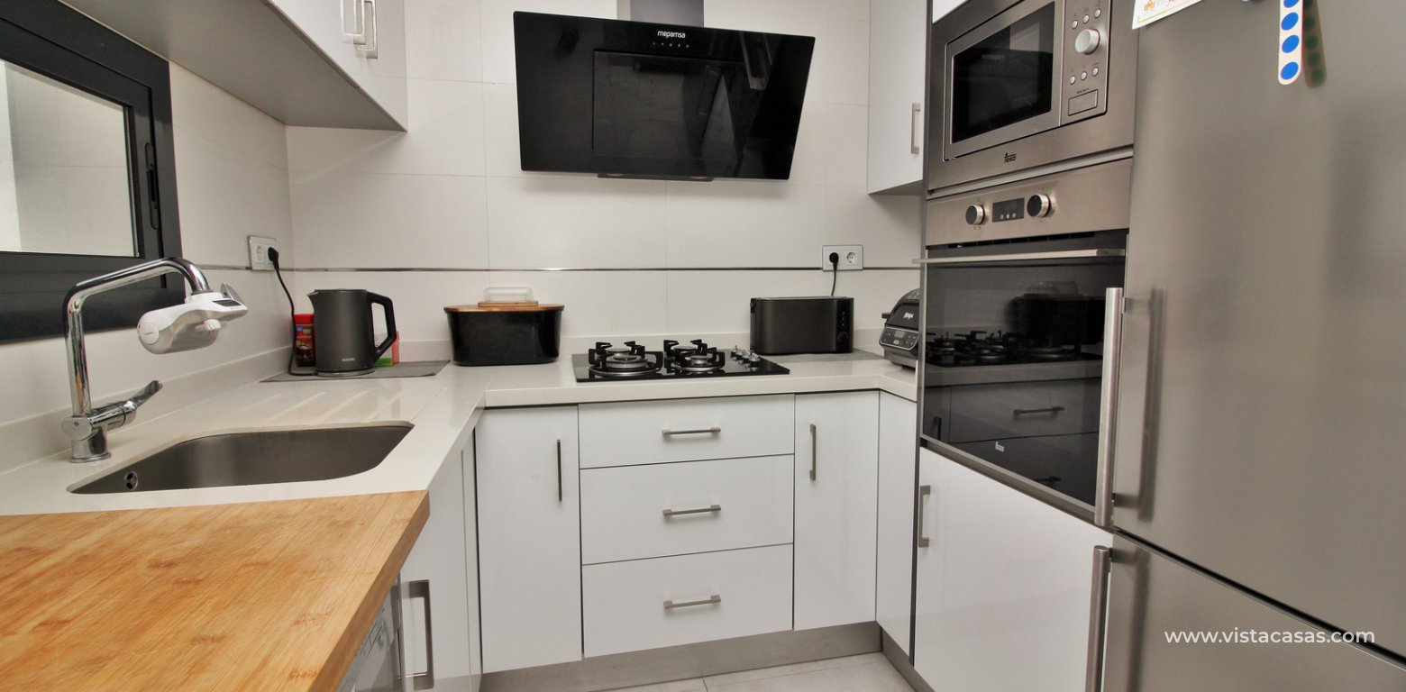 The living accommodation is divided over 3 levels with the ground floor comprising of a lounge area with large picture windows, breakfast bar area, a modern fully fitted kitchen with built-in appliances to the rear, 1 double bedroom with fitted wardrobes, and a bathroom with walk-in shower. On the upper level are a further 2 double bedrooms with fitted wardrobes and a family bathroom. The master bedroom offers a beautiful en-suite bathroom with walk-in shower, plus access to a West facing balcony, which is also accessible from the landing area. From the balcony, external stairs leads up to the large roof solarium with retractable awnings. From the solarium you can see the salt lakes of Torrevieja. The underbuild comprises of a a good sized lounge area, a large double bedroom with fitted wardrobes (currently used as a gym area) and a further single bedroom with fitted wardrobes (currently in use as an office space), and a bathroom with walk-in shower. Sold furnished with ducted air-conditioning throughout the property. Outside offers a lovely private swimming pool with front terrace area, to the back of the property is a storage/utility cupboard.