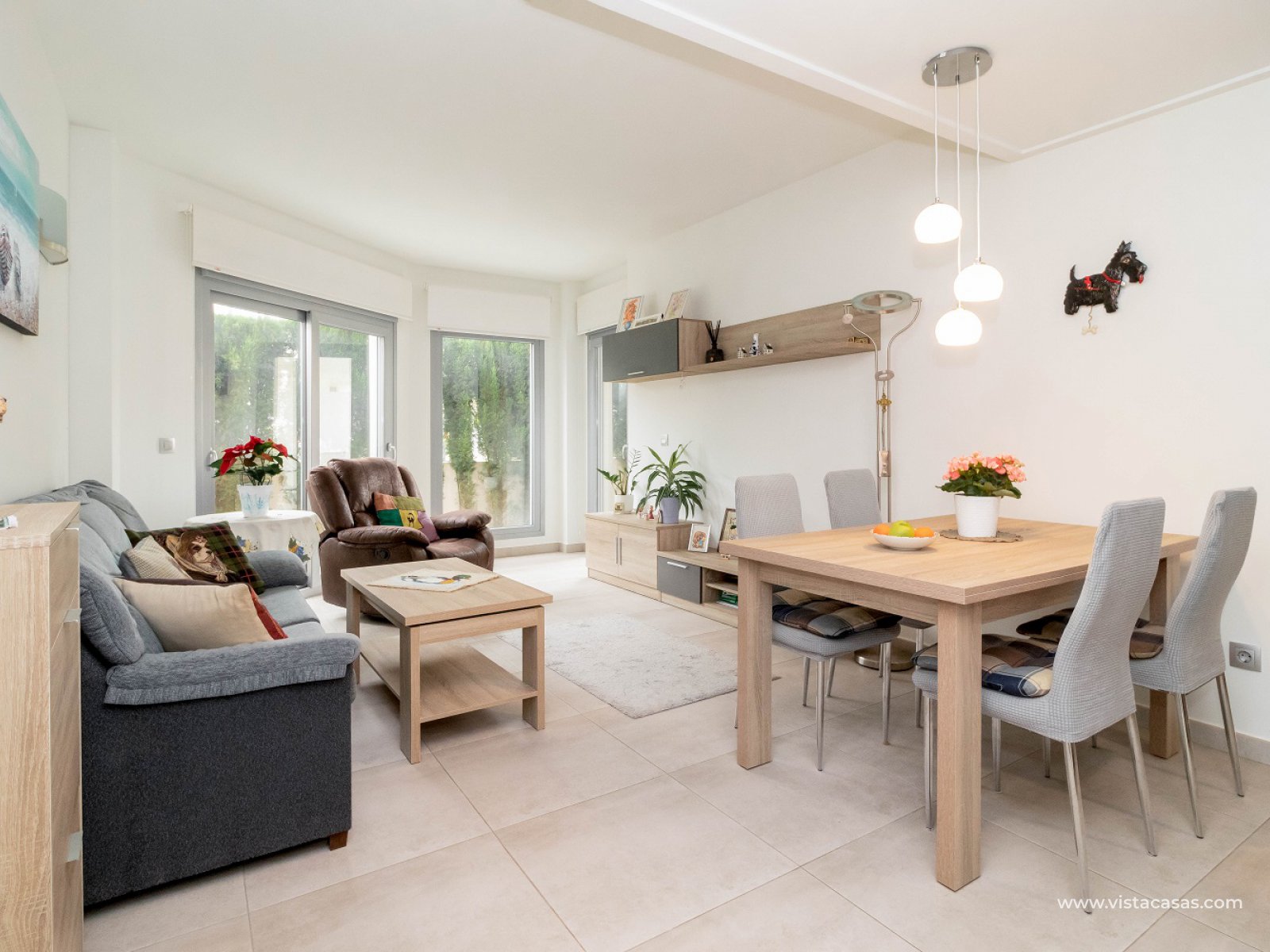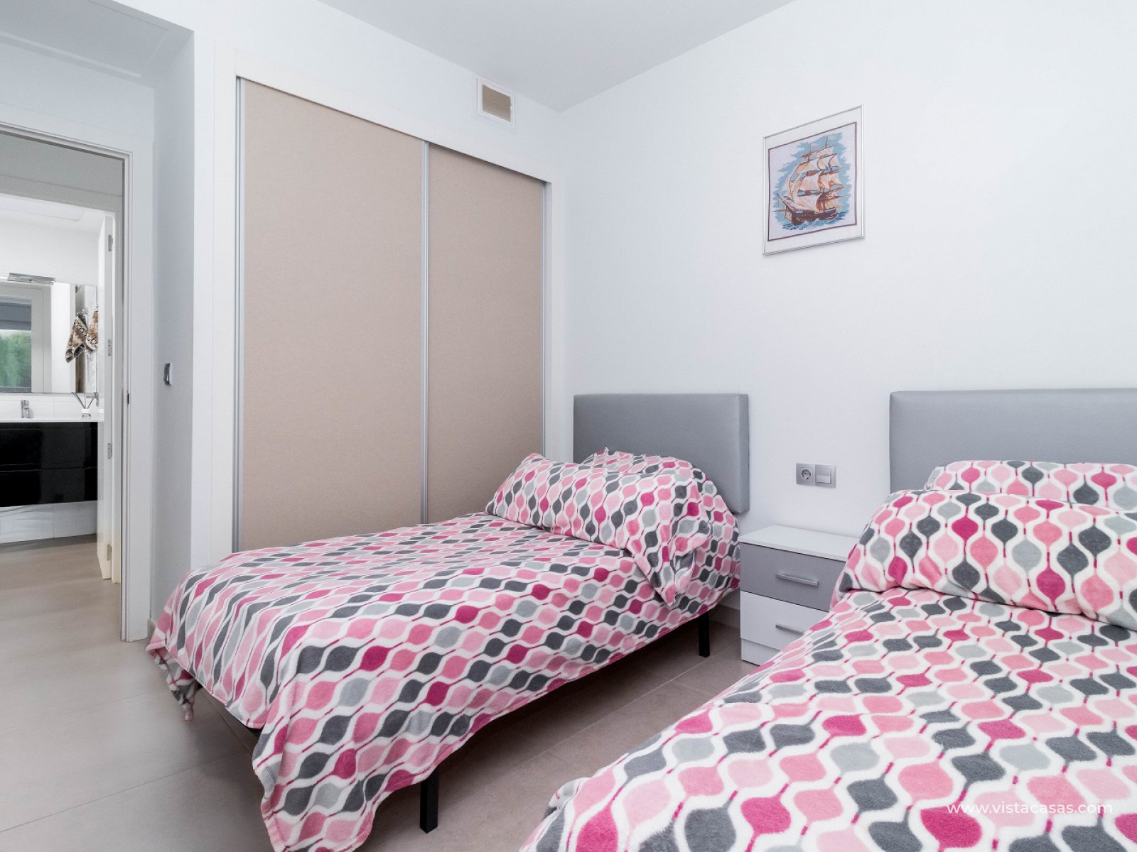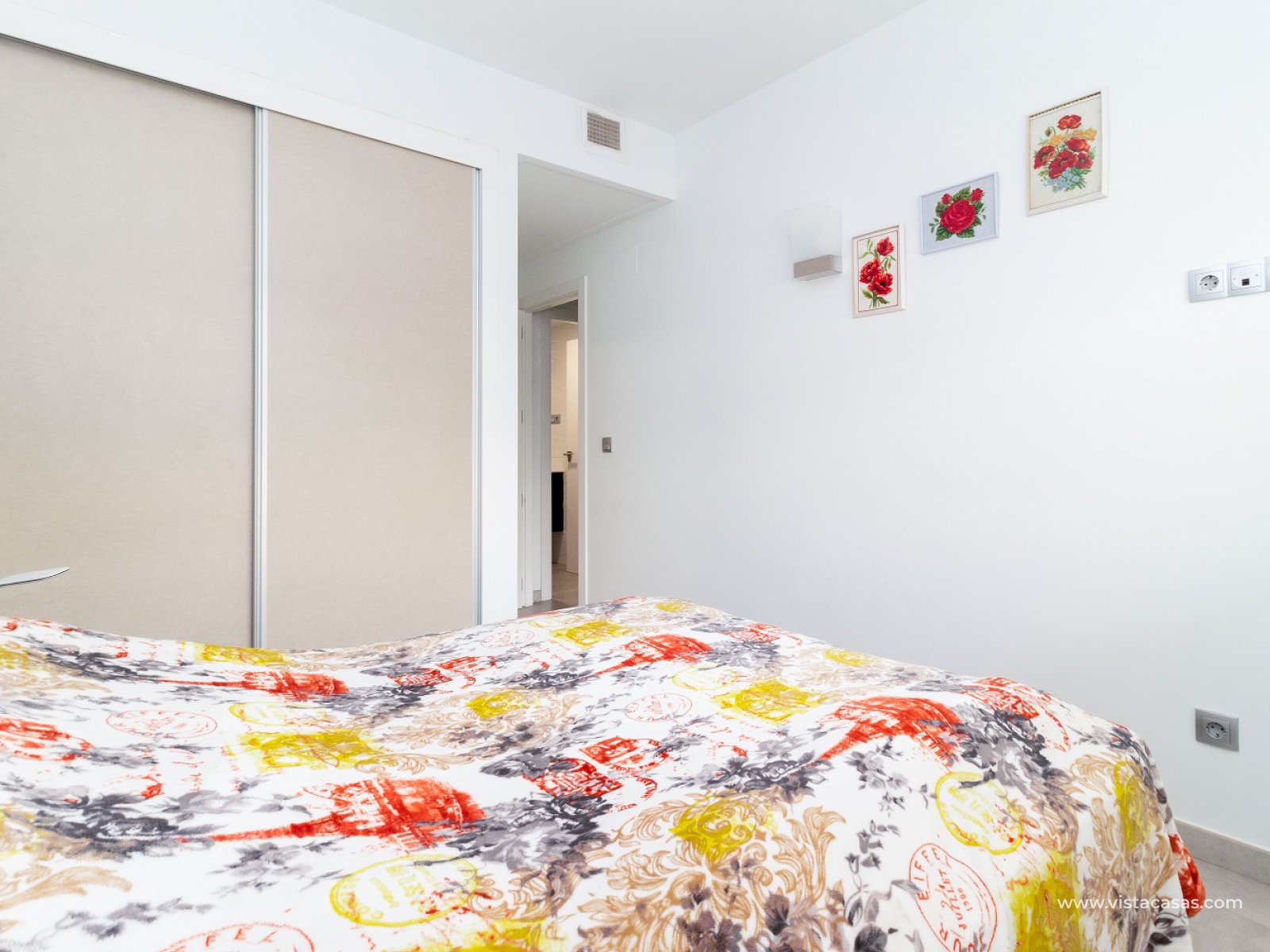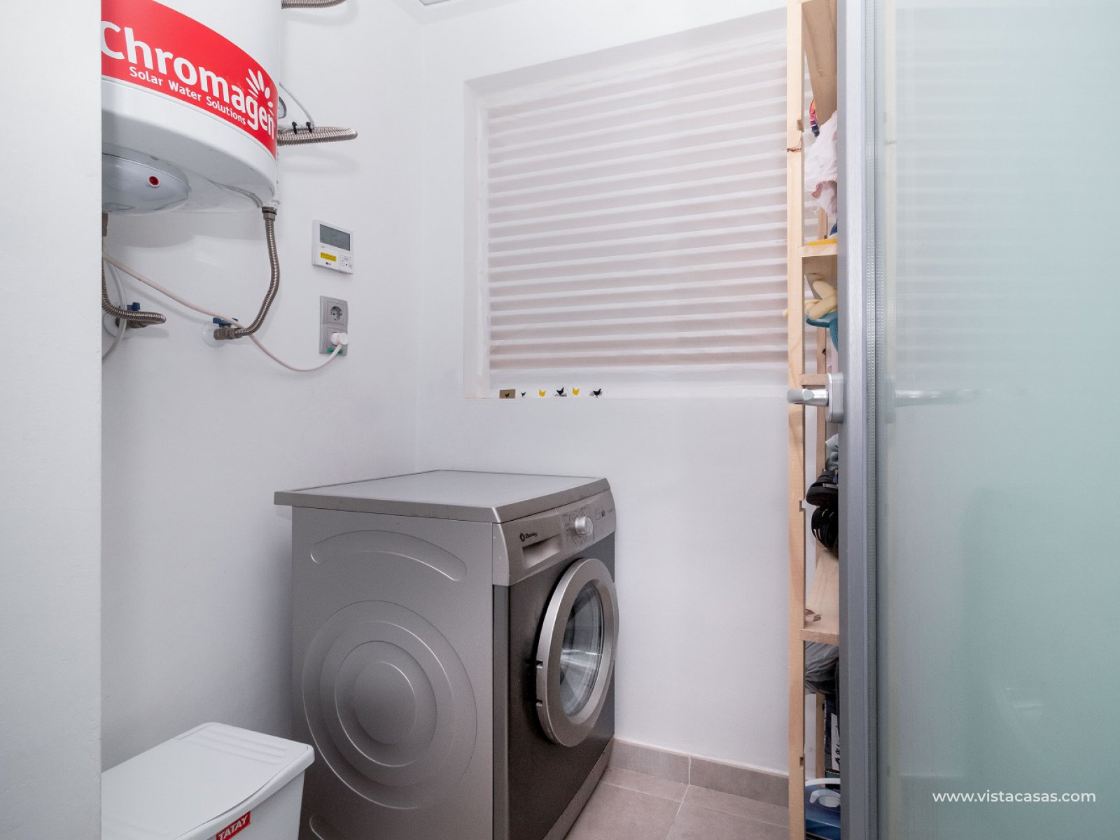 This, as new, ground floor apartment in La Valeta, Torrevieja has a private terrace with pool views, an open plan lounge, dining area and kitchen, 2 bedrooms and 2 bathrooms, underground parking, underfloor heating in bathrooms and it comes with fully installed hot and cold air conditioning, part furnished and all kitchen appliances are included.