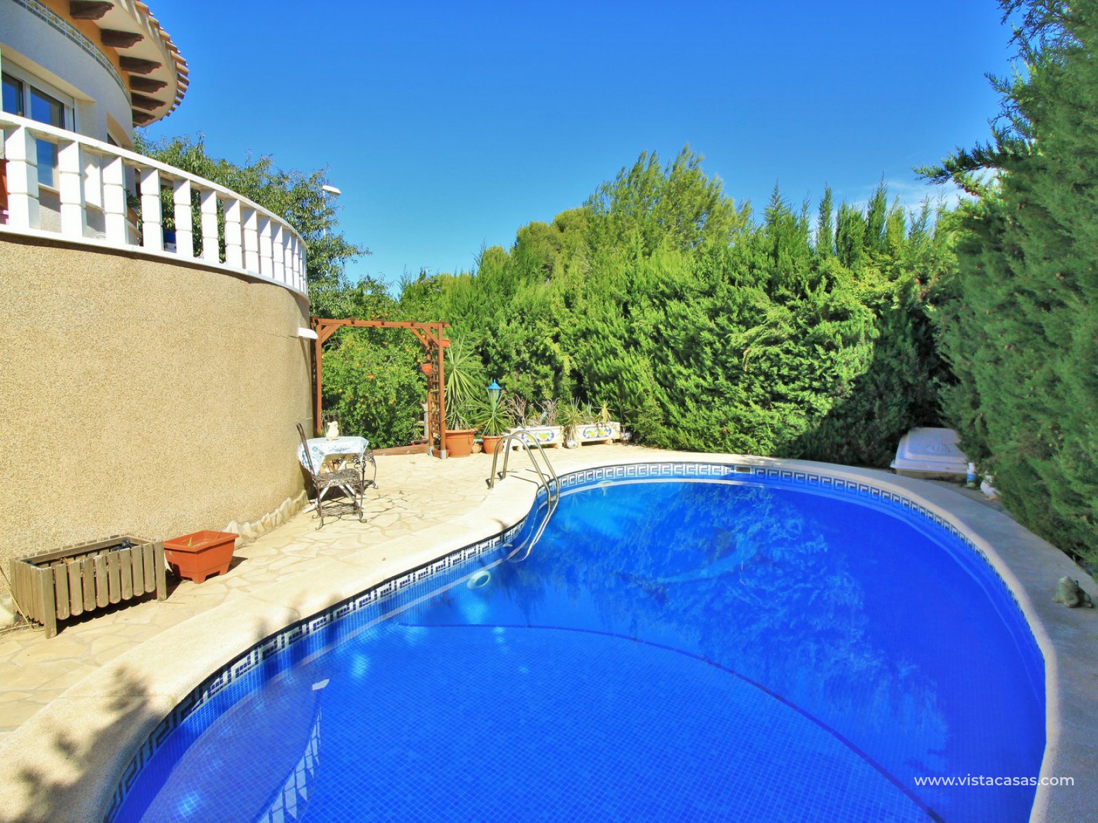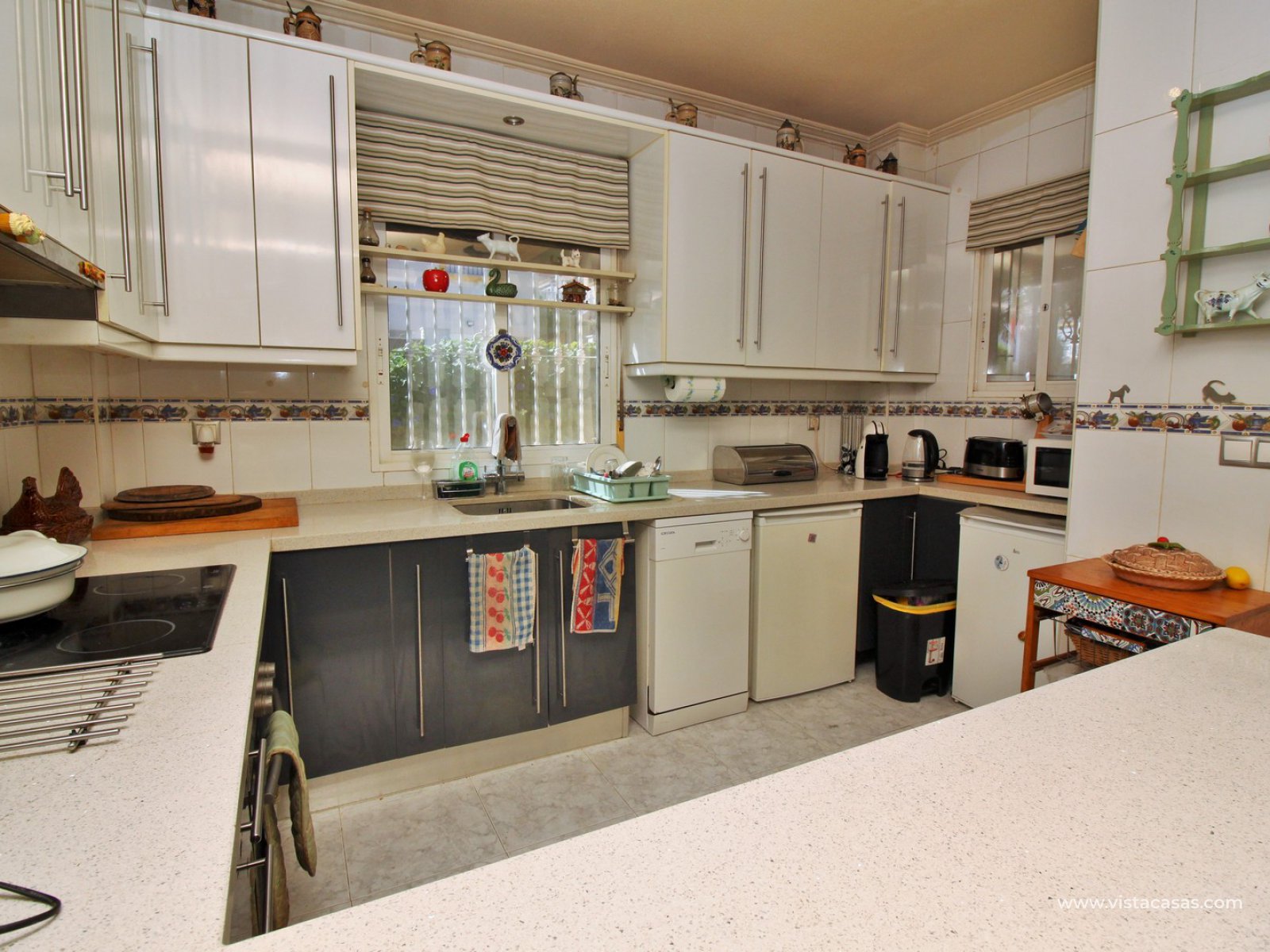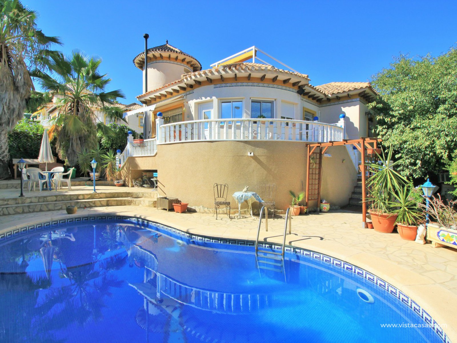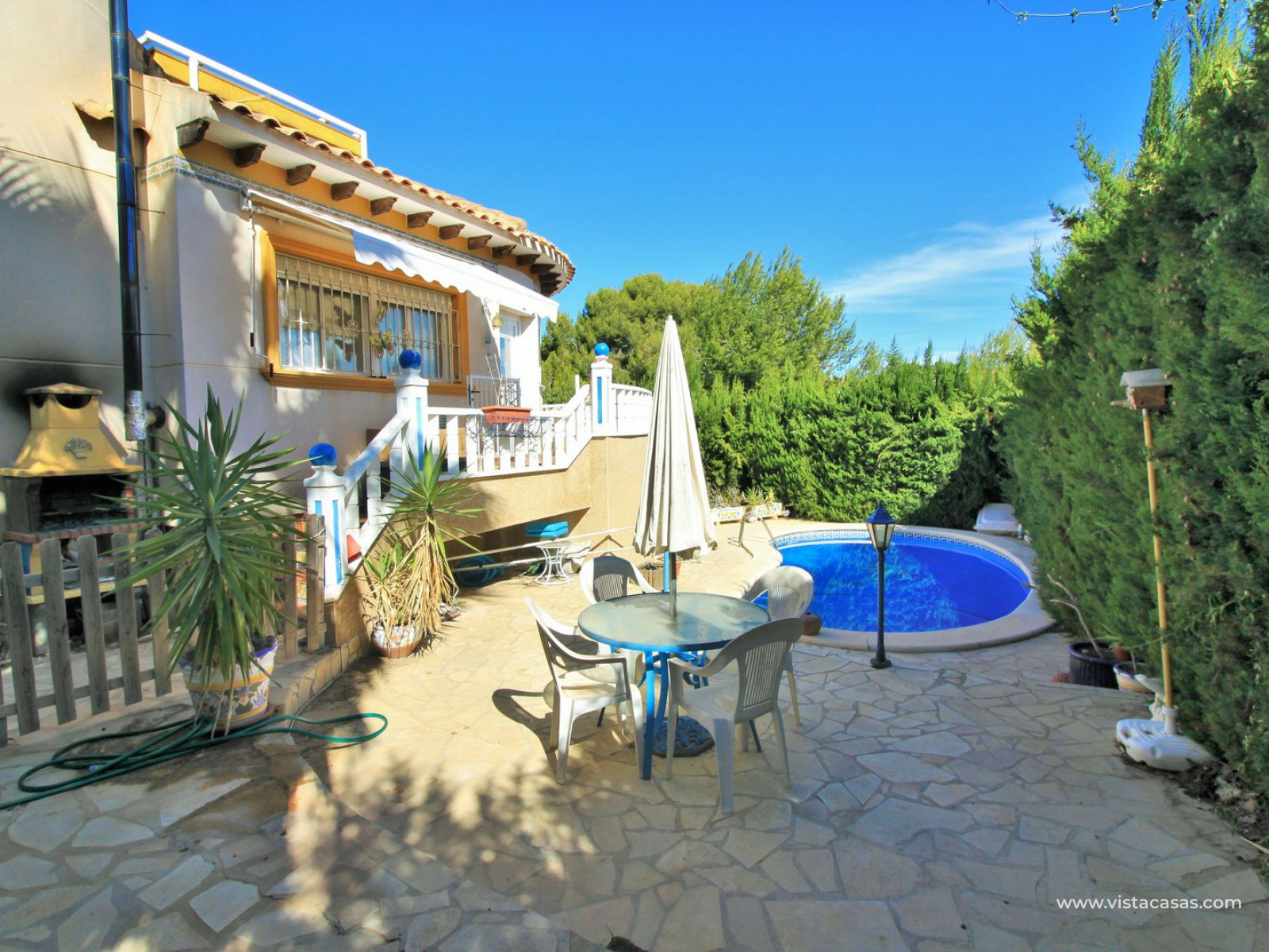 OPEN TO OFFERS! 4 bedroom detached villa with private swimming pool and garage for sale in the popular urbanisation of Pinada Golf I in Villamartin. Located less than a 10 minutes' walk to the Villamartin Plaza and golf course. The property offers an underbuild with a large garage and private swimming pool on a 417m2 plot.