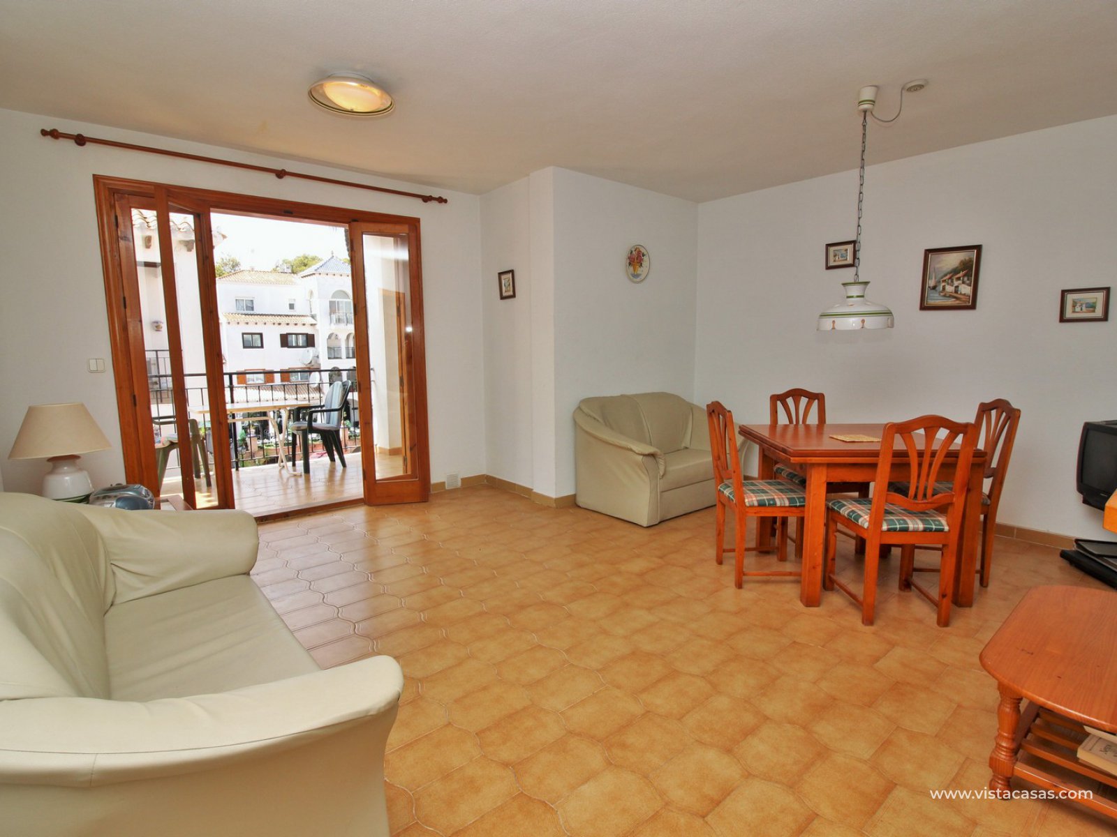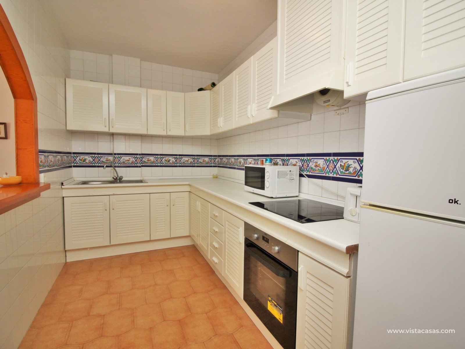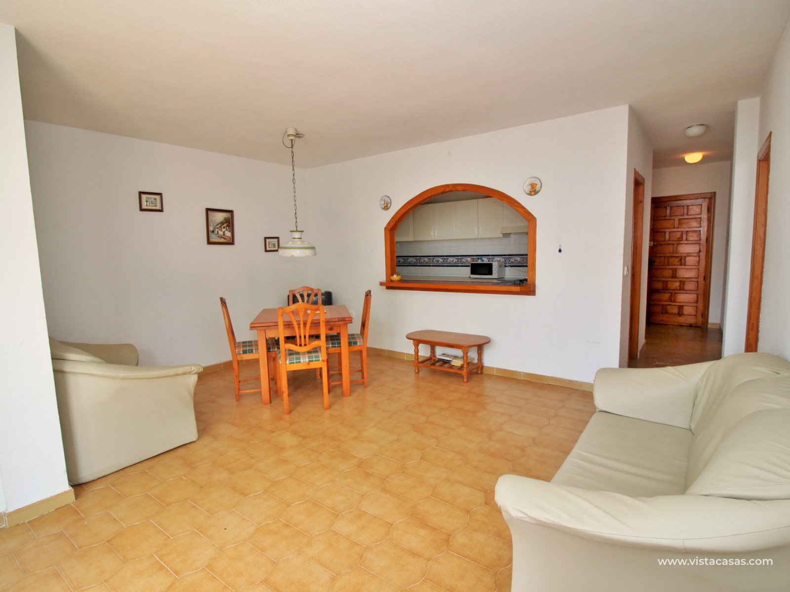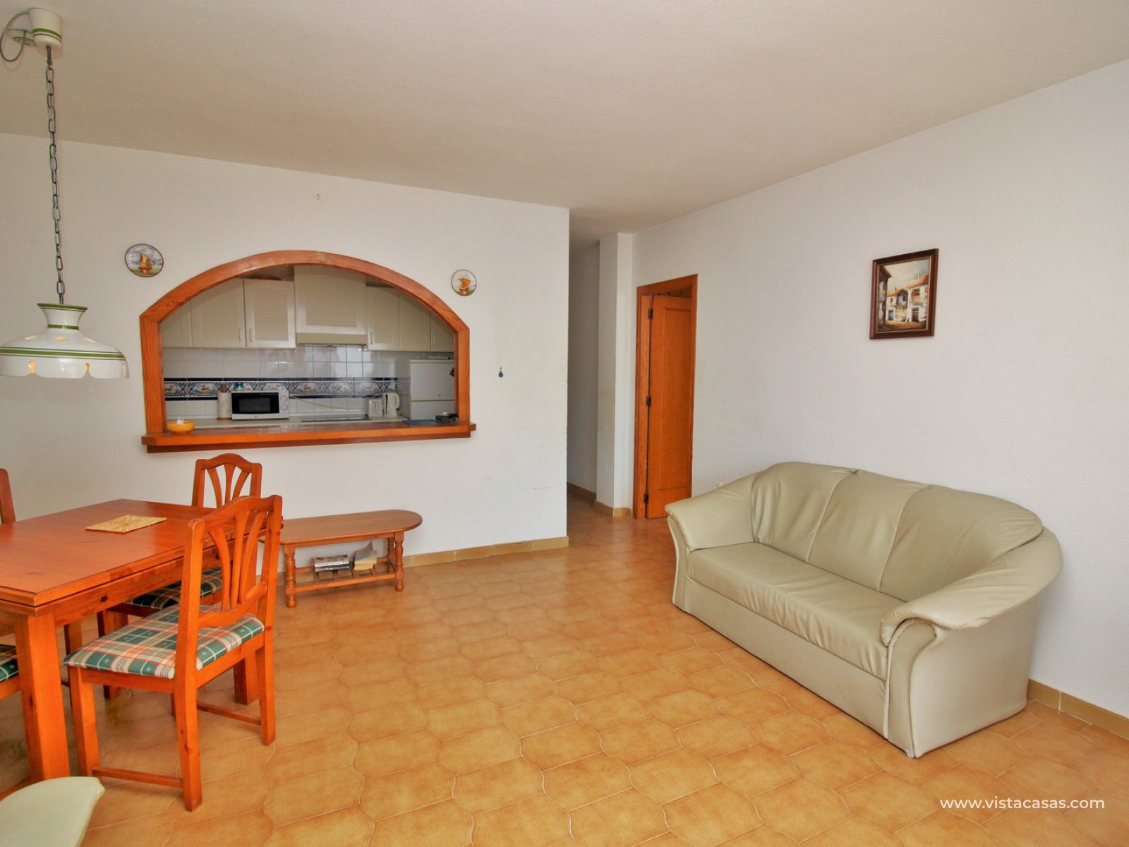 Comprising of a entrance hallway leading into a good sized lounge-dining area with French doors leading out onto the covered balcony, which overlooks the Villamartin Plaza square, and a small utility area to the side. There is a fully fitted separate kitchen, 2 bedrooms with fitted wardrobes, and a family bathroom. The master bedroom is spacious, and has its own en-suite bathroom. The community offers the use of a lovely communal pool, and large garden areas. The Villamartin golf course is just a few minutes walk away! The beaches of the Orihuela Costa, and the Zenia Boulevard shopping mall, are less than a 8 minutes drive away.