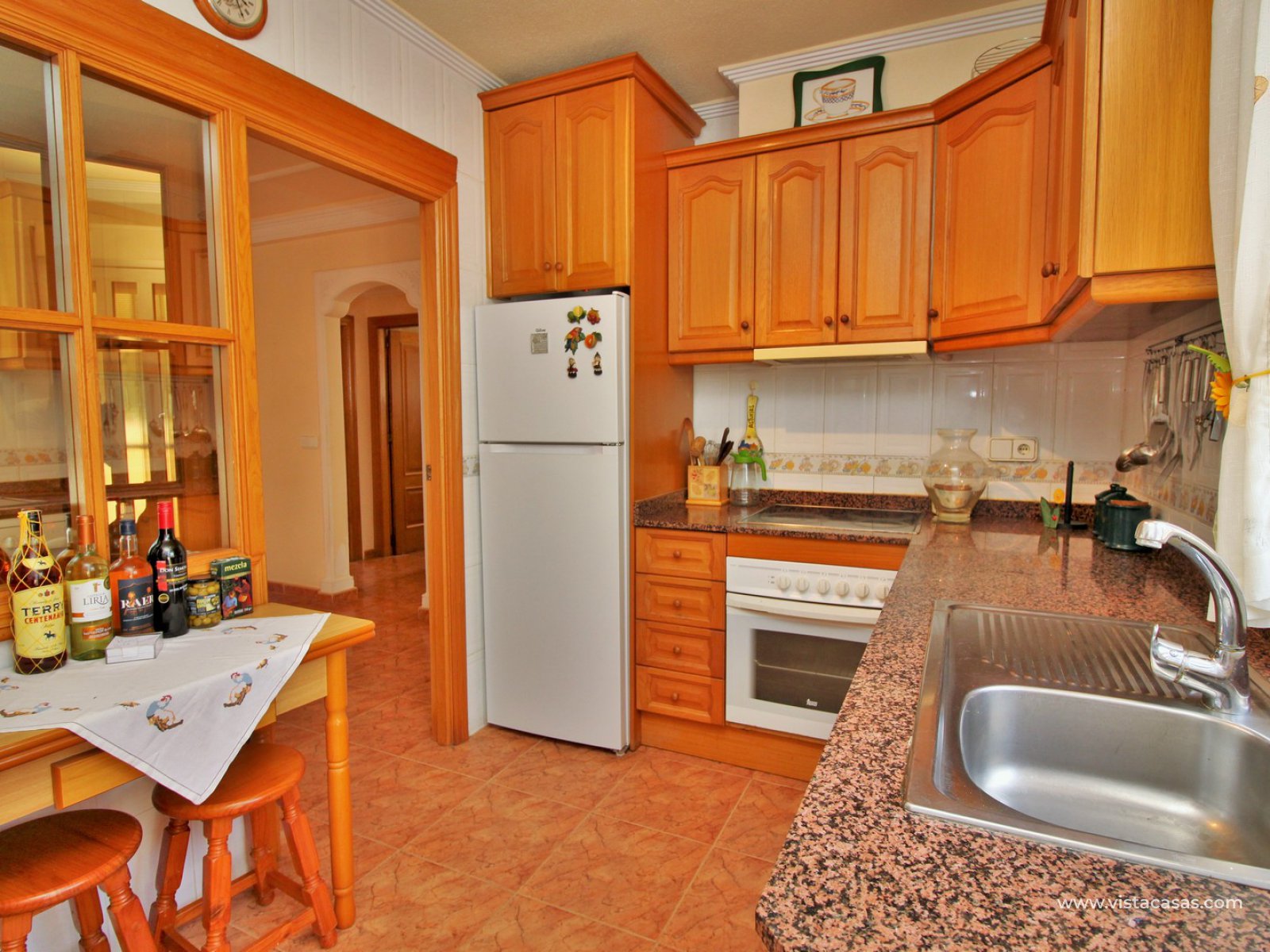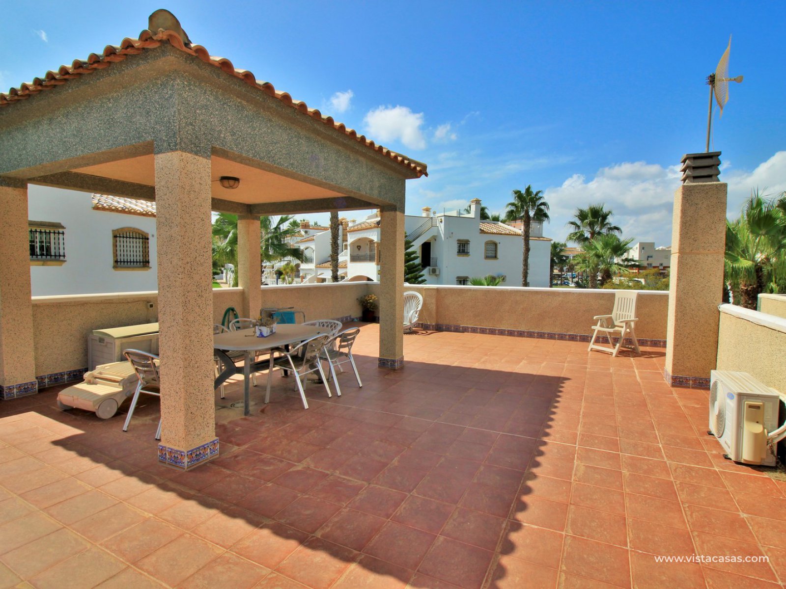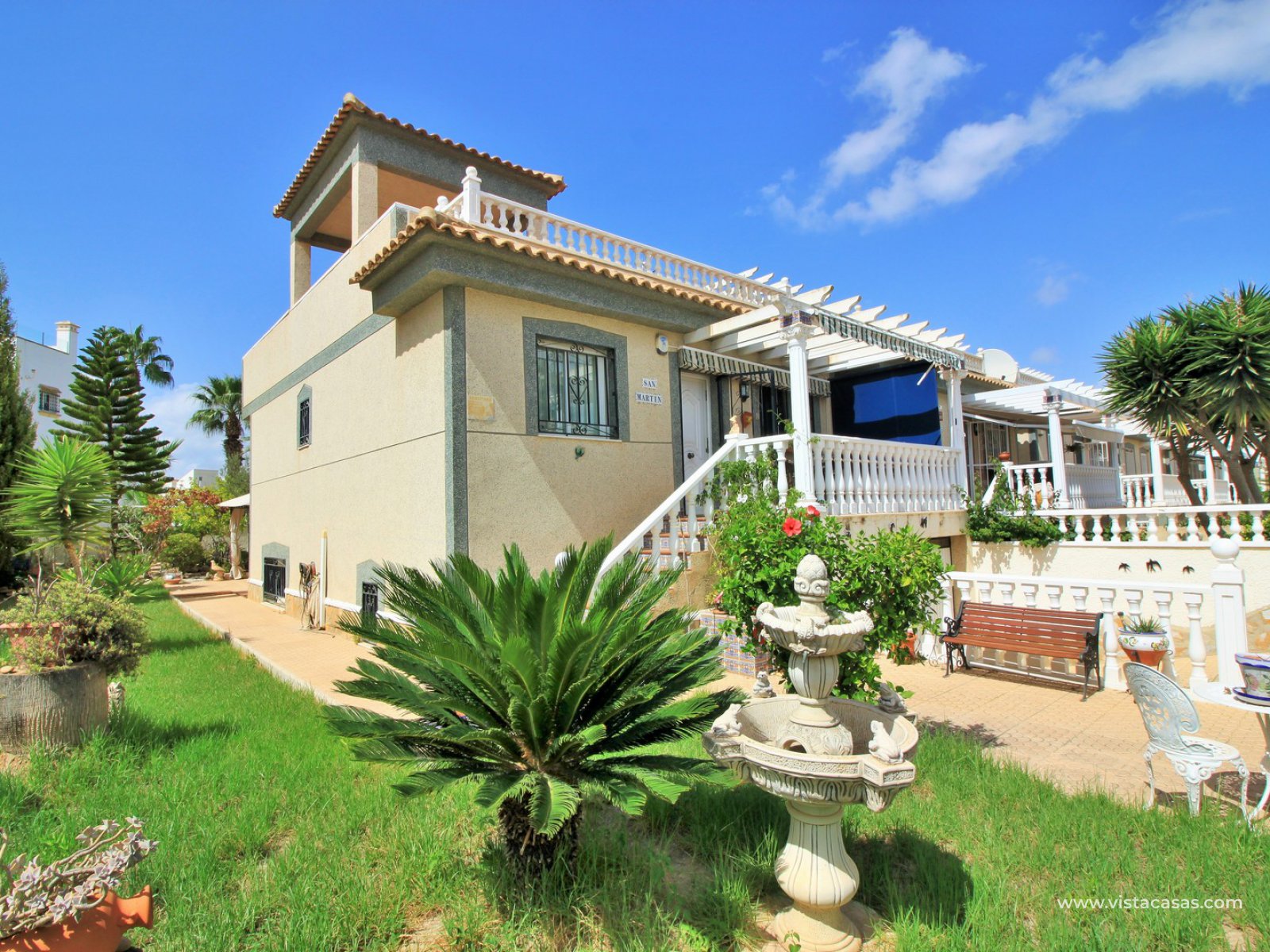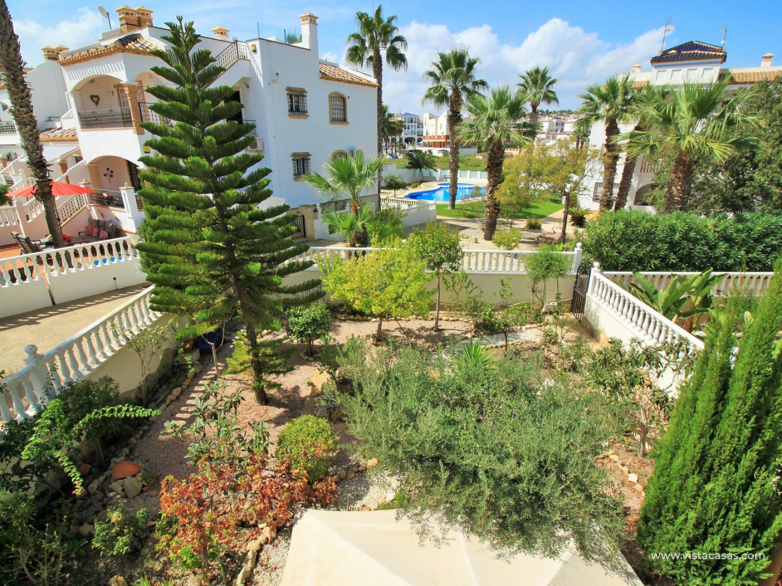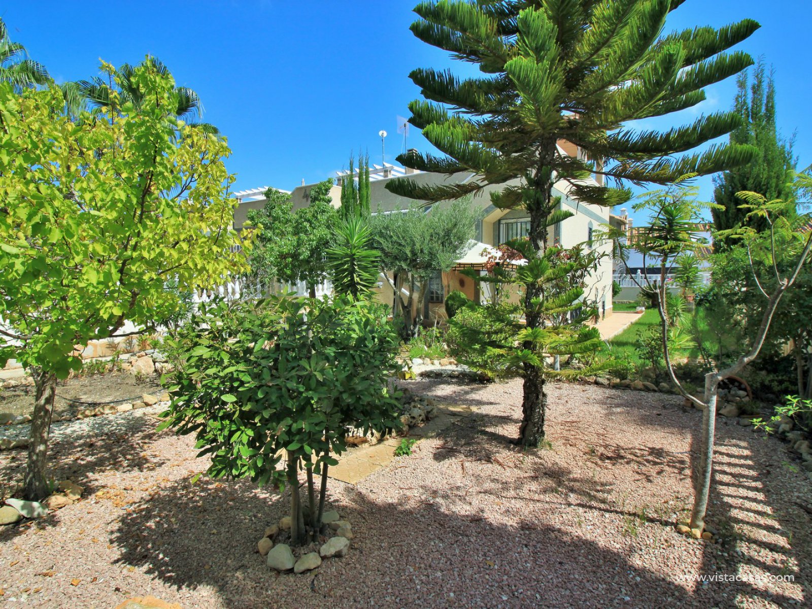 LOCATION, LOCATION! A fantastic and rare opportunity to purchase this 4 bedroom detached villa located in the highly sought-after area of Las Violetas, just 450 metres from an array of services in the Villamartin Plaza and golf course. The property offers the biggest garden in the entire community of Las Serenas with direct access to the communal pool, plus there is a garage.