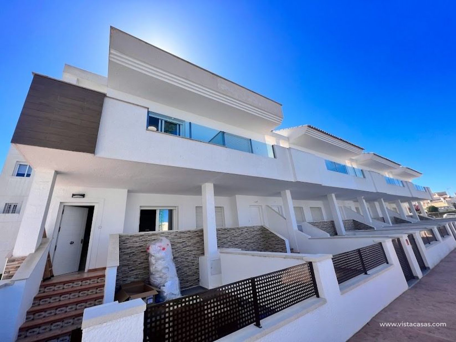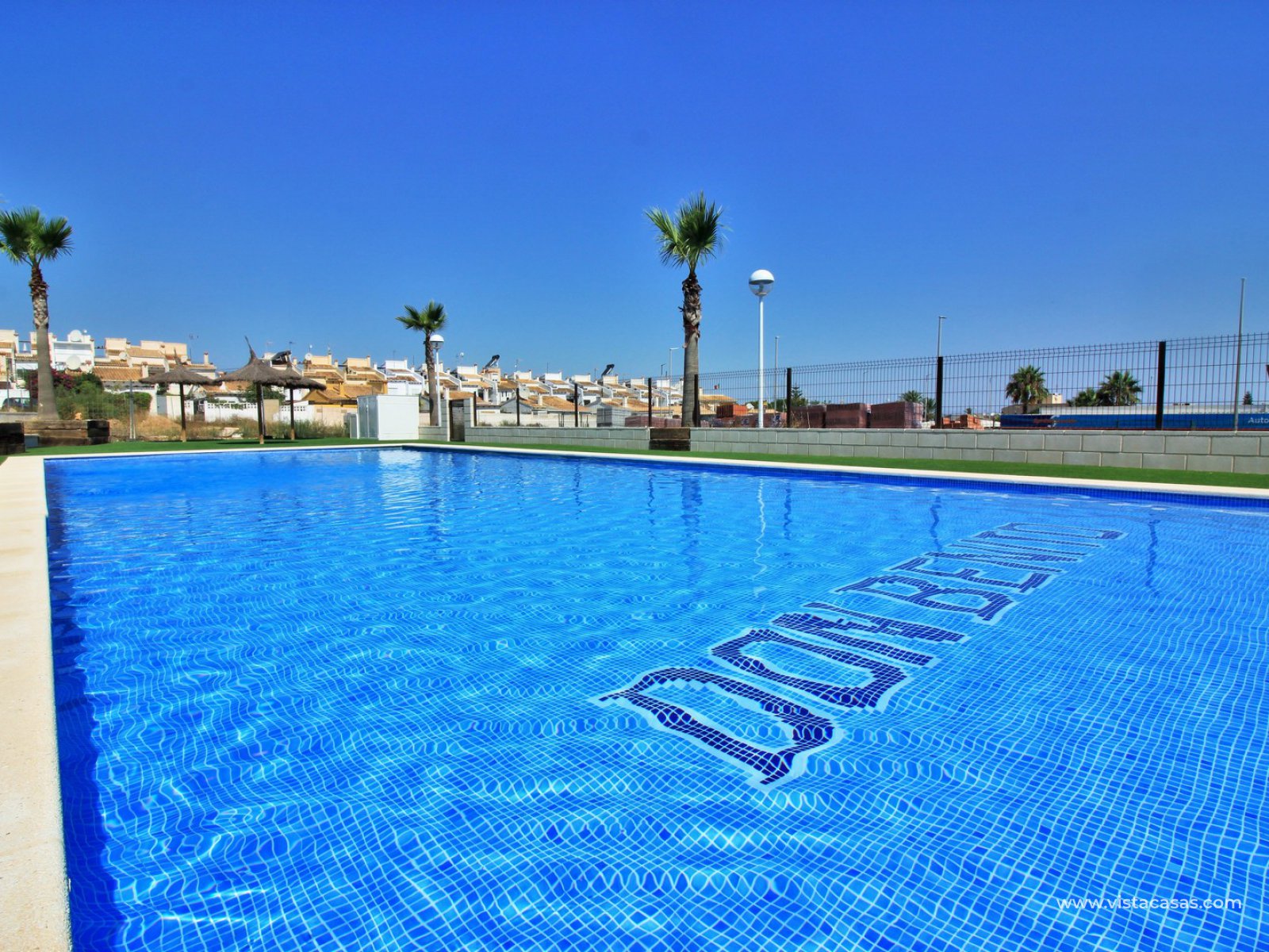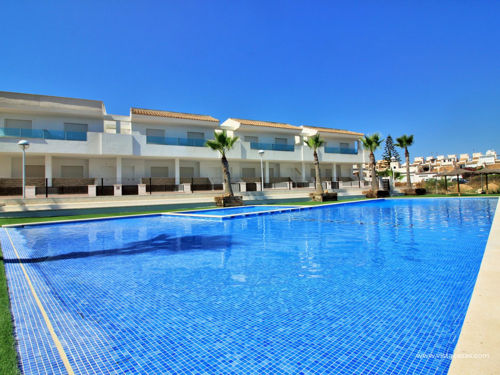 Key ready, as new townhouses for sale in Los Balcones, only 3 kilometres to Torrevieja town centre and 1.5 kms to La Valeta and Mar Azul seafront and the beaches of Playa de los Nafraugos and Punta Prima are a few minutes away. Also close by are the local amenities in Los Balcones and Los Altos and the access to the AP-7 motorway is within a 5 minute drive. From the roof terraces of these properties are views to the mountains and salt lakes of Torrevieja [Laguna Salada de Torrevieja]. The properties comprise of having a lounge and dining area with double doors providing direct access to the communal pool and gardens, a fitted kitchen, 3 bedrooms all with fitted wardrobes, a family bathroom, a guest wash room and two balcony terraces. There is also a communal, secure parking area. The properties come with pre-installation of ducted hot and cold air conditioning and white goods [kitchen appliances]. There is a large communal pool and garden areas.
