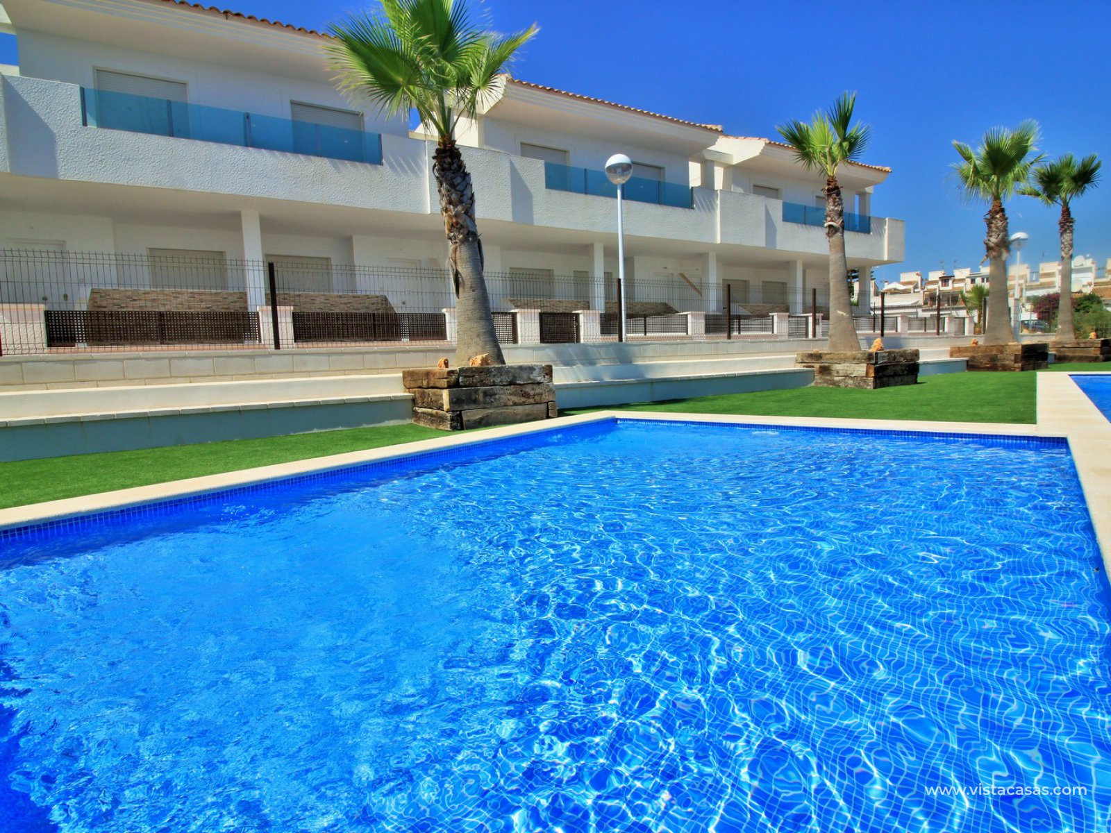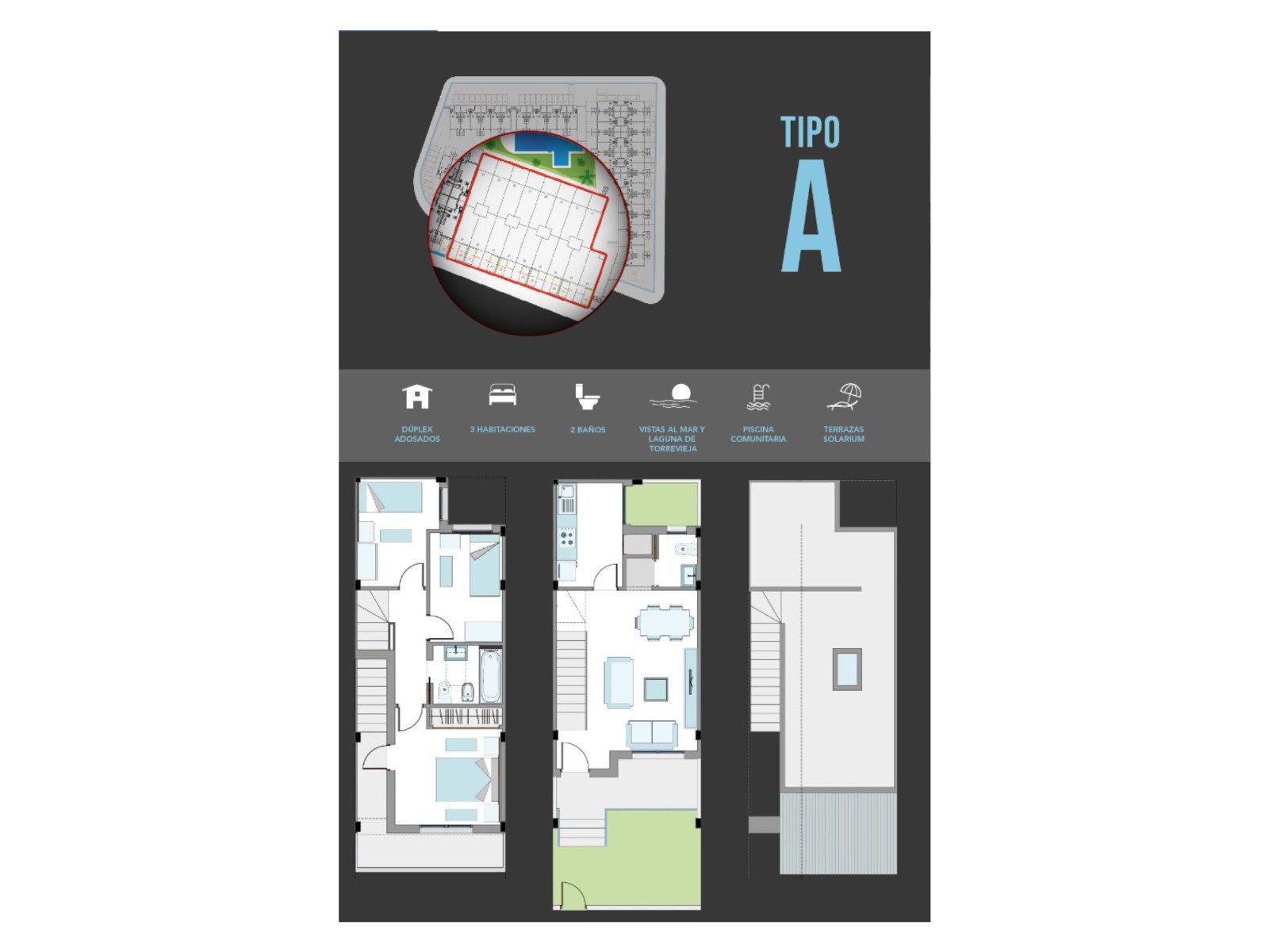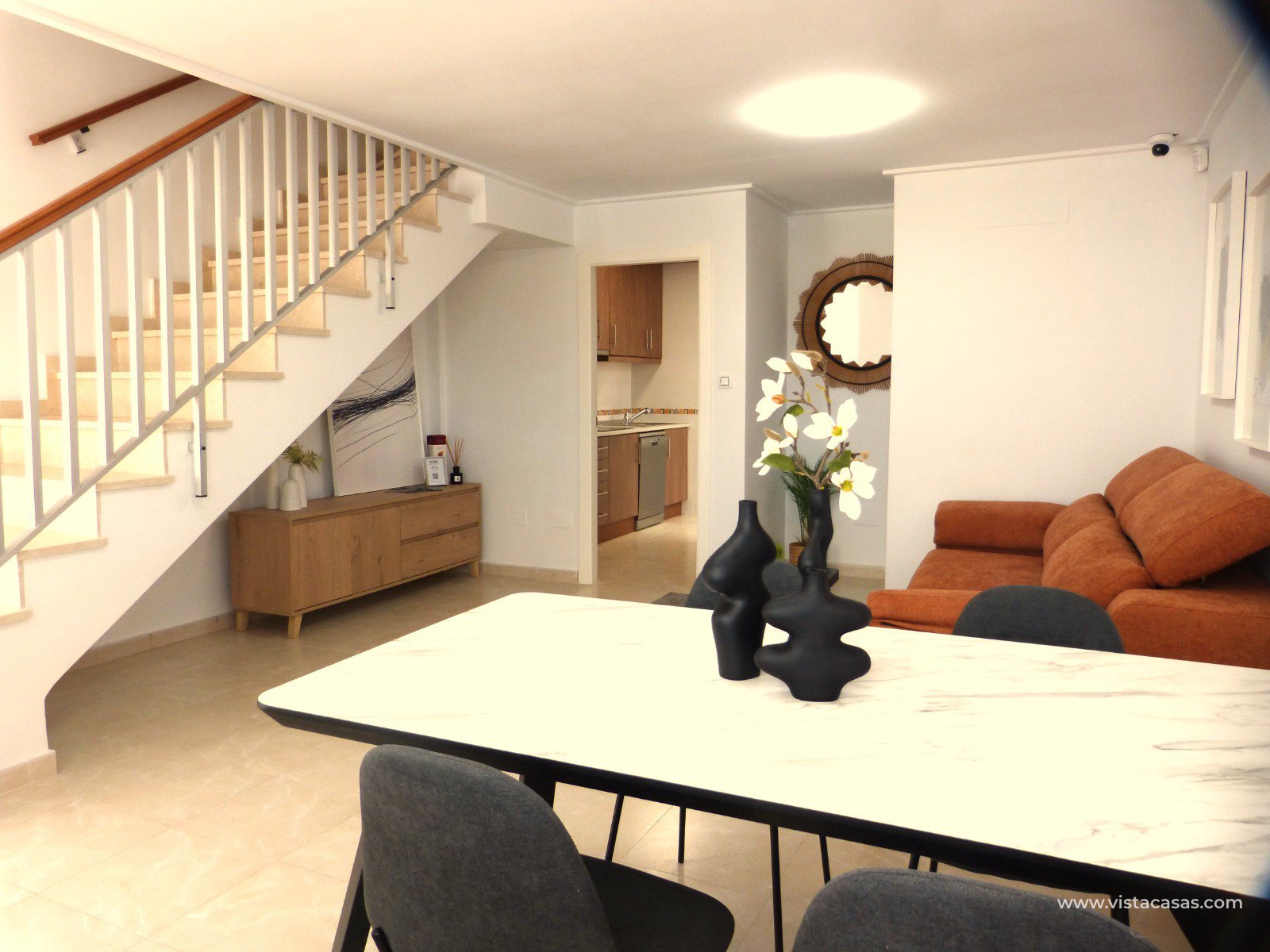 Key ready, as new townhouses for sale in Los Balcones, only 3 kilometres to Torrevieja town centre and 1.5 kms to La Valeta and Mar Azul seafront and the beaches of Playa de los Nafraugos and Punta Prima are a few minutes away. Also close by are the local amenities in Los Balcones and Los Altos and the access to the AP-7 motorway is within a 5 minute drive. From the roof terraces of these properties are views to the mountains and salt lakes of Torrevieja [Laguna Salada de Torrevieja]. The properties comprise of having a lounge and dining area with double doors providing direct access to the communal pool and gardens, a fitted kitchen, 3 bedrooms all with fitted wardrobes, a family bathroom, a guest wash room and two balcony terraces. There is also a communal, secure parking area. The properties come with pre-installation of ducted hot and cold air conditioning and white goods [kitchen appliances]. There is a large communal pool and garden areas.