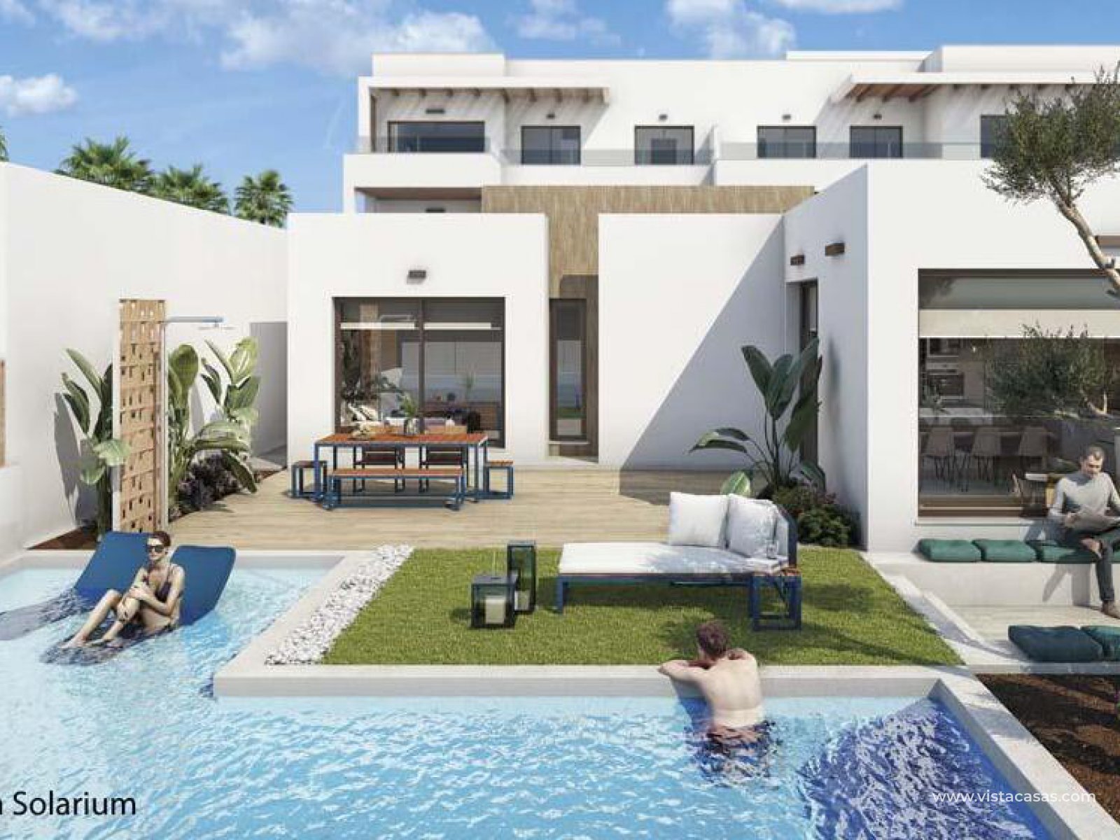 Frontline golf, new build villas in the La Serena Golf resort, in Los Alcazares. The resort includes an 18-hole golf course, as well as the Club House, with a pro-shop, a restaurant, and a terrace bar with views of the golf course and the Mar Menor. The town of Los Alcazares has all amenities, supermarkets, bars and restaurants, banks and pharmacies, schools, and a medical centre. The area also offers a variety of outdoor activities like golf, cycling, and mountain biking, as well as sailing or scuba diving at the beautiful Mar Menor beaches. Corvera, Murcia airport is only 30 minutes away and access to the AP7 motorway just a few minutes away means you can reach the historic and beautiful city of Cartagena in 25 minutes and Alicante in an hour.