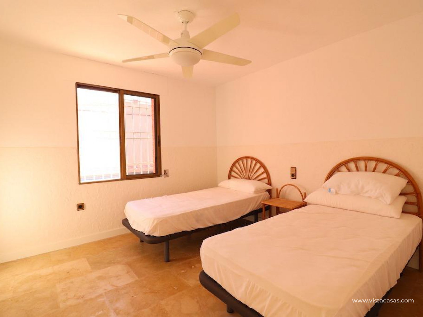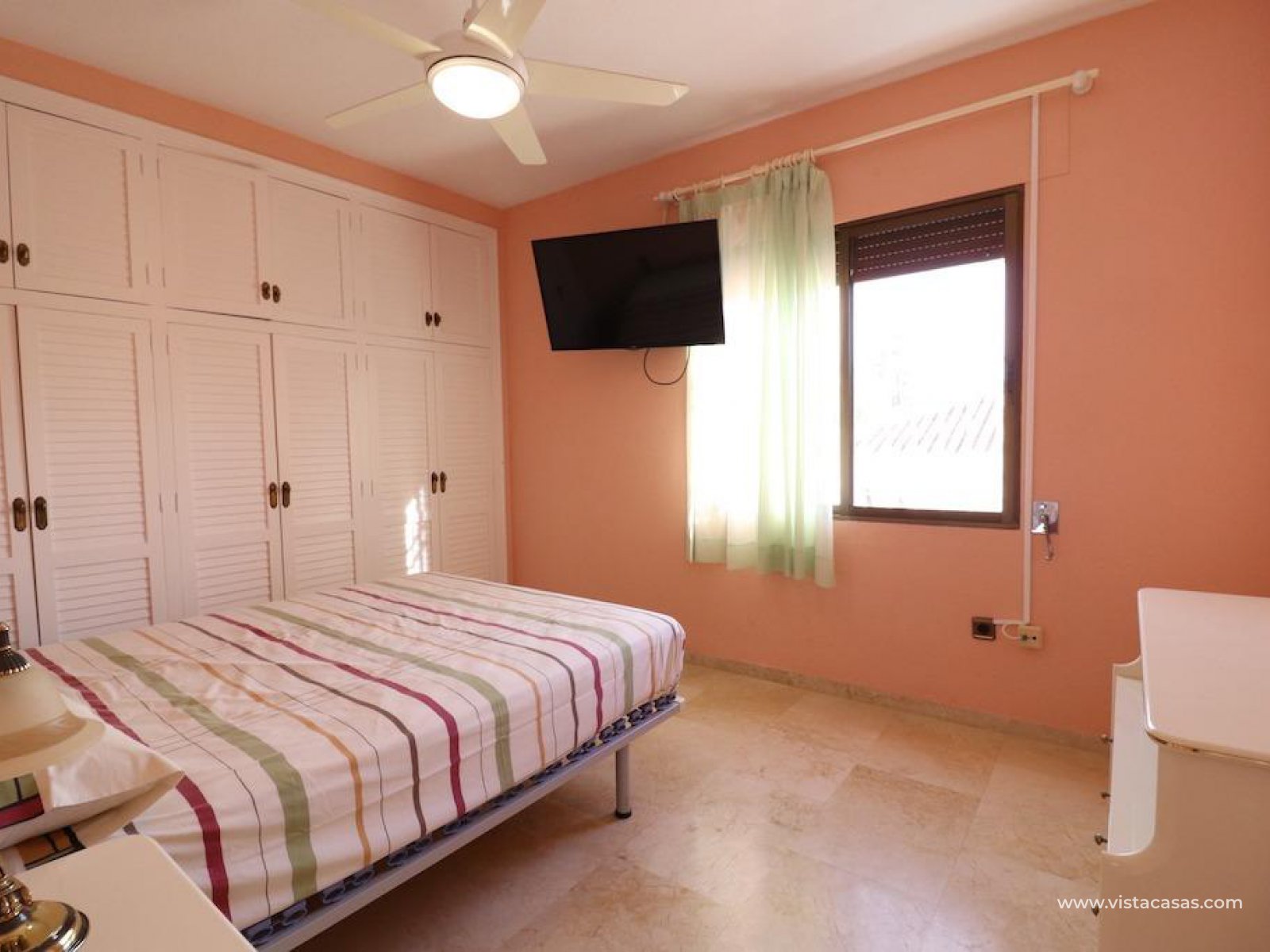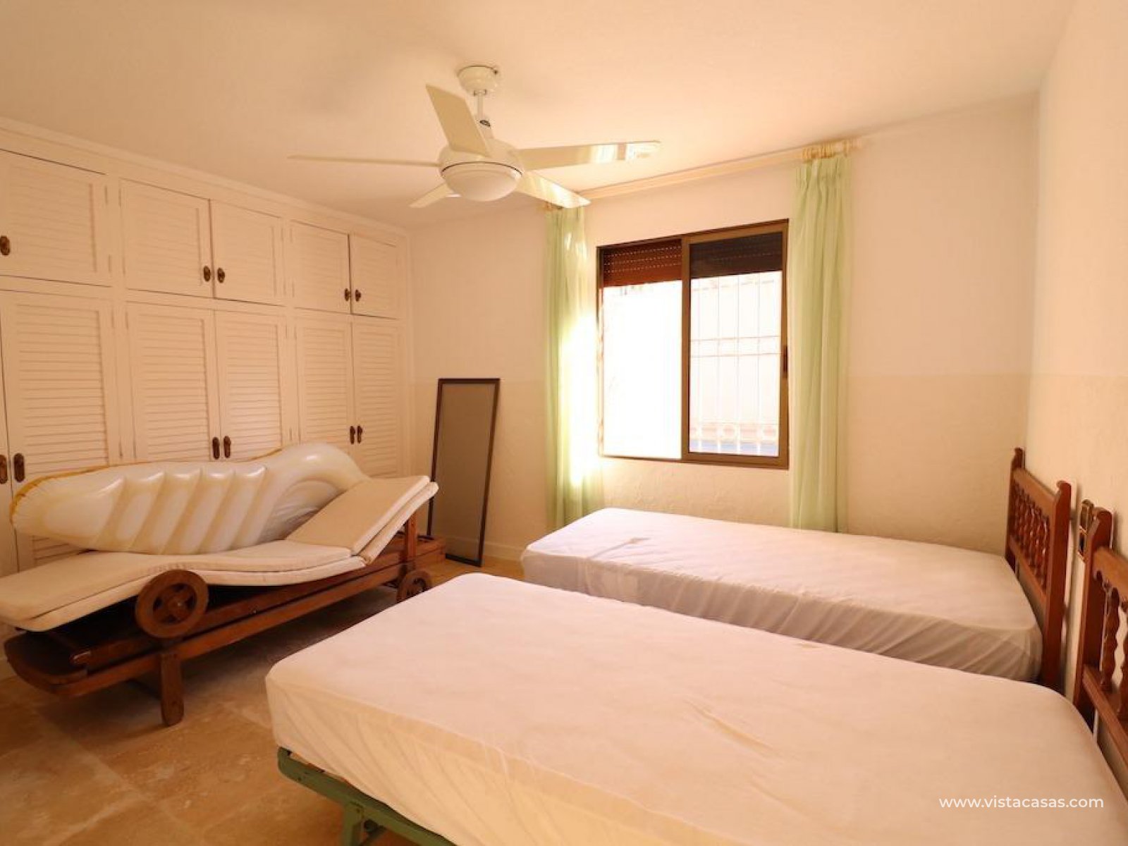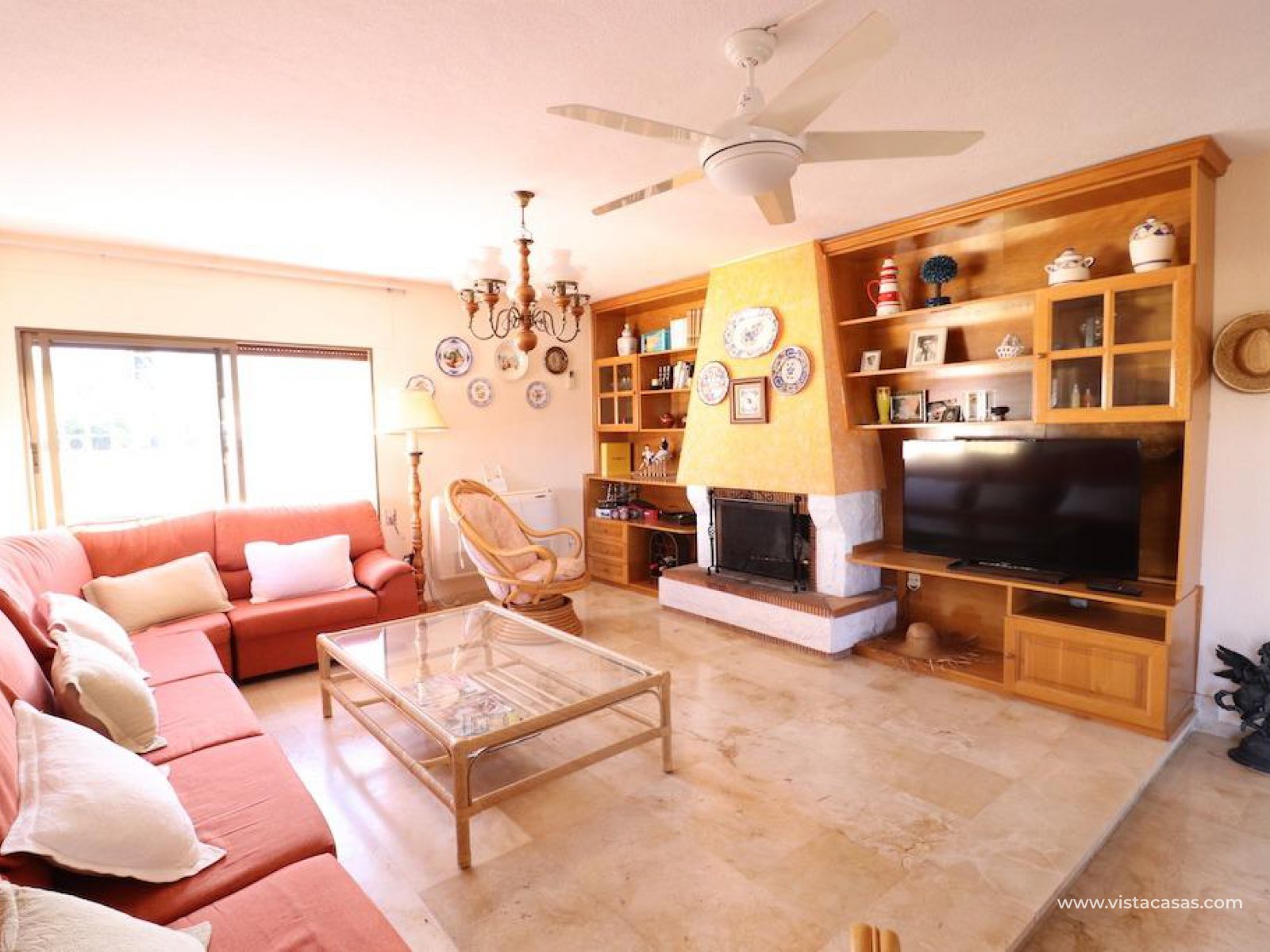 Cabo Roig, Detached villa on the corner of two streets with a 522 m2 plot and south-east orientation, and just 300 meters from Capitan beach, with a two-story house of 276 m2, the house has 5 bedrooms, 2 full bathrooms, 60m2 living room with fireplace, large independent kitchen, 8x3 pool with a barbecue area, large terrace in front of the house, sold furnished and with air conditioning and heating. Garage for 2 cars with pergola.