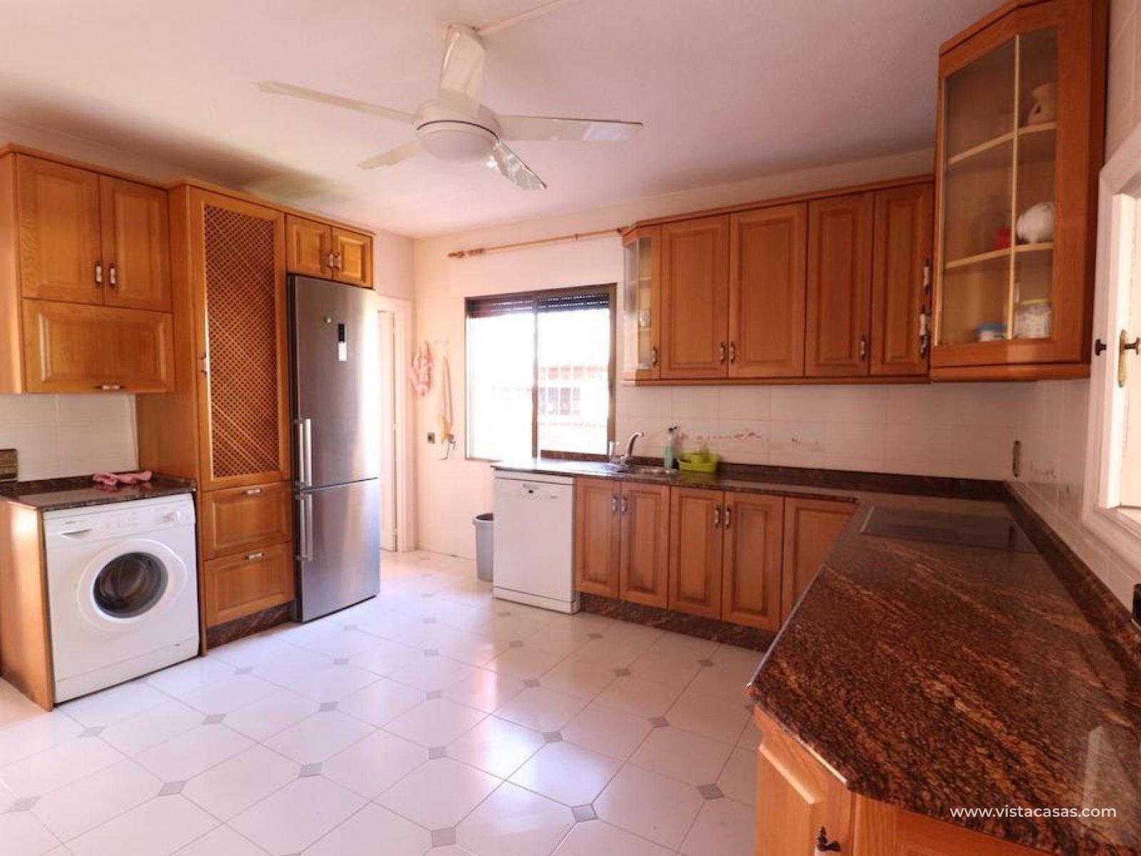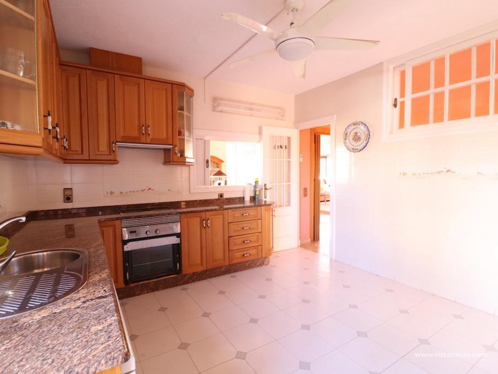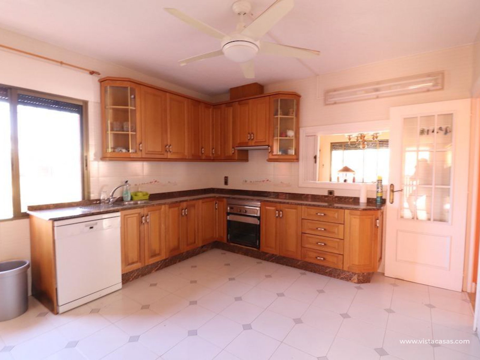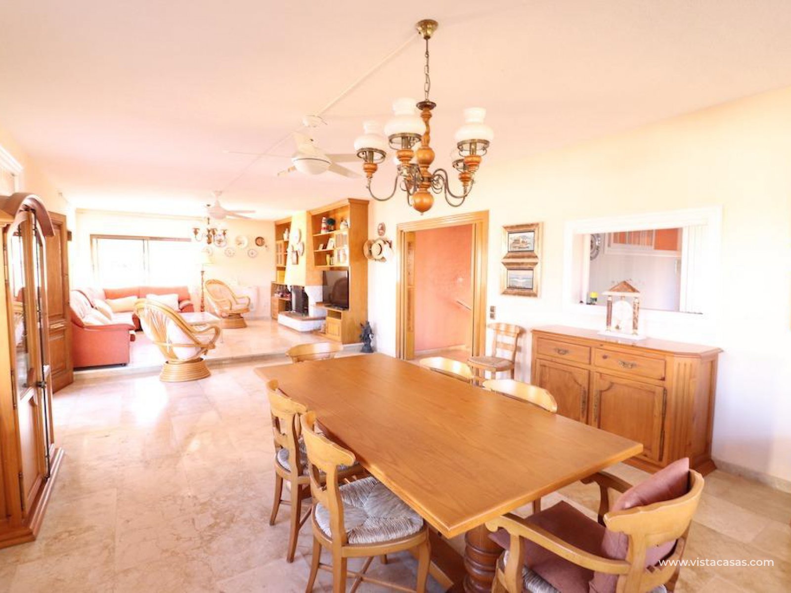 Cabo Roig, Detached villa on the corner of two streets with a 522 m2 plot and south-east orientation, and just 300 meters from Capitan beach, with a two-story house of 276 m2, the house has 5 bedrooms, 2 full bathrooms, 60m2 living room with fireplace, large independent kitchen, 8x3 pool with a barbecue area, large terrace in front of the house, sold furnished and with air conditioning and heating. Garage for 2 cars with pergola.