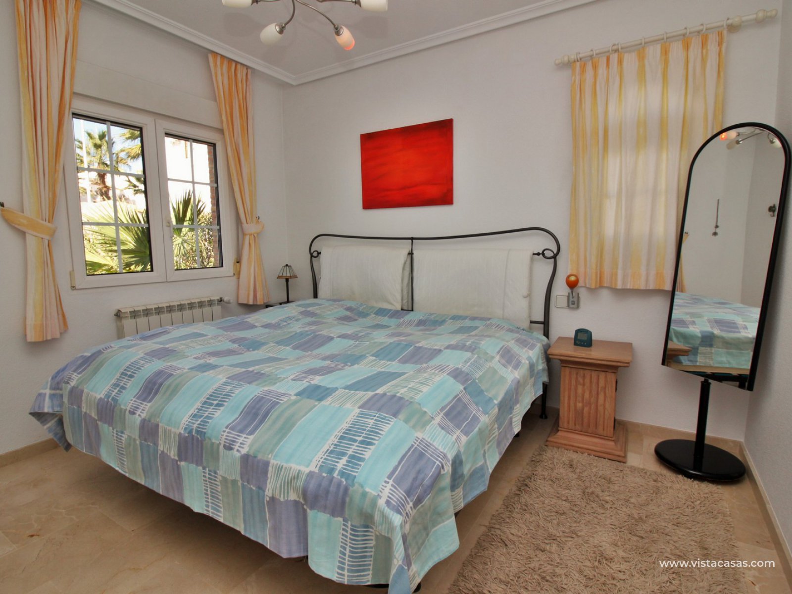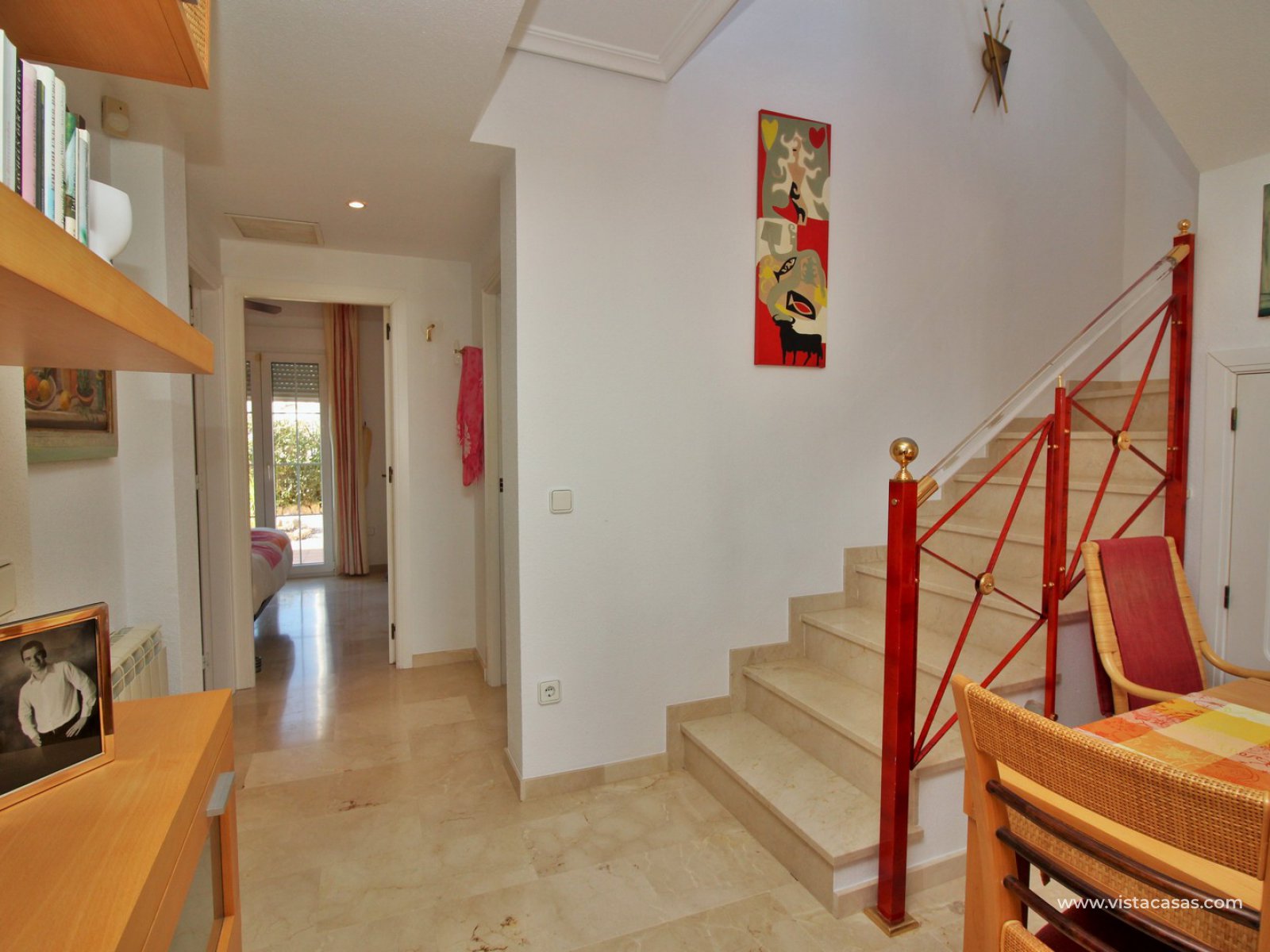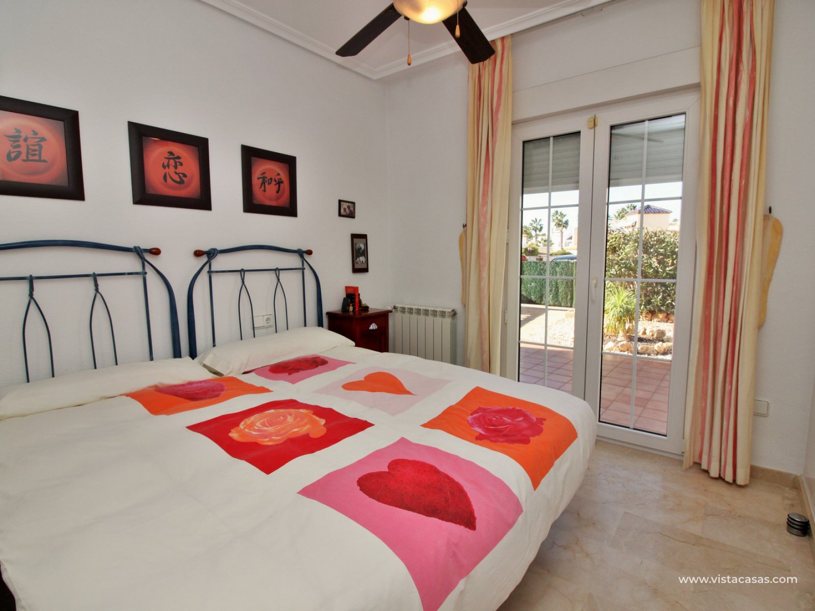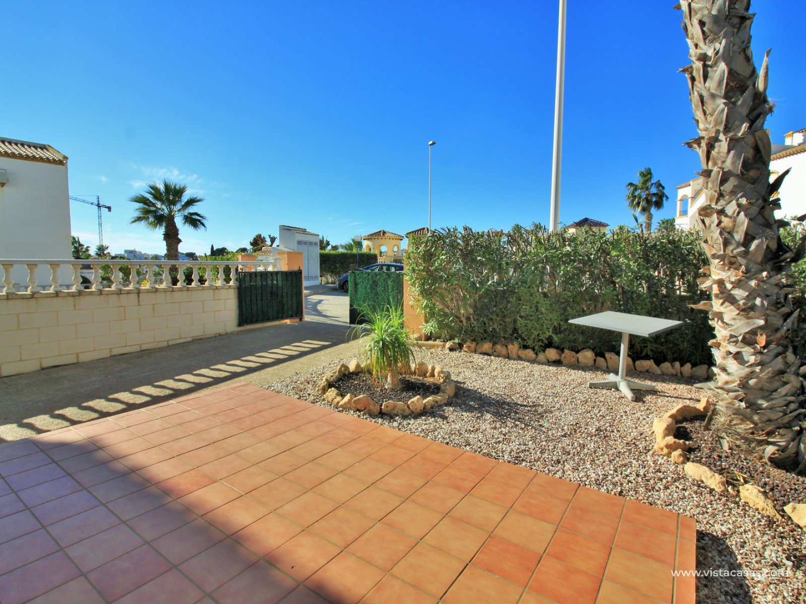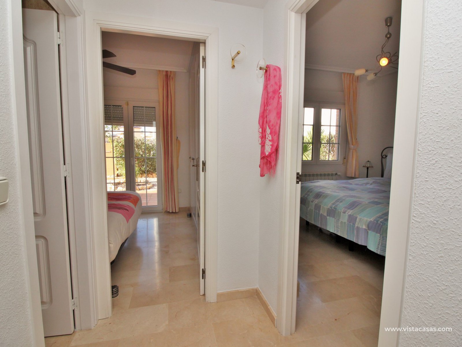 The living accommodation on the ground floor comprises of a bright and open lounge-dining area with fully equipped kitchen with utility area to the side, 2 double bedrooms with fitted wardrobes, and a family bathroom. From the lounge, French doors leads out to the raised terrace offering views of the sea. Upstairs is the good sized master bedroom with fitted wardrobes and en-suite bathroom with walk-in shower. There is a large roof solarium, offering great sea views accessible from the master bedroom and landing. The pool area offers plenty of space for sunbathing, plus a BBQ/dining area. There is also central heating throughout the property. R15 is a well kept community which also offers all homeowners use of a communal pool.
