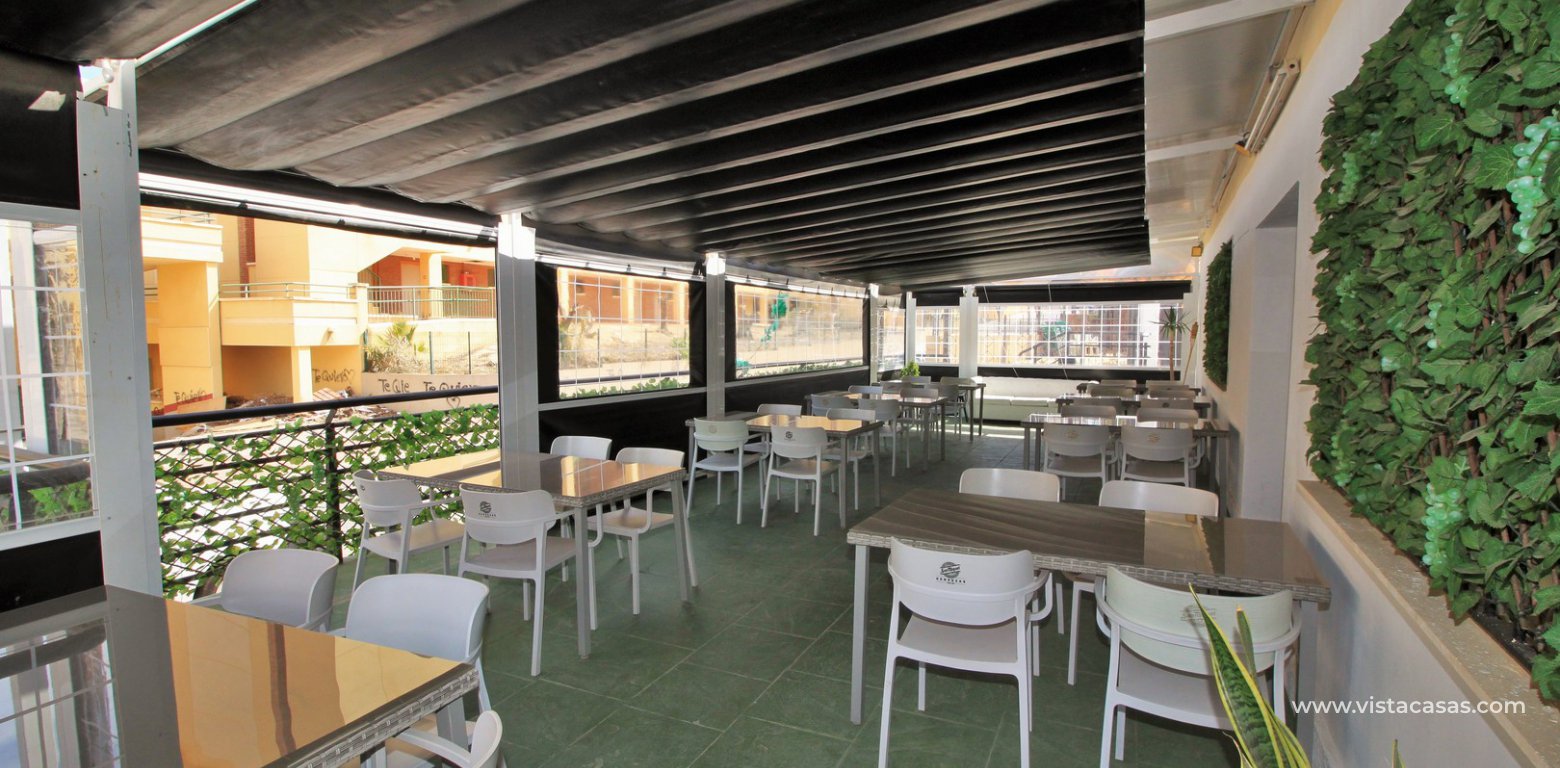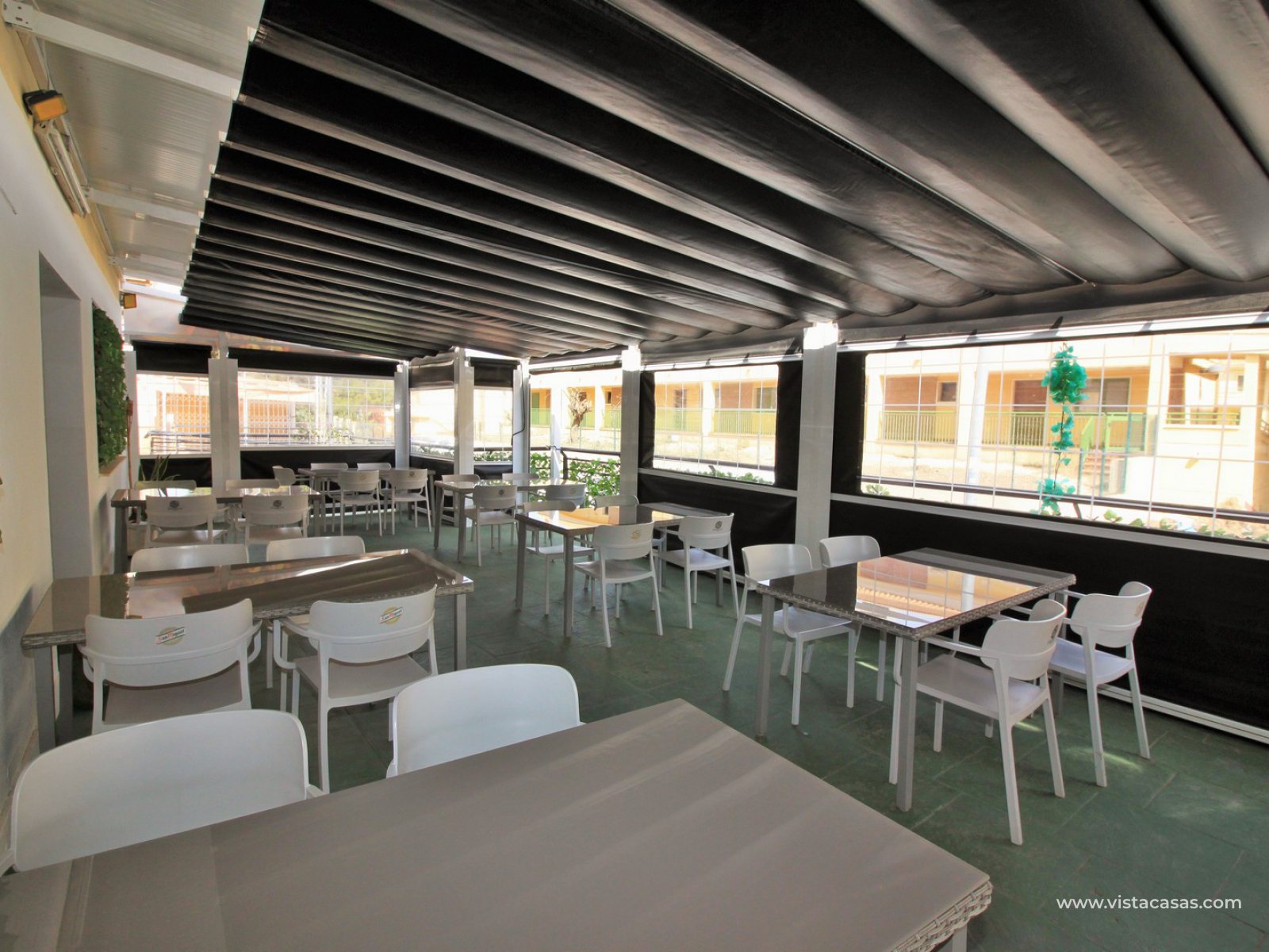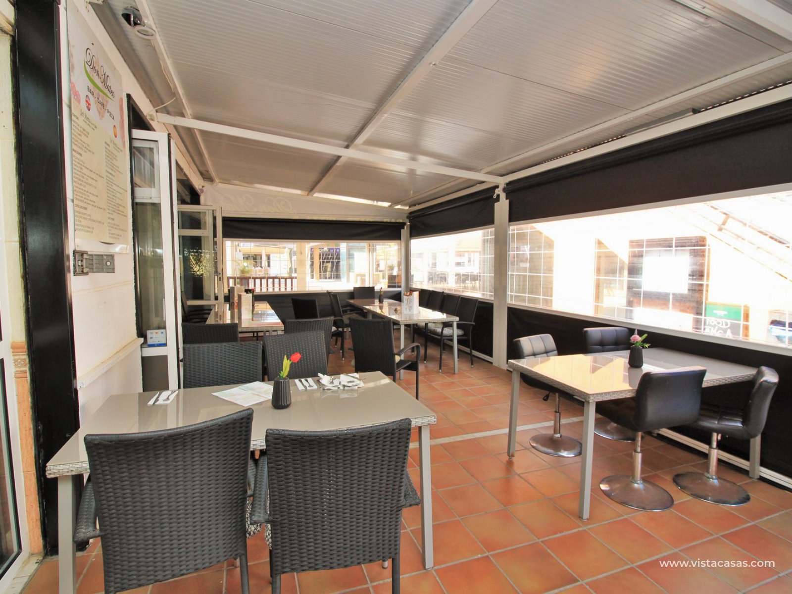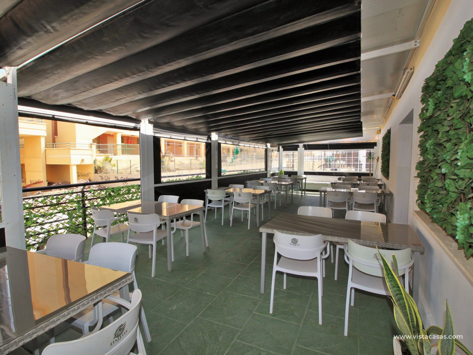 Great opportunity to purchase the leasehold of a corner unit in the popular Filton commercial centre in Los Balcones. The unit is located on the ground floor and has use of 2 large terraces with an inside dining area, bar, restrooms and fully equipped kitchen and storage area. Located next to many thriving urbanisations with lots of permanent residents. The price includes all fixtures, fittings, furniture and a fully equipped kitchen. A business that you can take over and start straight away.
