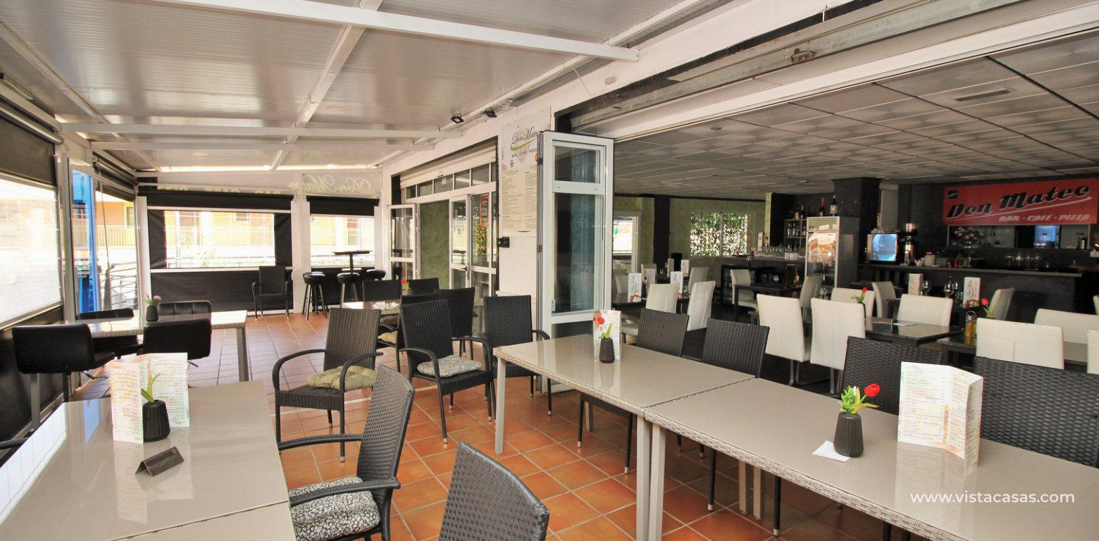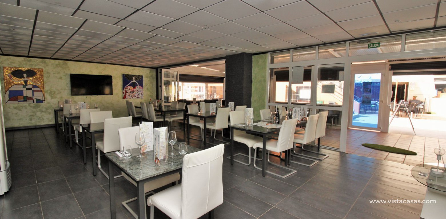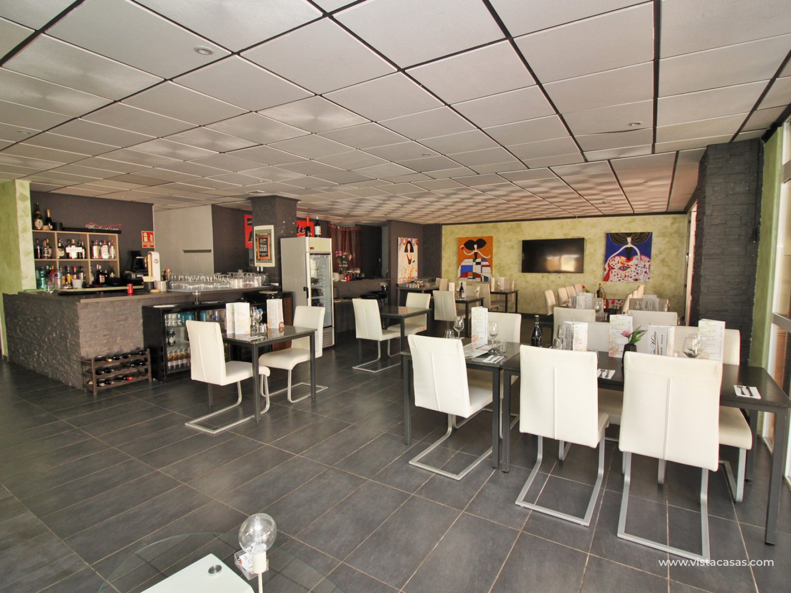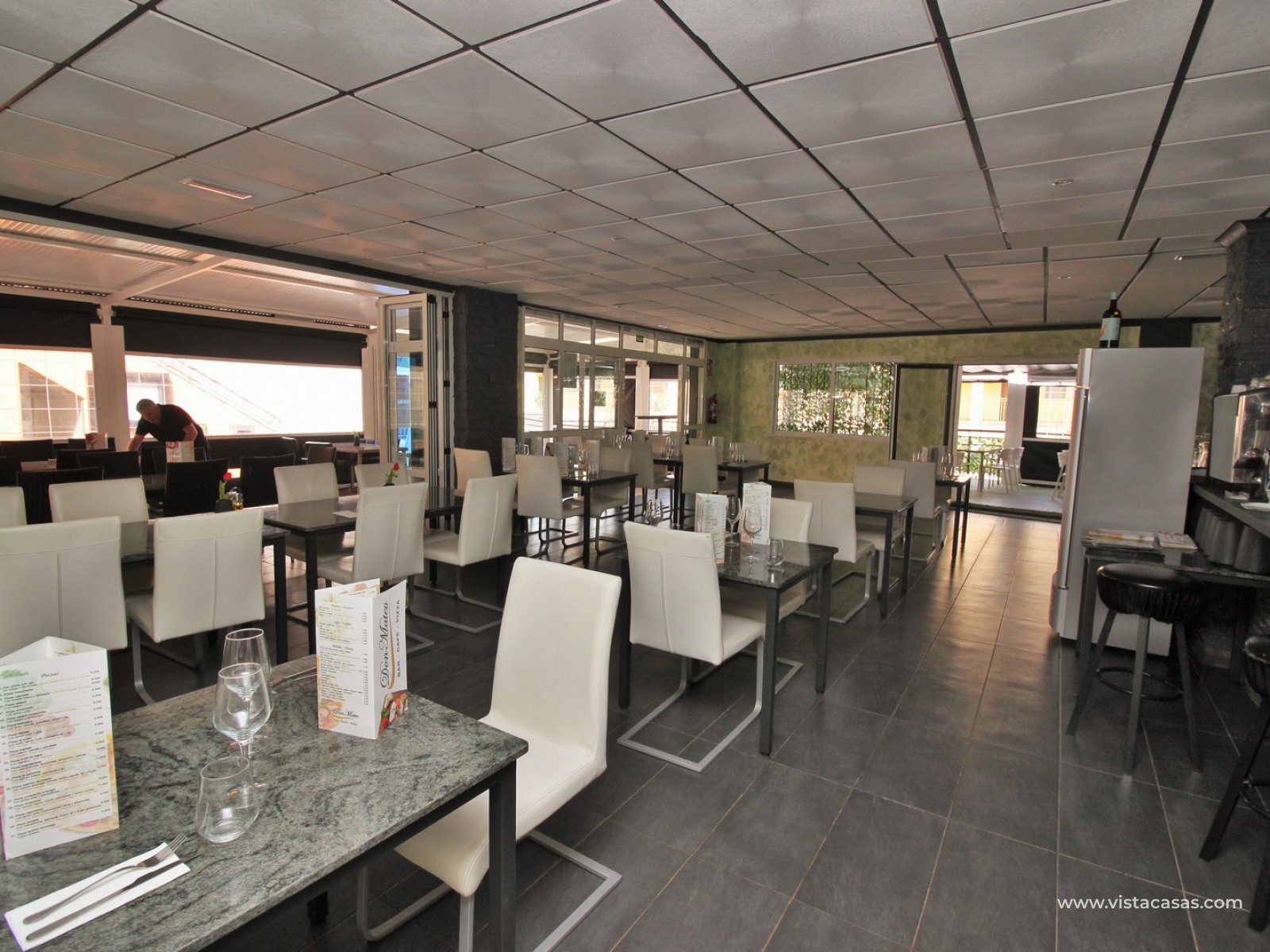 Great opportunity to purchase the leasehold of a corner unit in the popular Filton commercial centre in Los Balcones. The unit is located on the ground floor and has use of 2 large terraces with an inside dining area, bar, restrooms and fully equipped kitchen and storage area. Located next to many thriving urbanisations with lots of permanent residents. The price includes all fixtures, fittings, furniture and a fully equipped kitchen. A business that you can take over and start straight away.