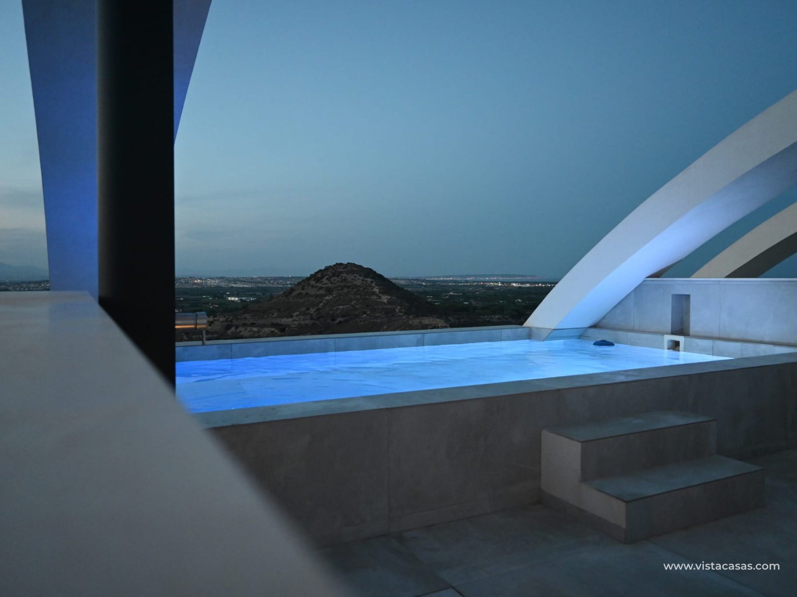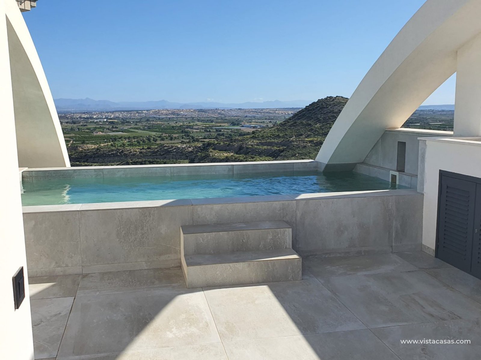 In a very quiet area in Rojales, this beautiful penthouse flat with fantastic views is for sale. Upon entering, you immediately discover the flat's beautiful design. It comprises a living and dining room with an adjoining fully equipped open-plan kitchen, with direct access to the terrace where you can enjoy snacks and drinks in the Spanish open air. Furthermore, this flat has 3 bedrooms and 2 bathrooms, a spacious roof terrace with private pool where you can enjoy some cooling down with fantastic views. There is also a communal swimming pool, jacuzzi, sauna and gym(still under construction). The flat is sold partially furnished. In the vicinity there are several bars, restaurants and supermarkets. In short, this flat is very suitable to live there permanently or to use for holidays and for rental. If you would like more information or would like a viewing, please feel free to contact us. Don't let this unique opportunity go to waste. Year of construction: 2021 SUMA: €226.17
