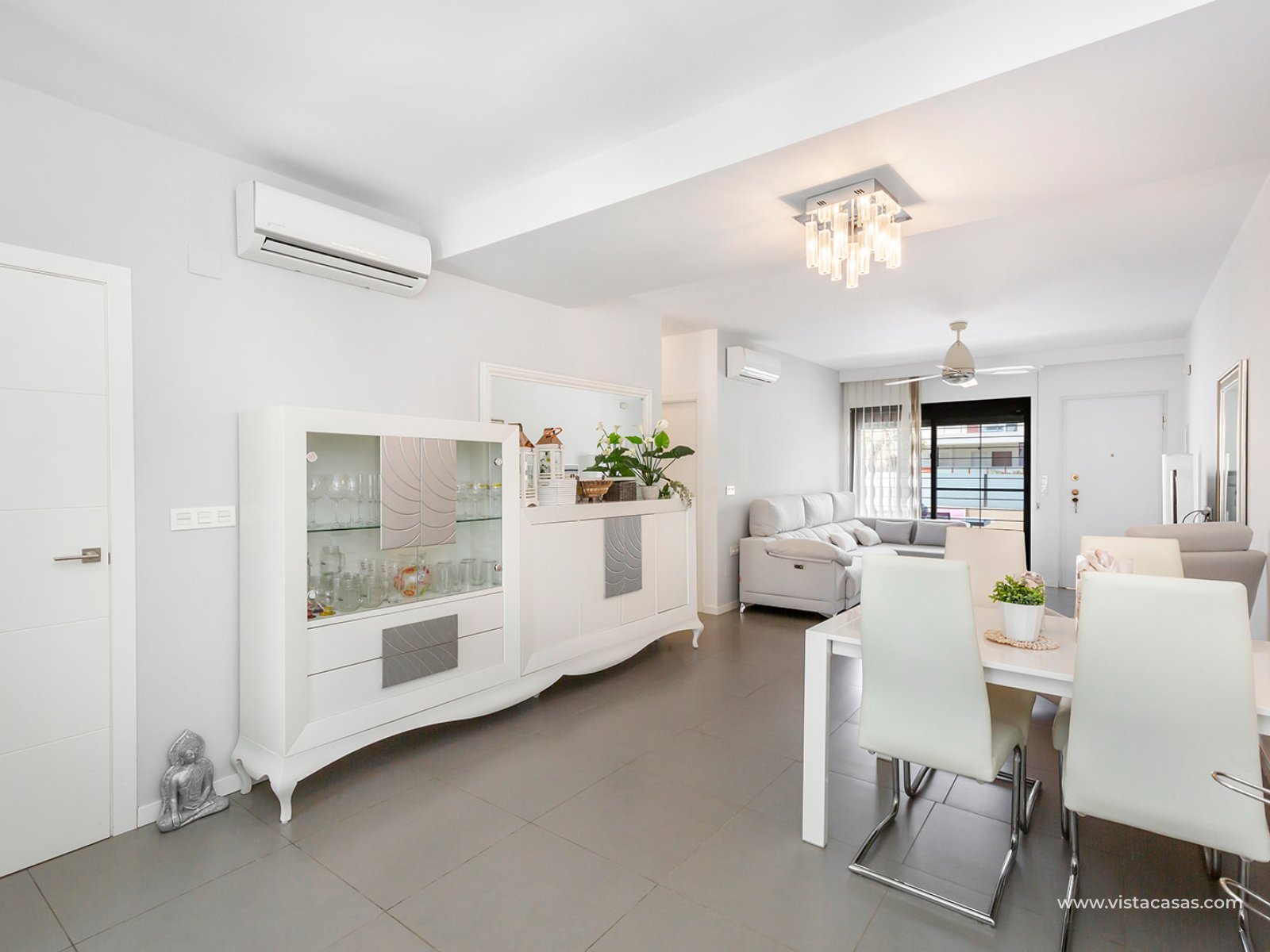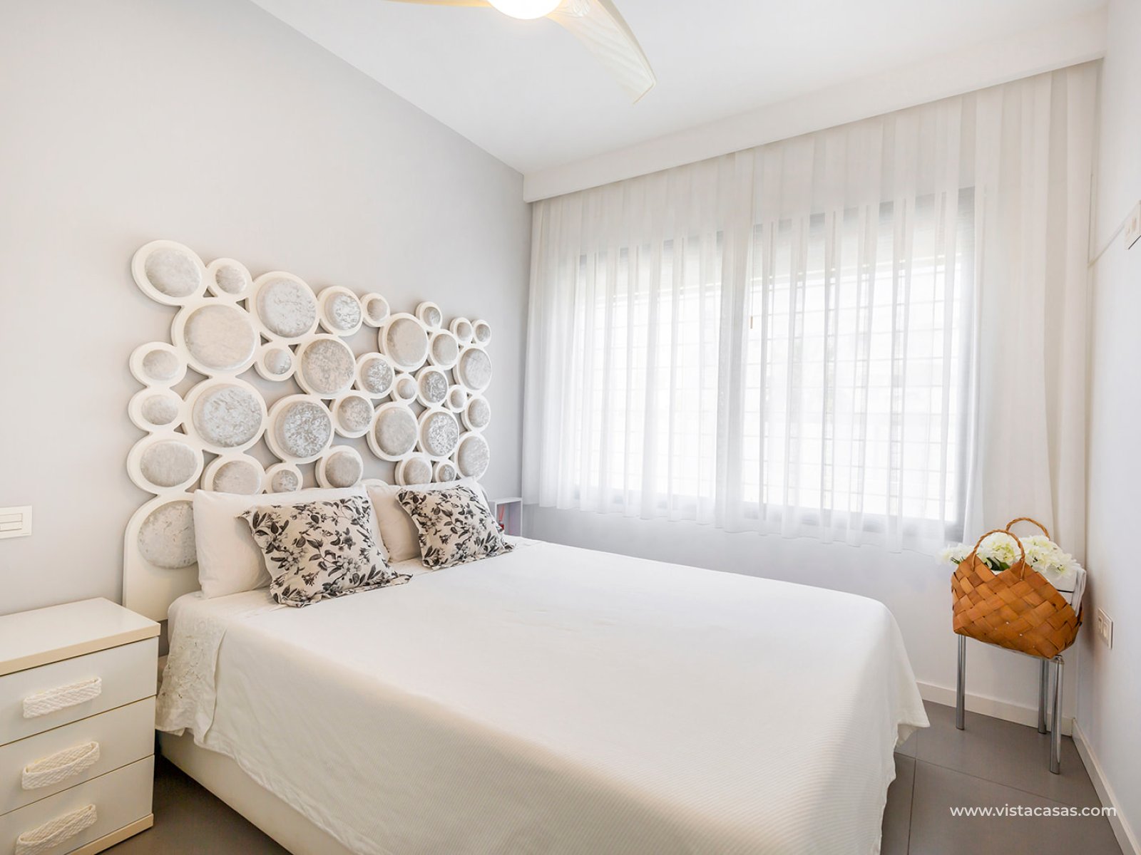 Spacious ground floor bungalow in Torre de la Horadada. This modern south facing property has 4 bedrooms, 3 bathrooms, a spacious living-dining room with open plan kitchen and direct access to the terrace and garden of 120m2. It is located in the complex where you can enjoy communal pool and garden areas. Torre de la Horadada is a prestigious area of the Costa Blanca, very close to Mil Palmeras, Campoamor, San Pedro del Pintar and Orihuela Costa. The famous salt lagoons of San Pedro del Pinatar and the Thalasia marine spa centre can be reached in only 10 minutes. Pilar De La Horadada, enjoys more than 2500 hours of sunshine a year and an average temperature of 18ºC, which makes it a privileged area. It has a wide range of services, green areas, promenades and a marina. Just 5 minutes from the shopping centres La Zenia Boulevard and Dos Mares. In addition to these magnificent weather conditions, there are sandy beaches such as Playa Jesuitas, Playa del Puerto and Playa de las Higuericas. Well communicated with the national road N-332 and the Mediterranean motorway AP-7. Close to major cities such as Murcia and Alicante.