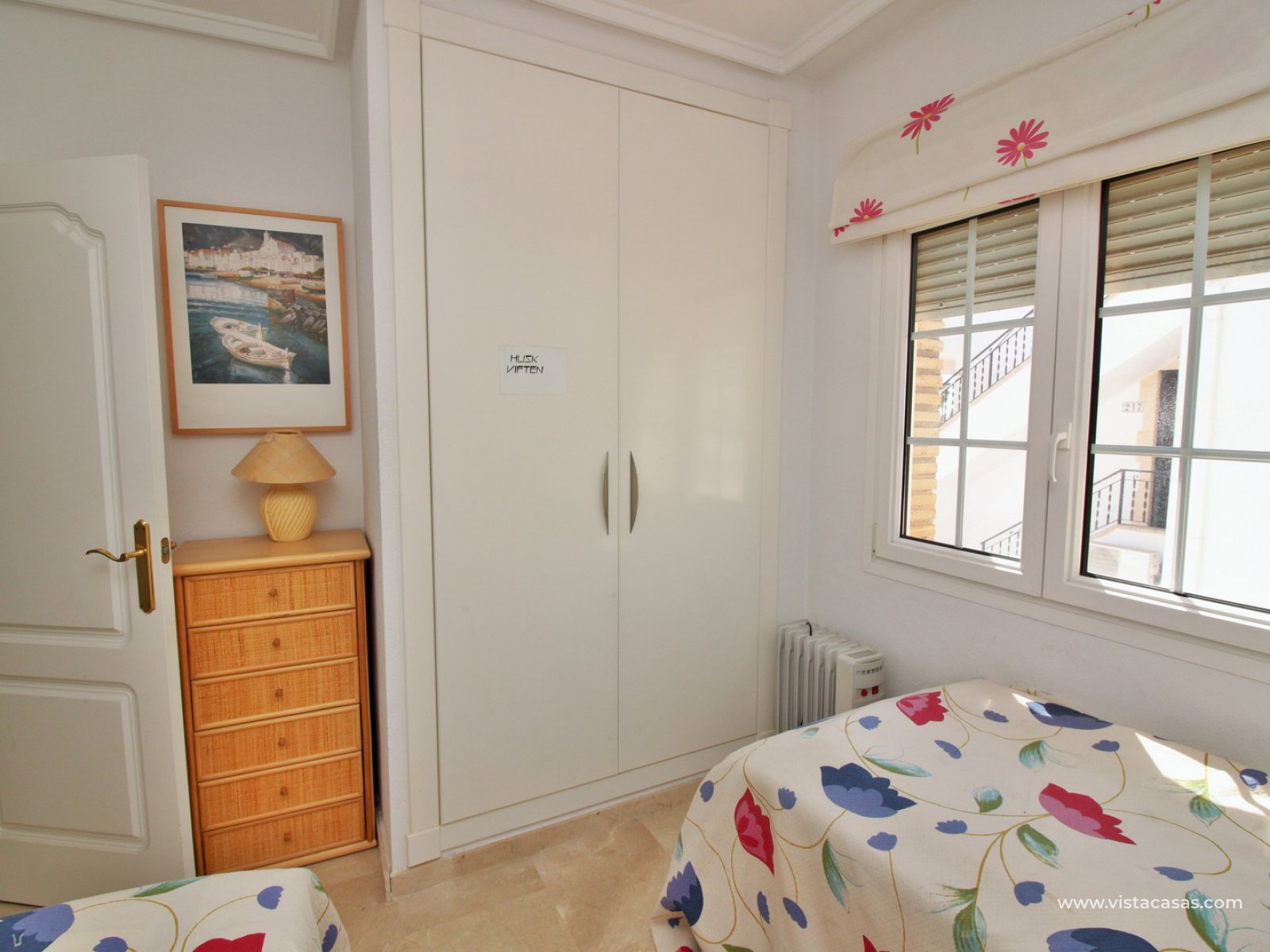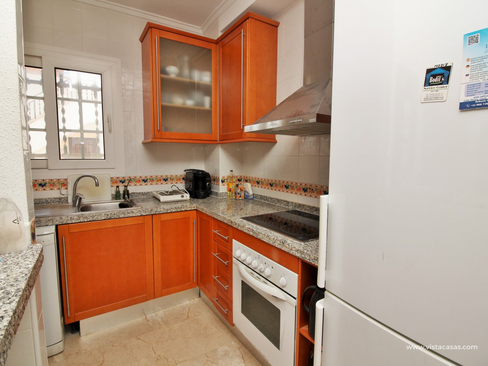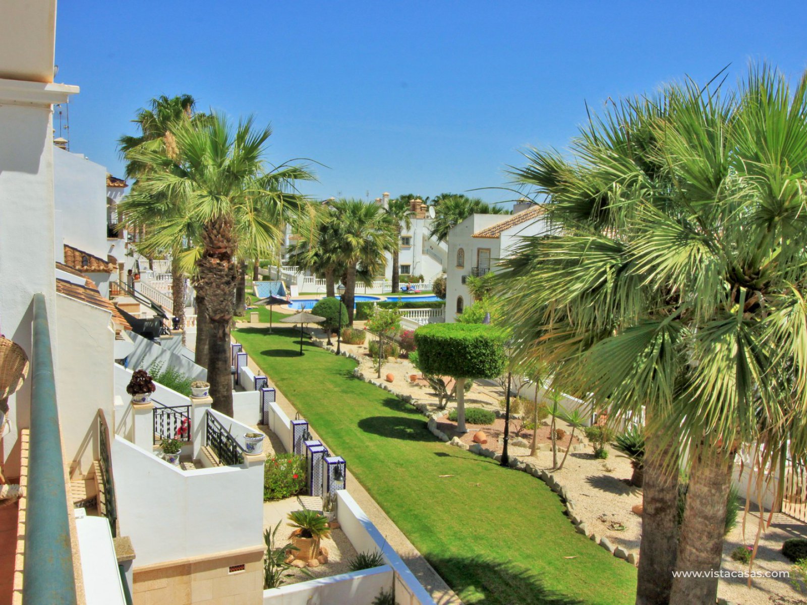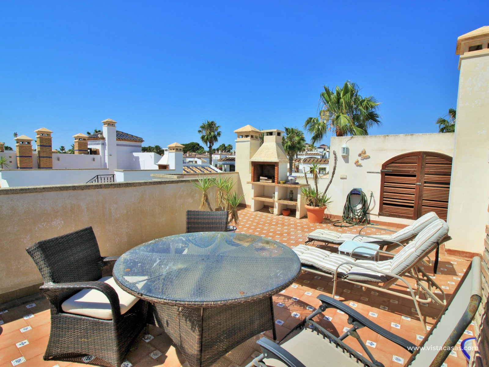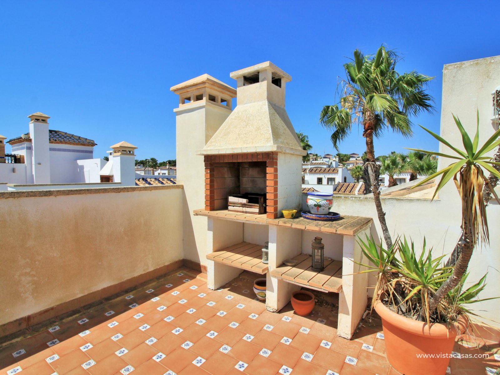 LOCATION, LOCATION! 2 bedroom, 2 bathroom top floor apartment in the highly sought-after area of R3, Las Violetas in Villamartin. The apartment is sold fully equipped with furniture and offers amazing sea views, and great outdoor space including a private garden, covered balcony, and large roof solarium with brick built BBQ and storage cupboard.