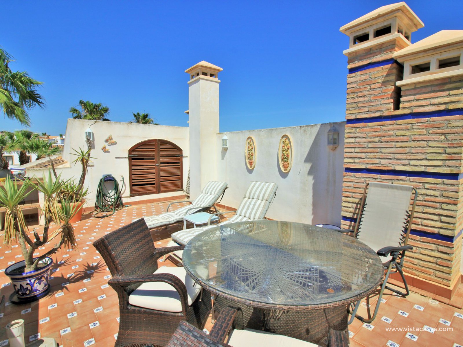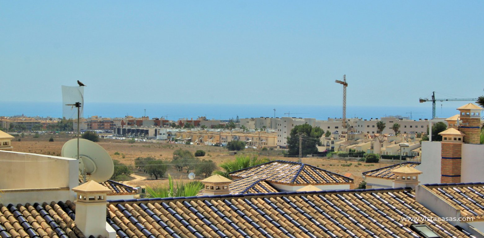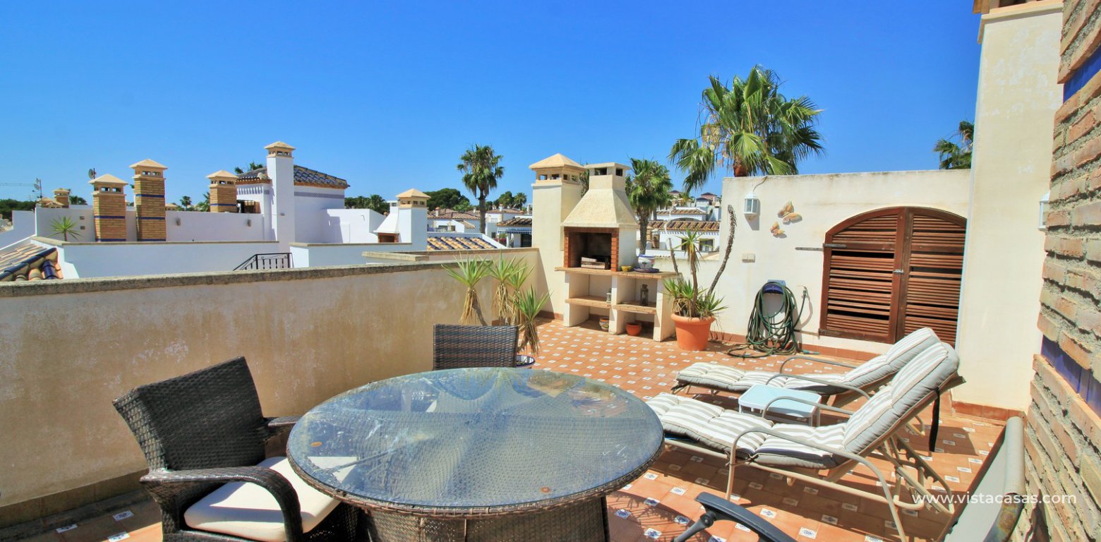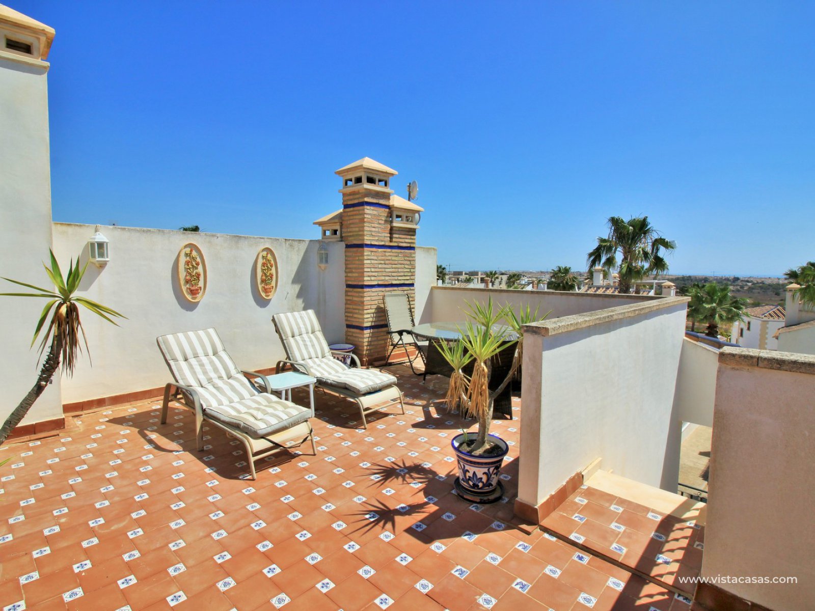 LOCATION, LOCATION! 2 bedroom, 2 bathroom top floor apartment in the highly sought-after area of R3, Las Violetas in Villamartin. The apartment is sold fully equipped with furniture and offers amazing sea views, and great outdoor space including a private garden, covered balcony, and large roof solarium with brick built BBQ and storage cupboard.