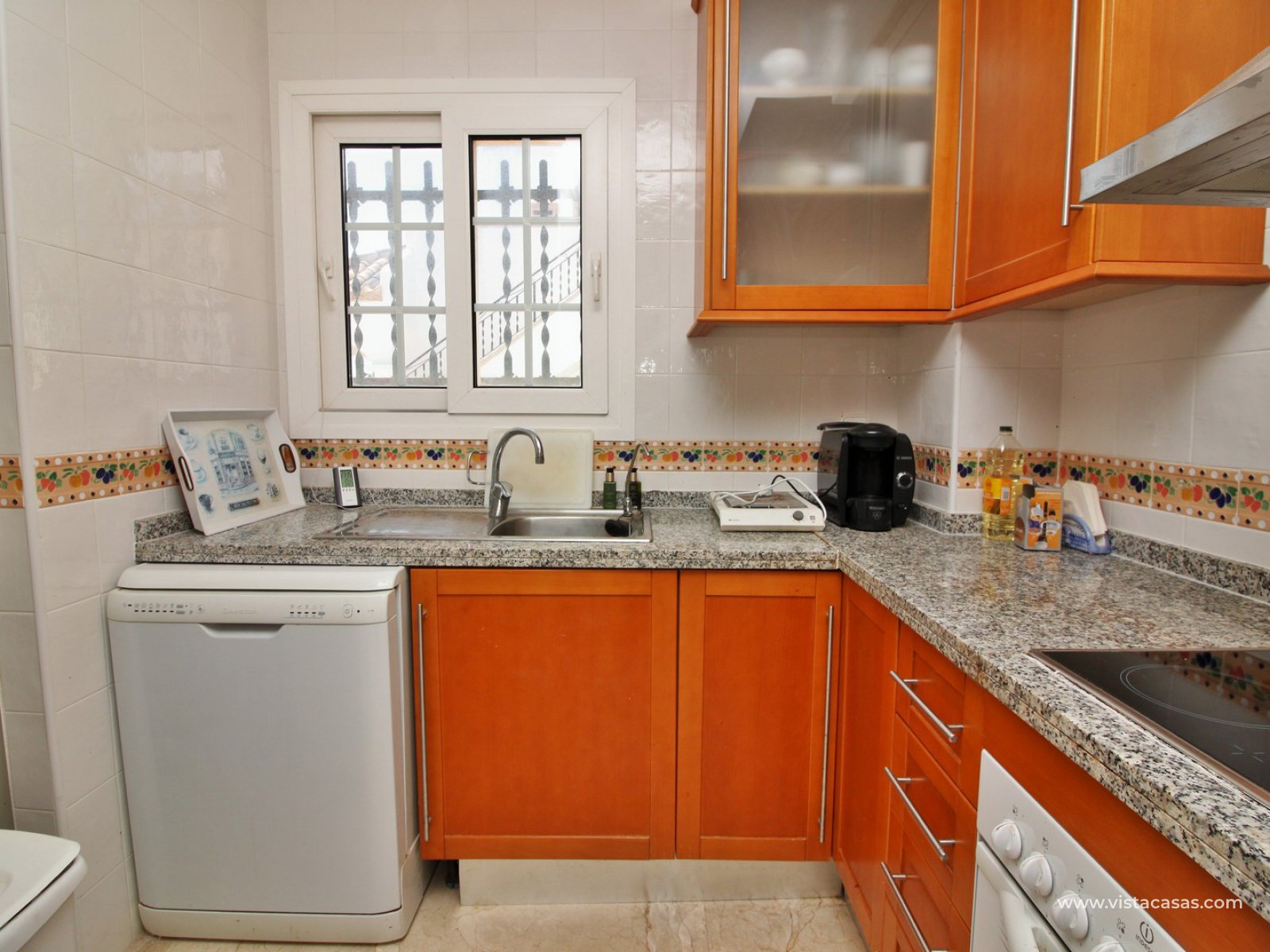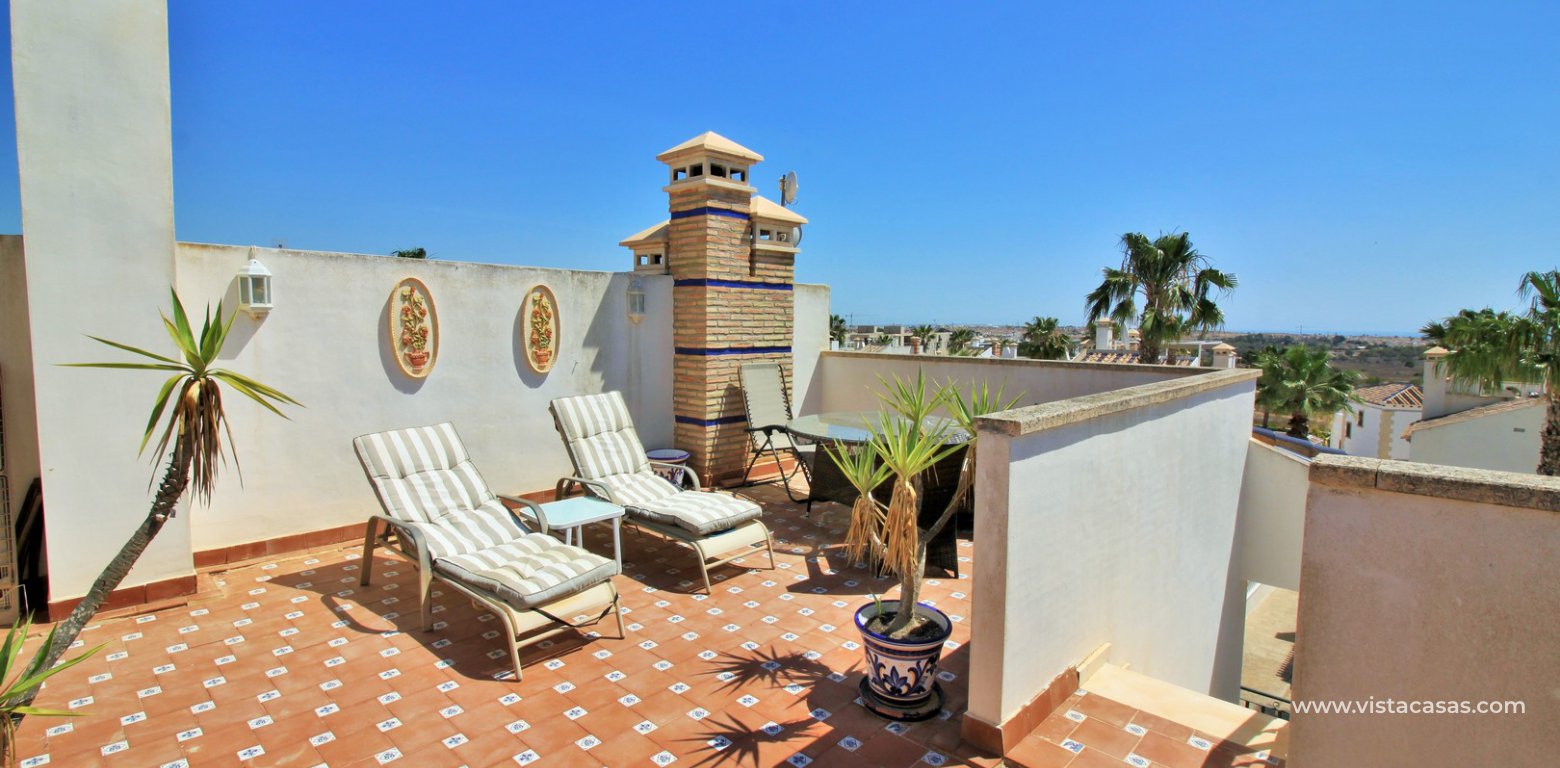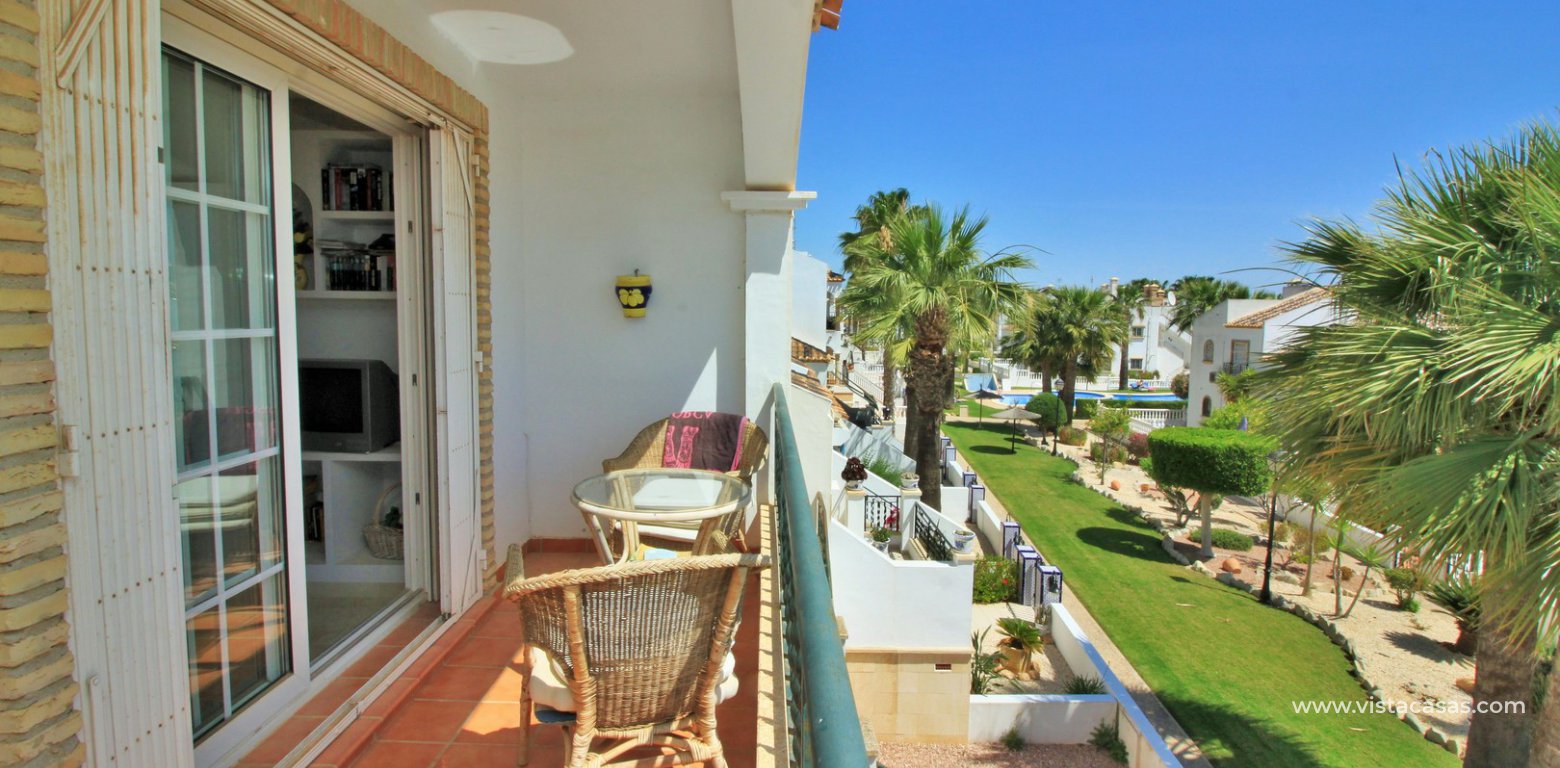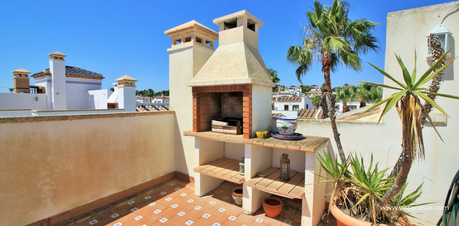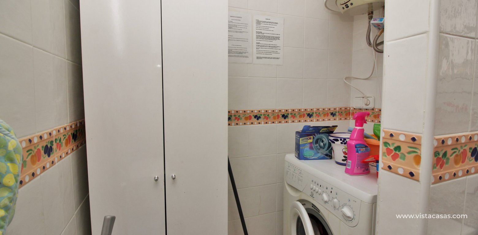 LOCATION, LOCATION! 2 bedroom, 2 bathroom top floor apartment in the highly sought-after area of R3, Las Violetas in Villamartin. The apartment is sold fully equipped with furniture and offers amazing sea views, and great outdoor space including a private garden, covered balcony, and large roof solarium with brick built BBQ and storage cupboard.