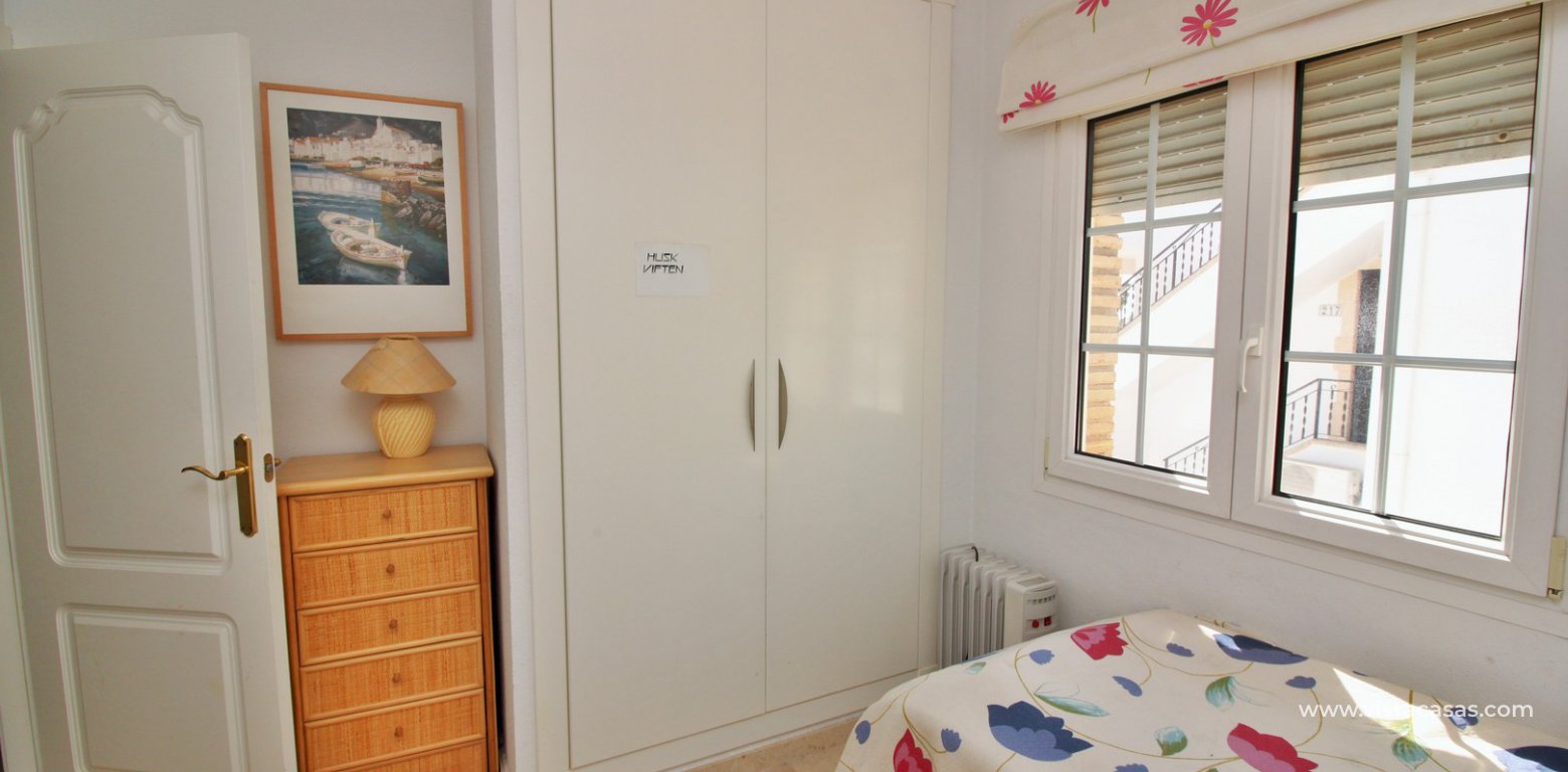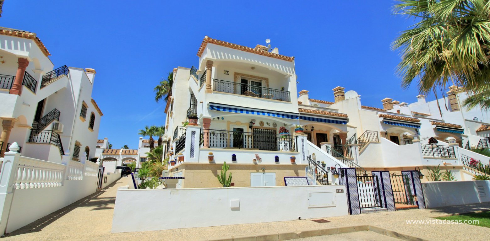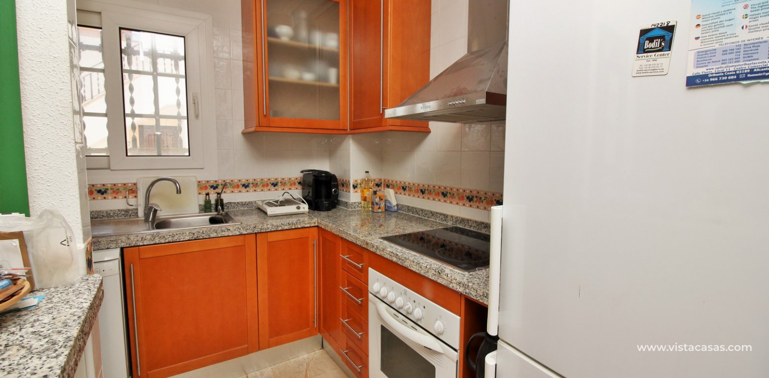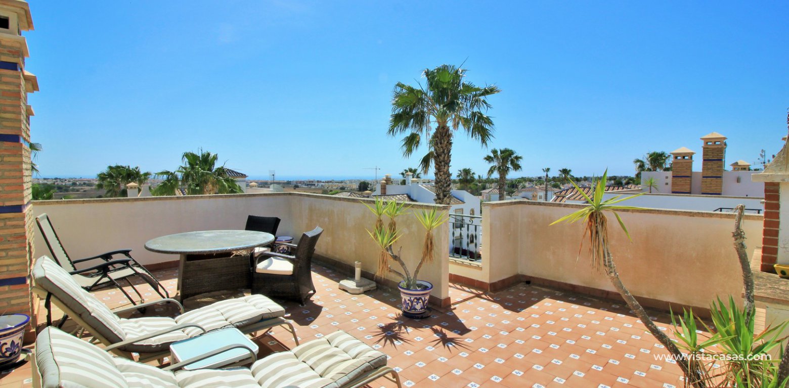 LOCATION, LOCATION! 2 bedroom, 2 bathroom top floor apartment in the highly sought-after area of R3, Las Violetas in Villamartin. The apartment is sold fully equipped with furniture and offers amazing sea views, and great outdoor space including a private garden, covered balcony, and large roof solarium with brick built BBQ and storage cupboard.