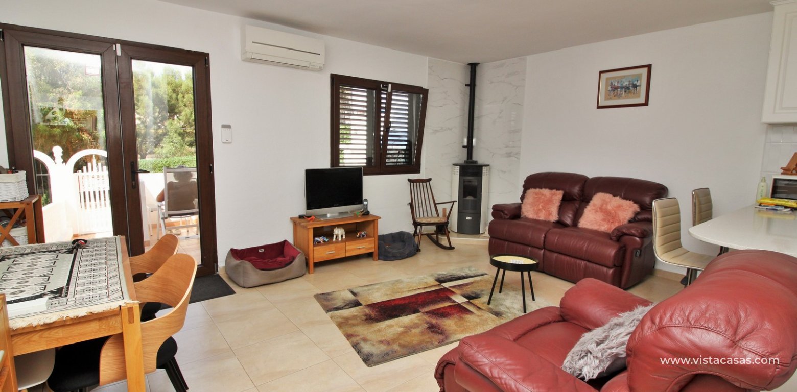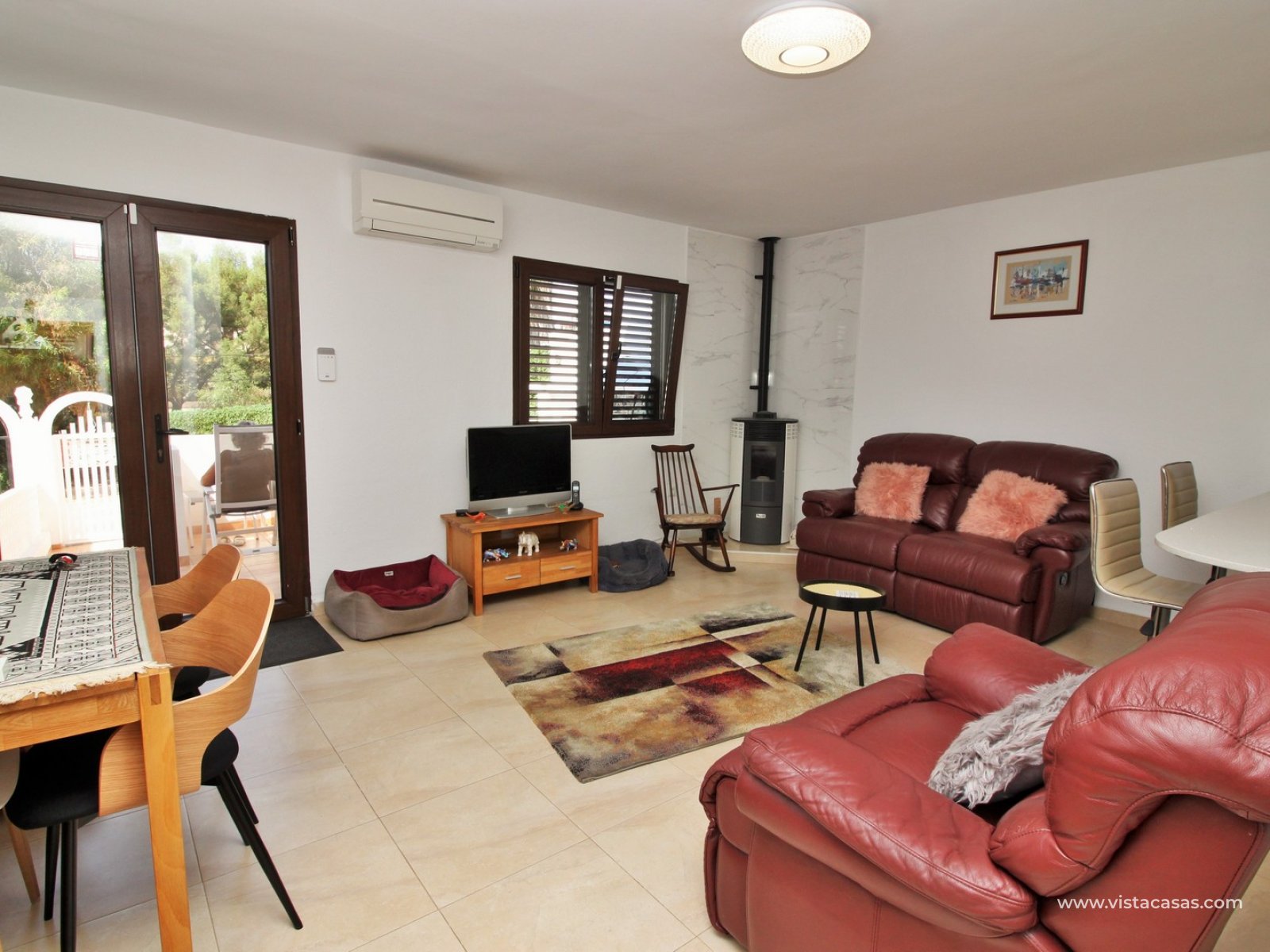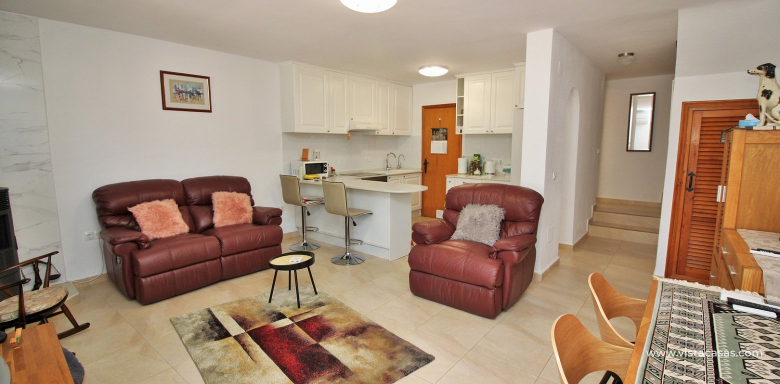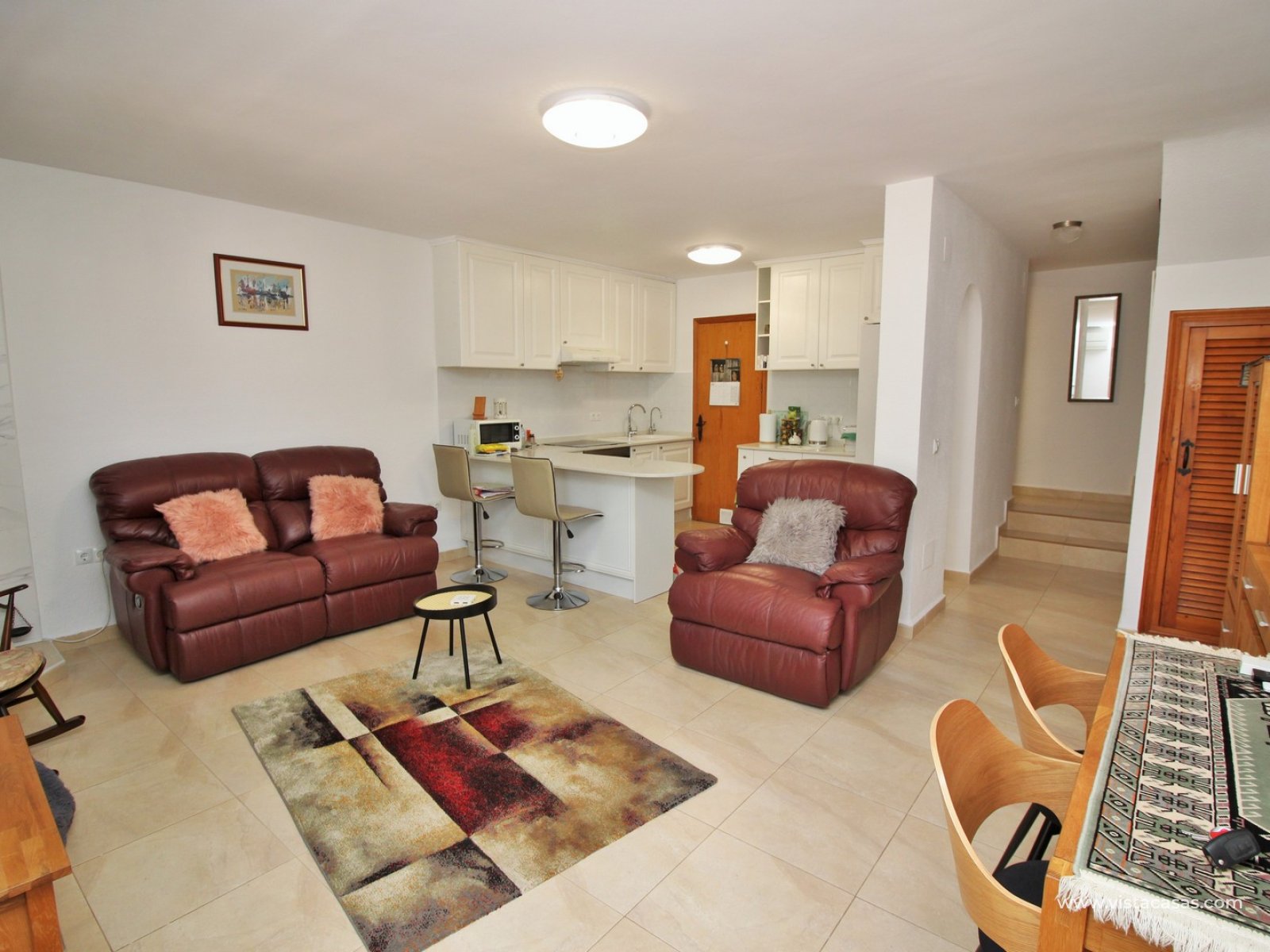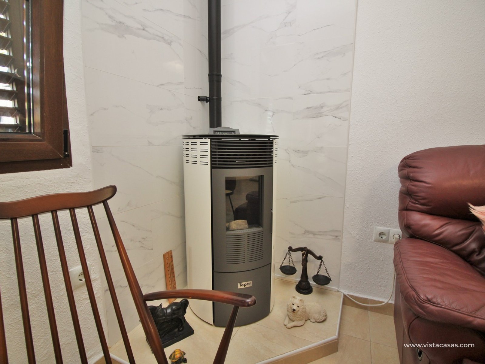 The property offers a sunny front garden with storage room plus a raised terrace which leads into the bright and airy lounge area with open kitchen, plus a separate utility room. There is also a newly installed pellet burner, perfect for the winter months. To the rear of the first floor is a hallway with access to the downstairs bathroom with walk-in shower. Upstairs there are 3 bedrooms and a renovated bathroom with walk-in shower. The master bedroom offers a private covered balcony area. The third bedroom is currently being used as a dressing room. Sal y Mar II is a small community which offers homeowners off-road communal parking. There is no communal pool. Sold furnished with white goods.