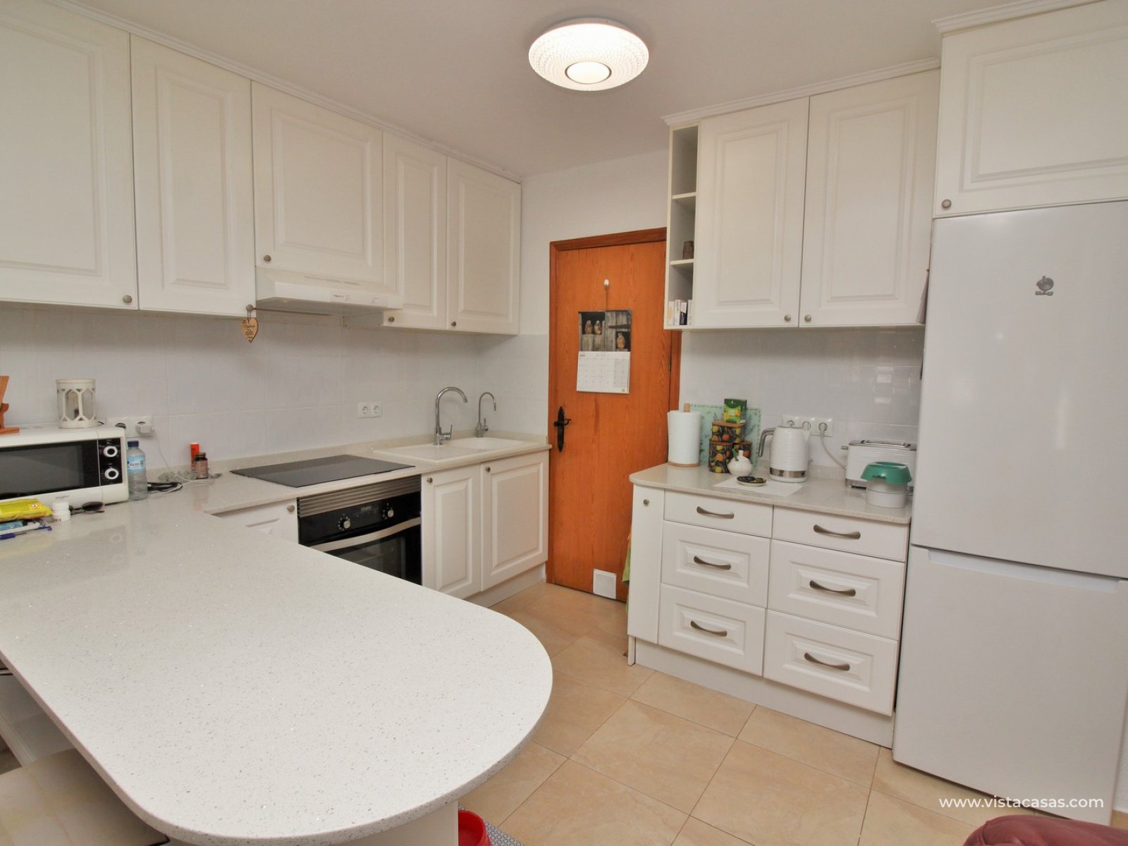 Beachside South facing 3 bedroom townhouse for sale in the residential complex of Sal y Mar II just 250 metres from the beaches of Playa Flamenca (Cala Mosca & Cala Estaca). This wonderfully positioned property has received many improvements, including a new kitchen, bathroom, windows, blinds and exterior doors. An idyllic location near the beautiful beaches, supermarket, bars and restaurants!