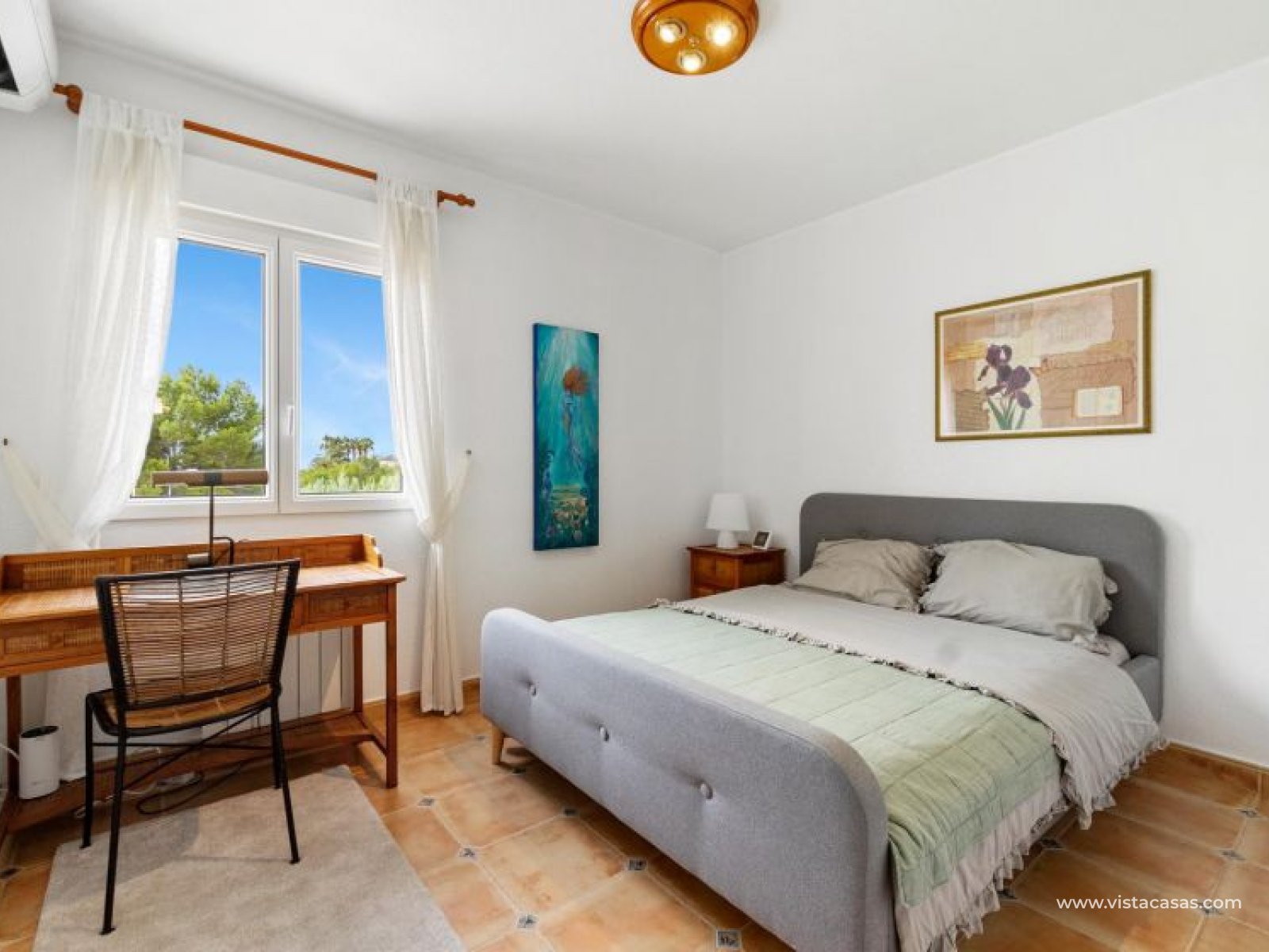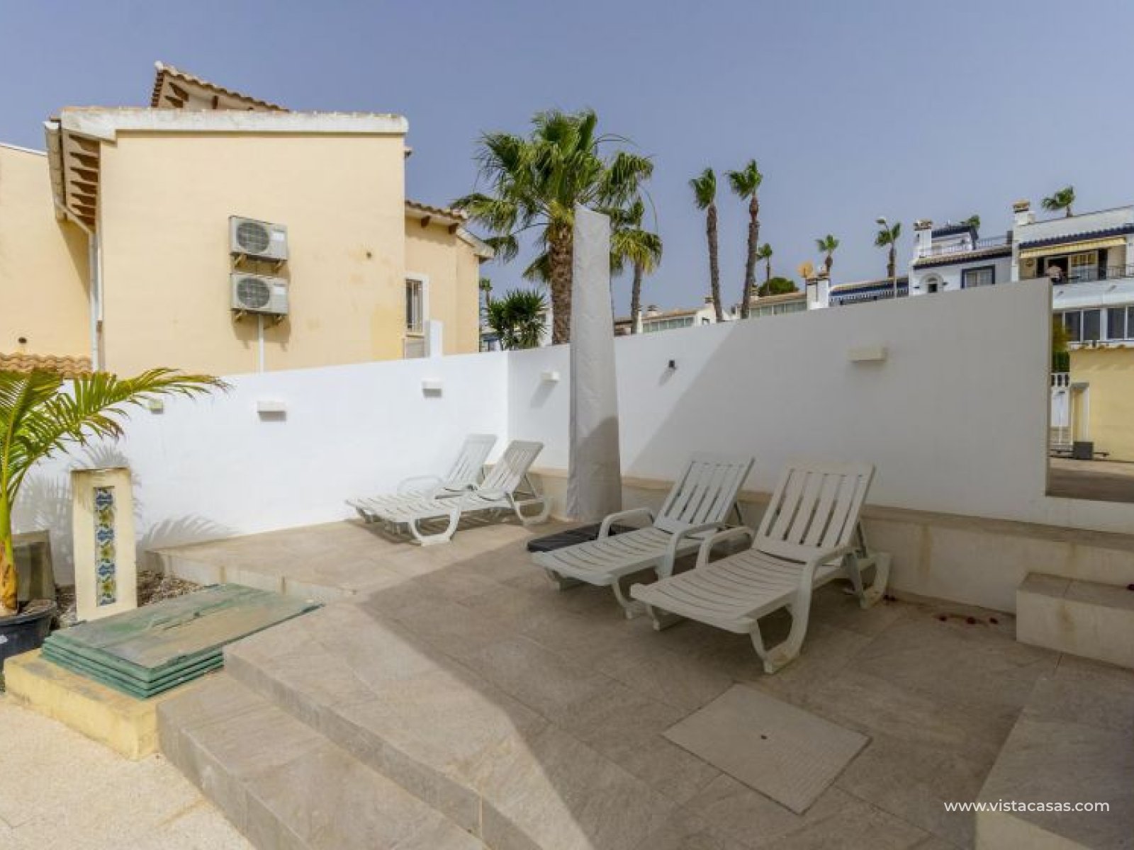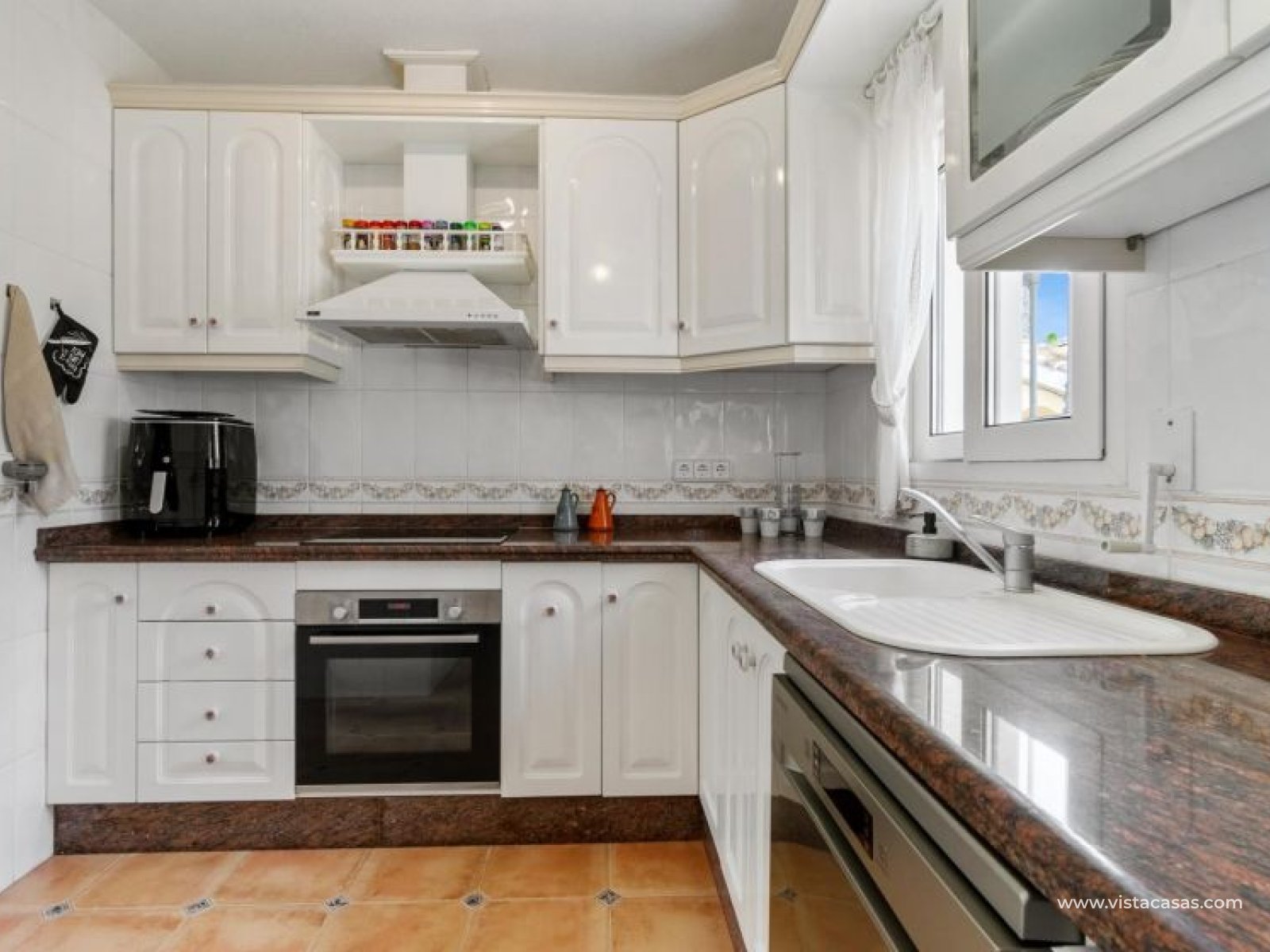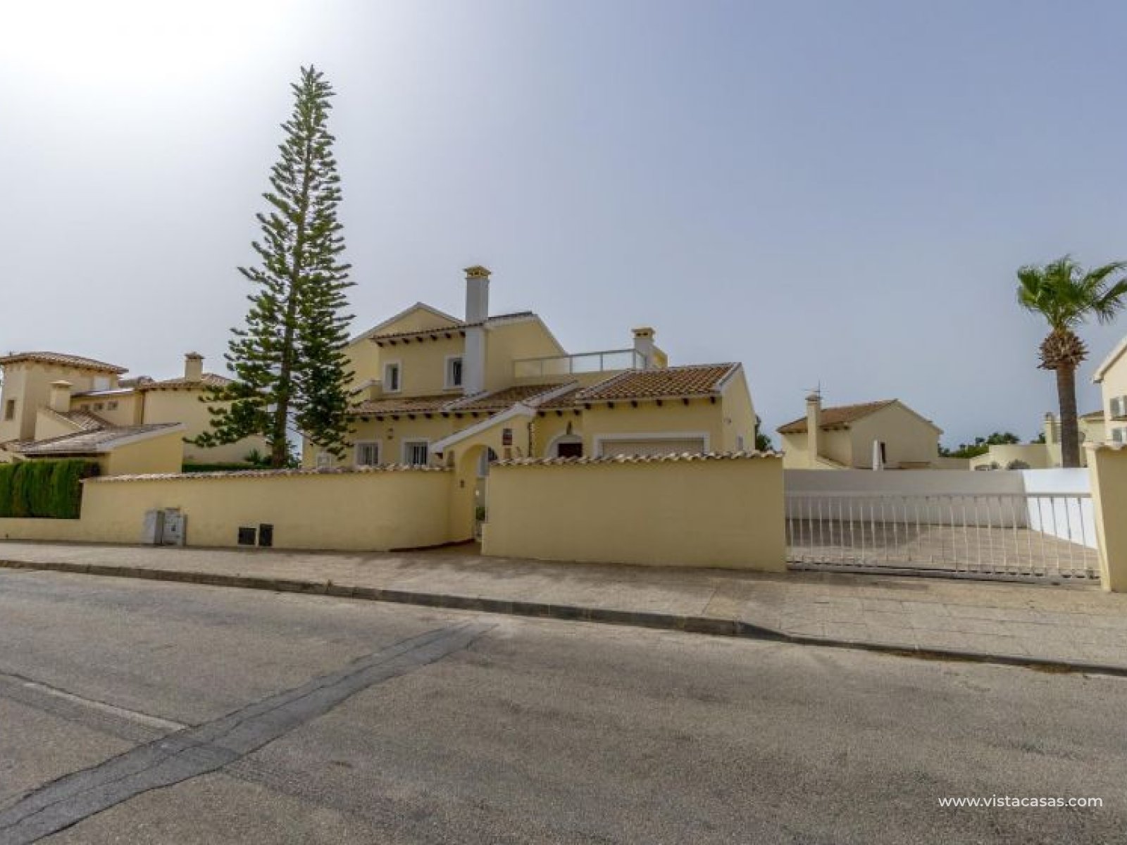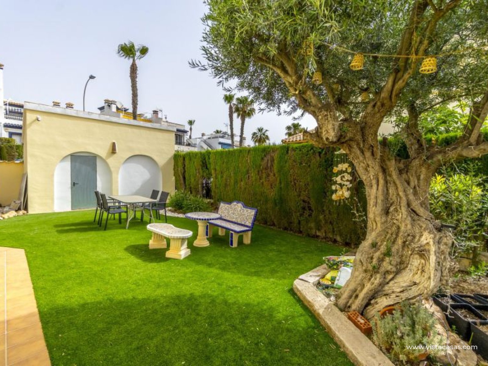 Beautiful mediterranean style detached villa for sale in Los Dolses-Orihuela Costa Discover this charming two storey Mediterranean style detached villa, a luxury retreat with modern facilities, located in the prestigious area of Los Dolses, Orihuela Costa. Designed to offer maximum comfort and elegance. On the ground floor we find a spacious and bright living-dining room with fireplace, creating a warm and cosy atmosphere, with direct exit to a covered terrace and the stunning private swimming pool, ideal to enjoy relaxing moments outdoors. At this floor we also find a large independent kitchen fully equipped with modern appliances, 2 comfortable bedrooms, each with en suite bathroom, plus 1 additional toilet and a small storage room for added functionality. The first floor consists of 2 additional bedrooms offering a versatile and cosy space for family or guests, 1 full bathroom and a terrace perfect for enjoying the Mediterranean sun or its unobstructed views. All rooms are air-conditioned, guaranteeing comfort at any time of the year. This property is in impeccable condition, ready to move into, sold furnished and fully equipped! The beautiful garden of this spectacular villa has a driveway and seating areas. The private pool and terrace are the ideal place to enjoy the sun all year round. There is also a storage room in the garden, perfect for you beach chairs, golf bags or bicycles etc. The property offers multiple orientations, filling the spaces with abundant natural light. Its location is privileged, close to a wide range of shops, restaurants and services and within walking distance of the famous La Zenia Boulevard shopping centre, known for its wide variety of fashionable shops, restaurants and leisure areas. For golf lovers, there are three 18-hole golf courses within 2 km. The AP-7 motorway is only 1 km away, offering excellent connections to the region. This spectacular villa combines the charm of Mediterranean style with the comfort of modern facilities, offering a luxurious and relaxed lifestyle in an unbeatable location. Contact us today to arrange a viewing/videoviewing and discover your new home or holiday home in Orihuela Costa!