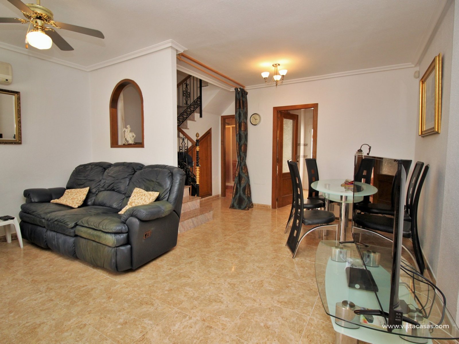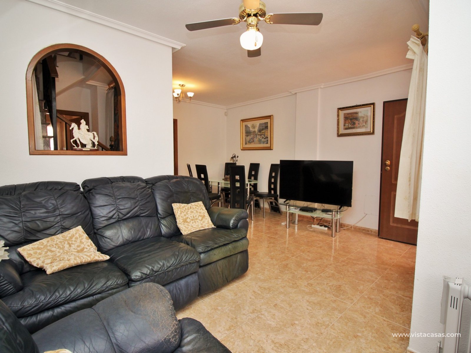 South facing 3 bedroom, 2 bathroom townhouse for sale in Entregolf, Pau 26, Villamartin. The property is in great condition with only 1 owner since construction, and comes furnished and equipped with white goods. Part of a community with the use of a lovely communal pool and garden areas just nearby.